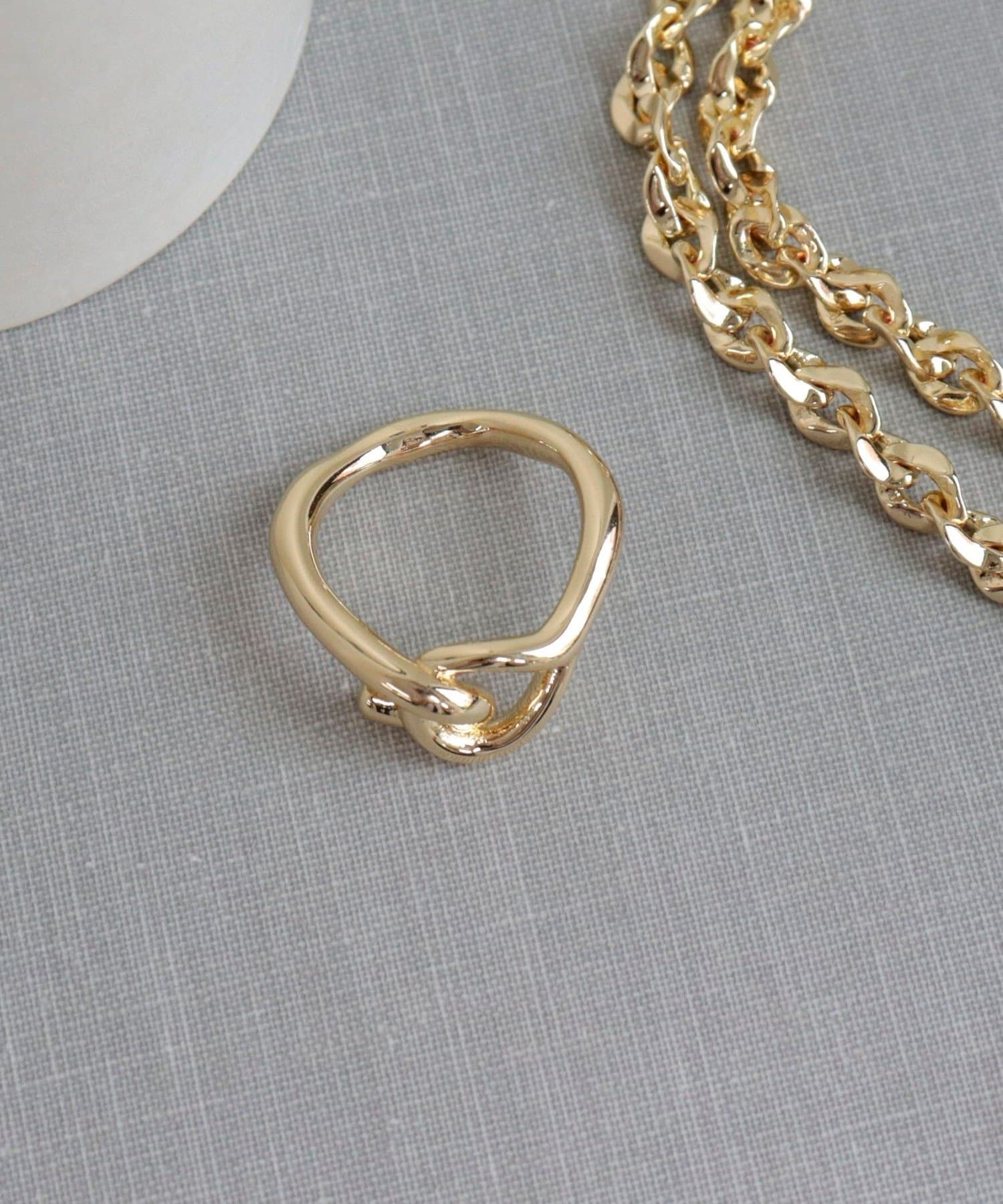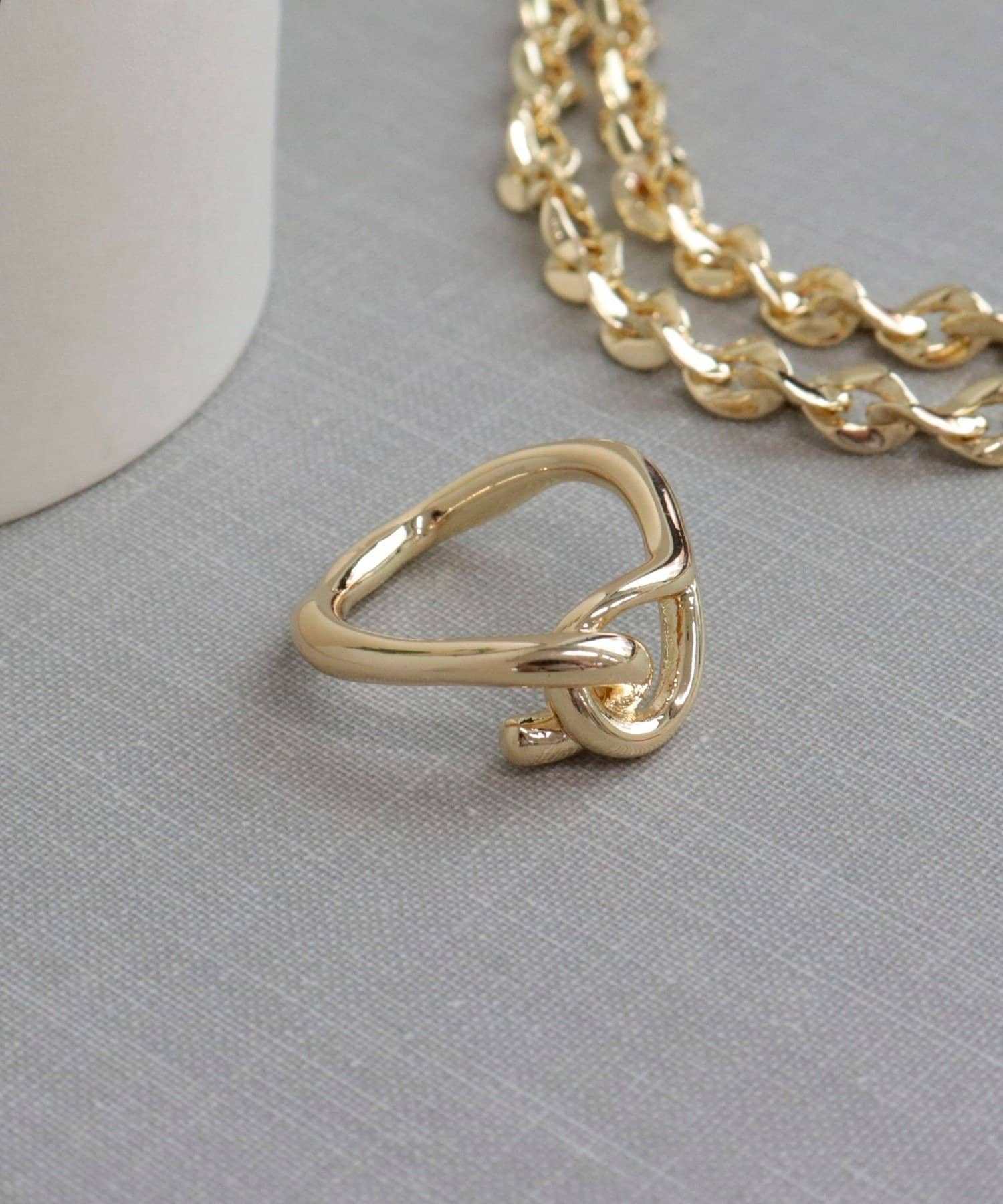 ・ニュアンス感のあるフックモチーフが目を引く、シンプルながら存在感のあるメタルリング