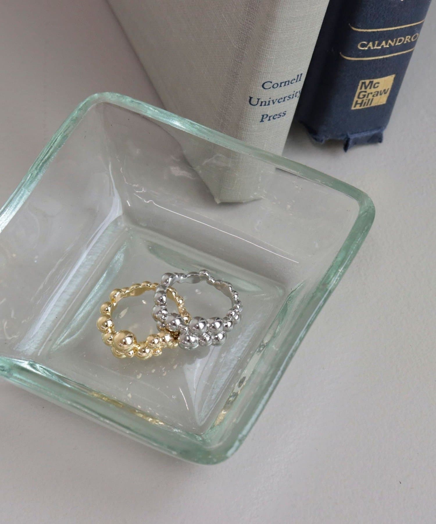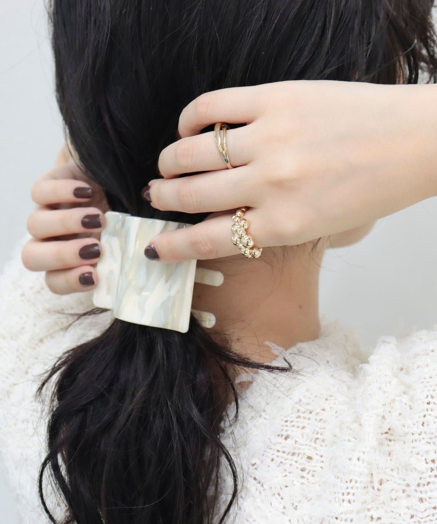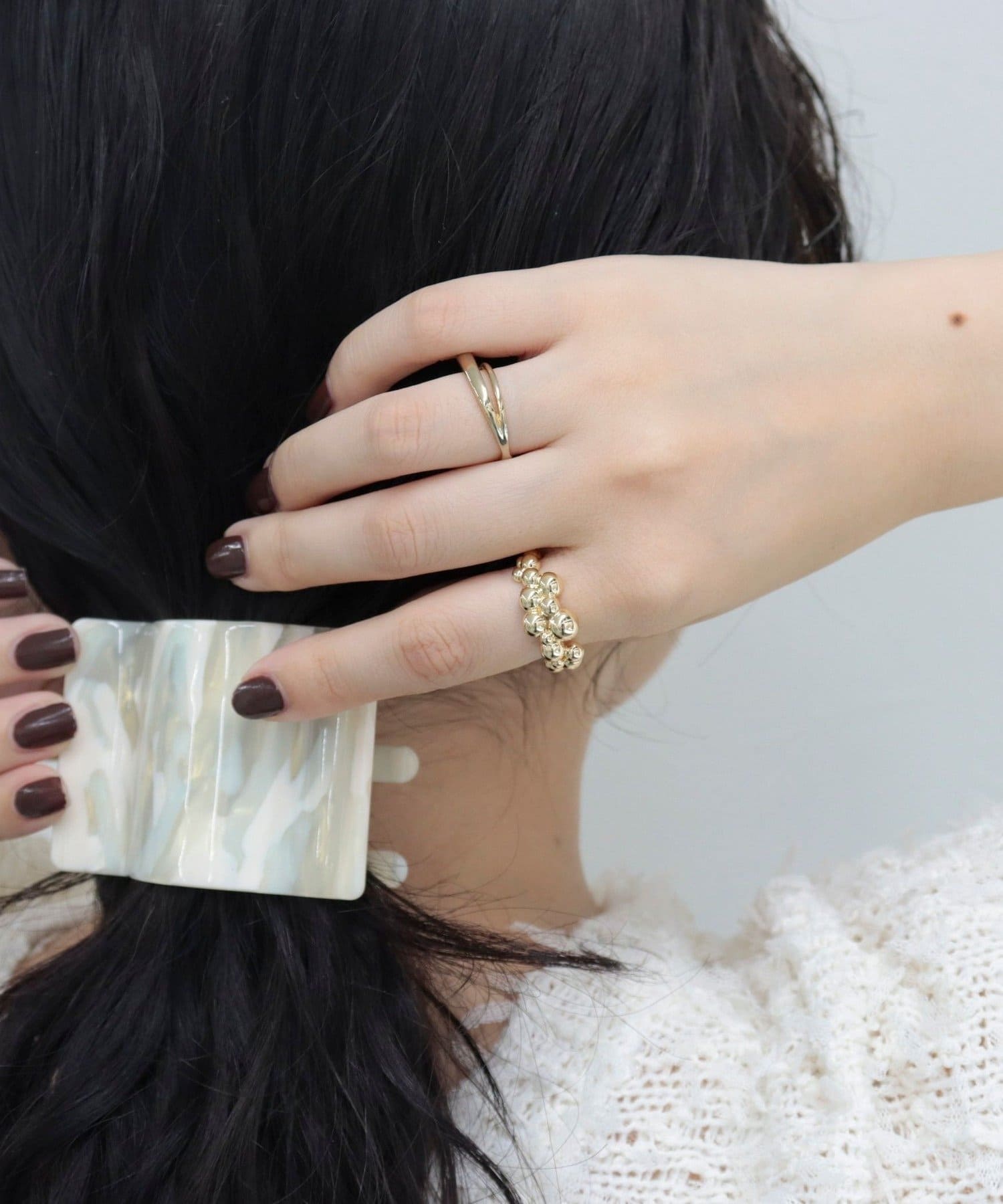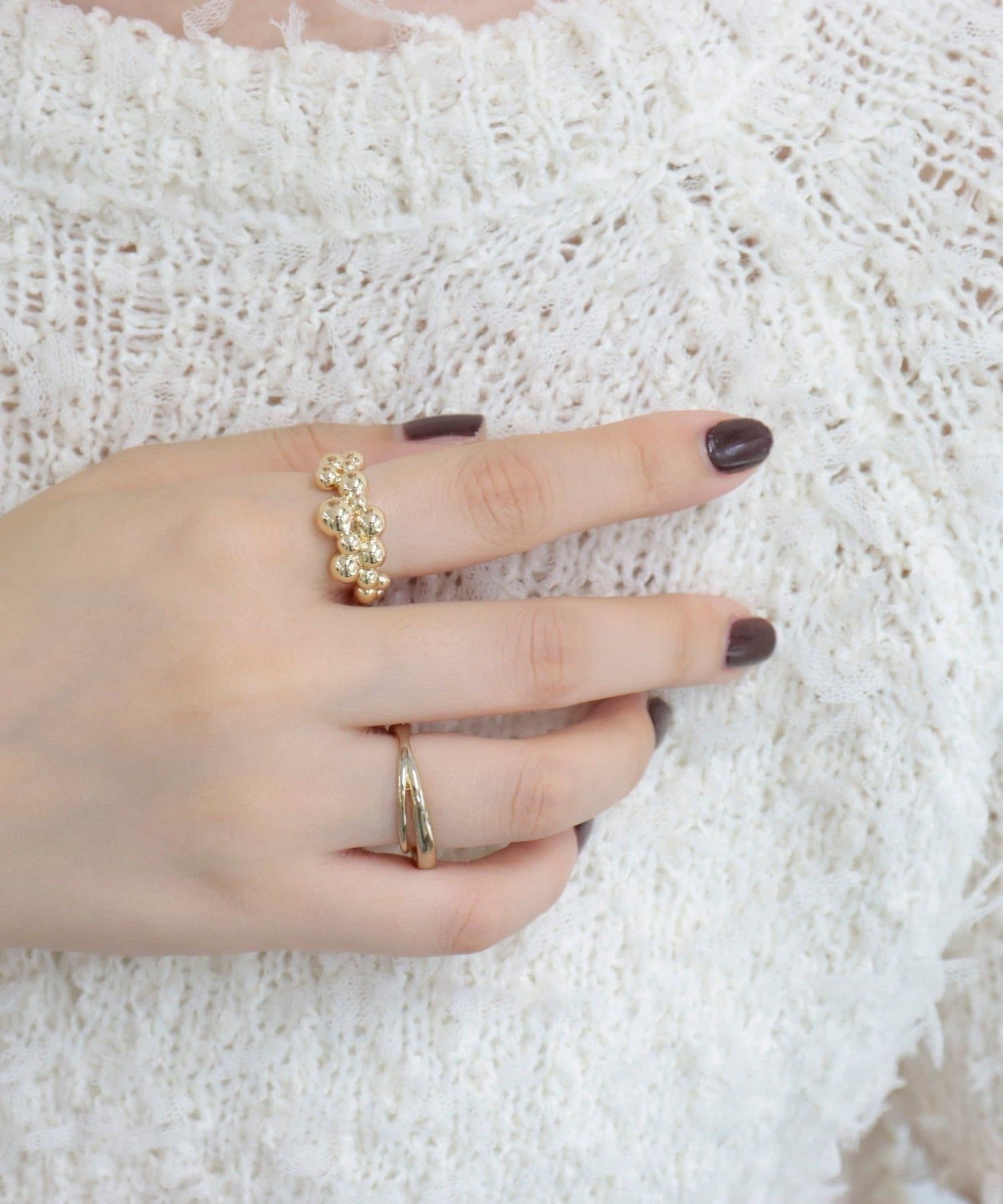 手元にさりげない華やかさを添えるバブルモチーフリング