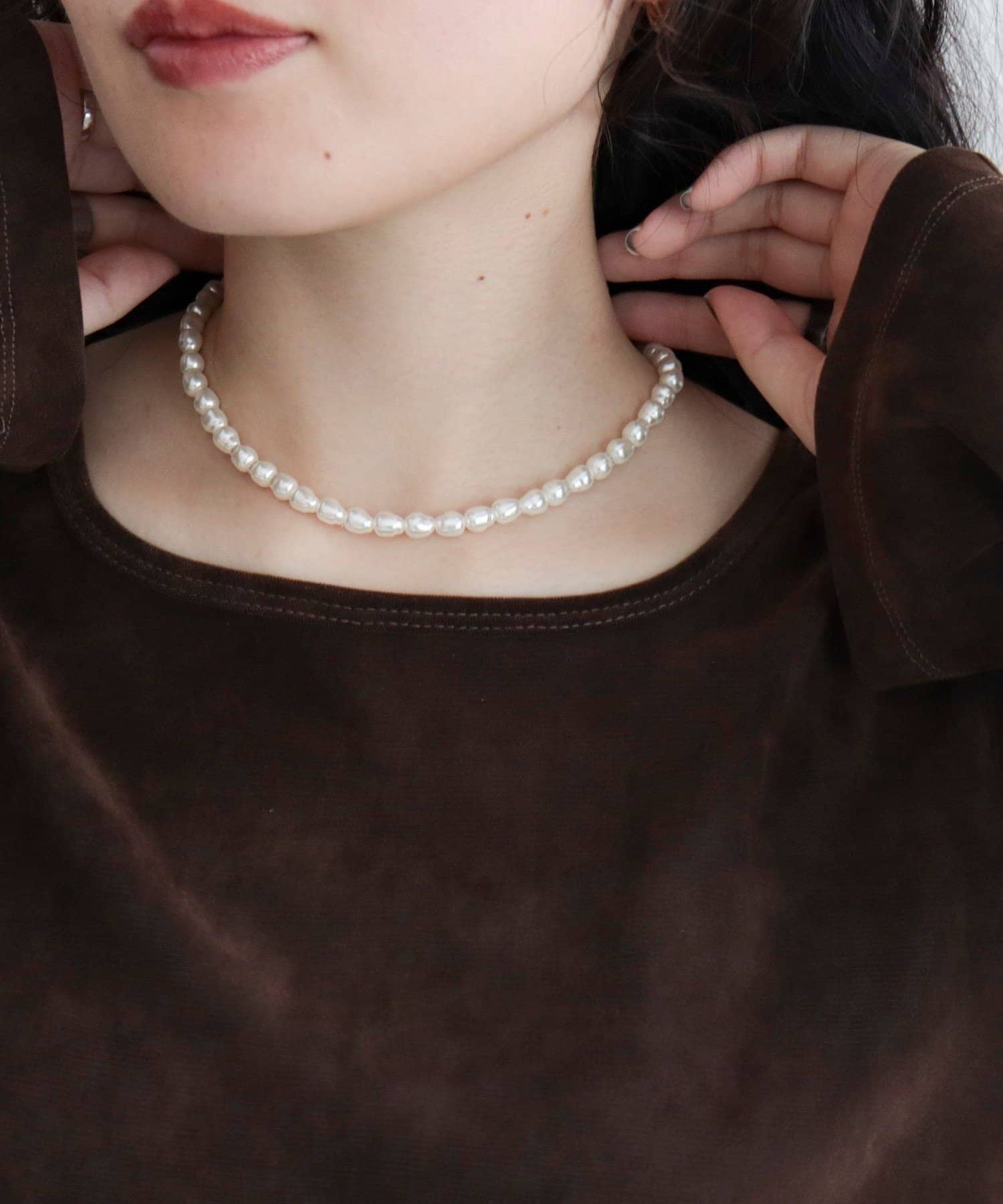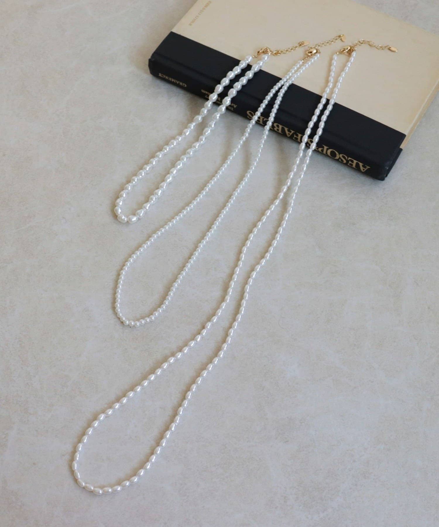 ・サイズや長さの異なるパールを組み合わせた、上品な3本セットネックレス