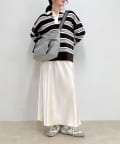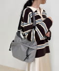 ・フロントにドロストポケットをあしらったカジュアルなサテンショルダーバッグ