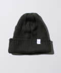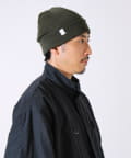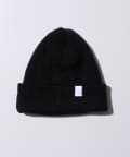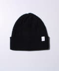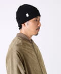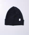 ユニセックスなスタイルにスパイスを加える、程よい存在感のニット帽として活躍。
