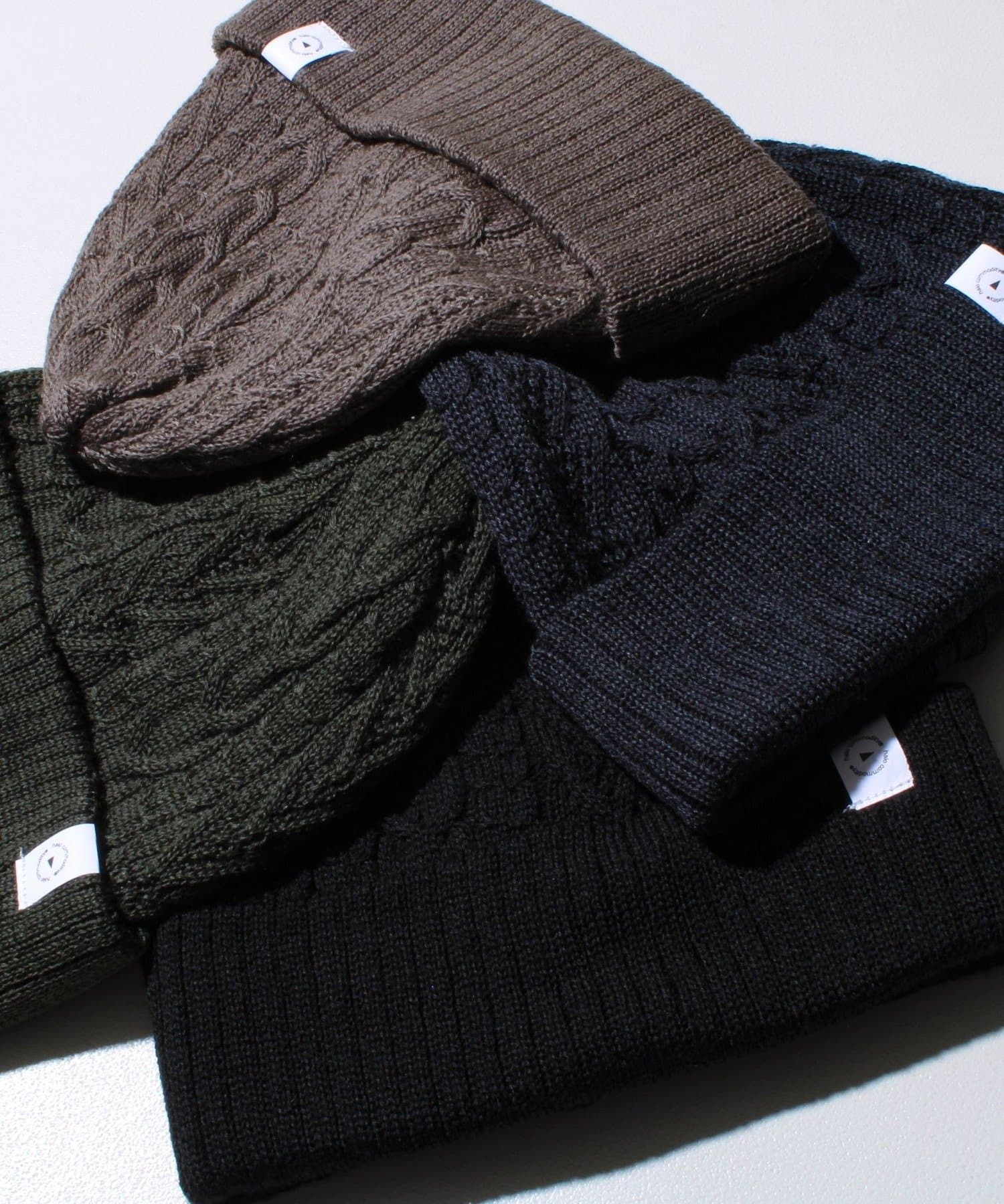 ・人気帽子ブランド「halo commodity」の定番ケーブルニットワッチをベースに、GLOSTERだけの素材・カラーで別注