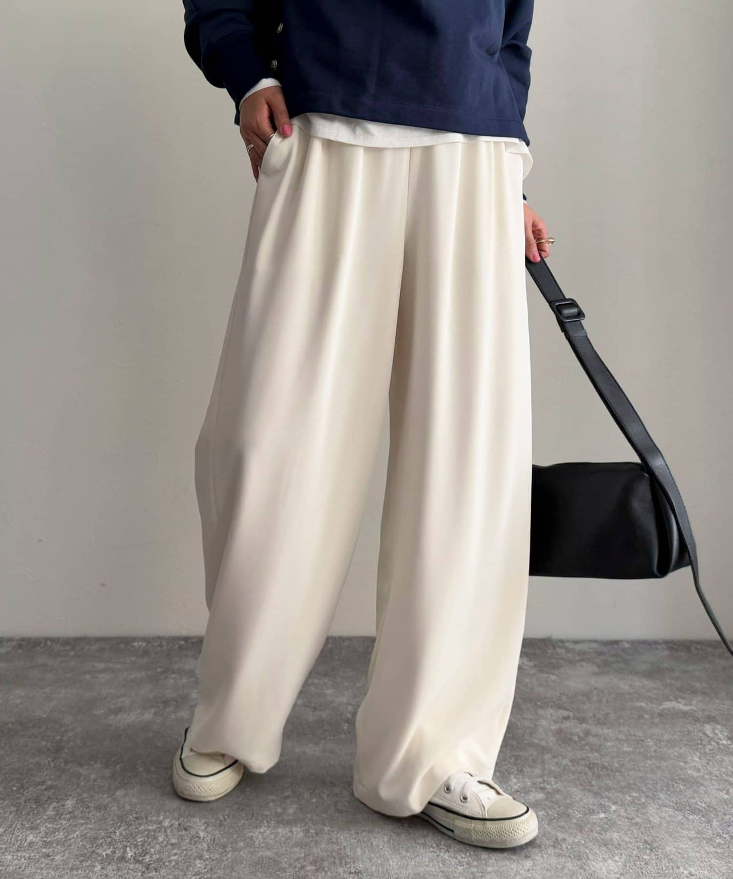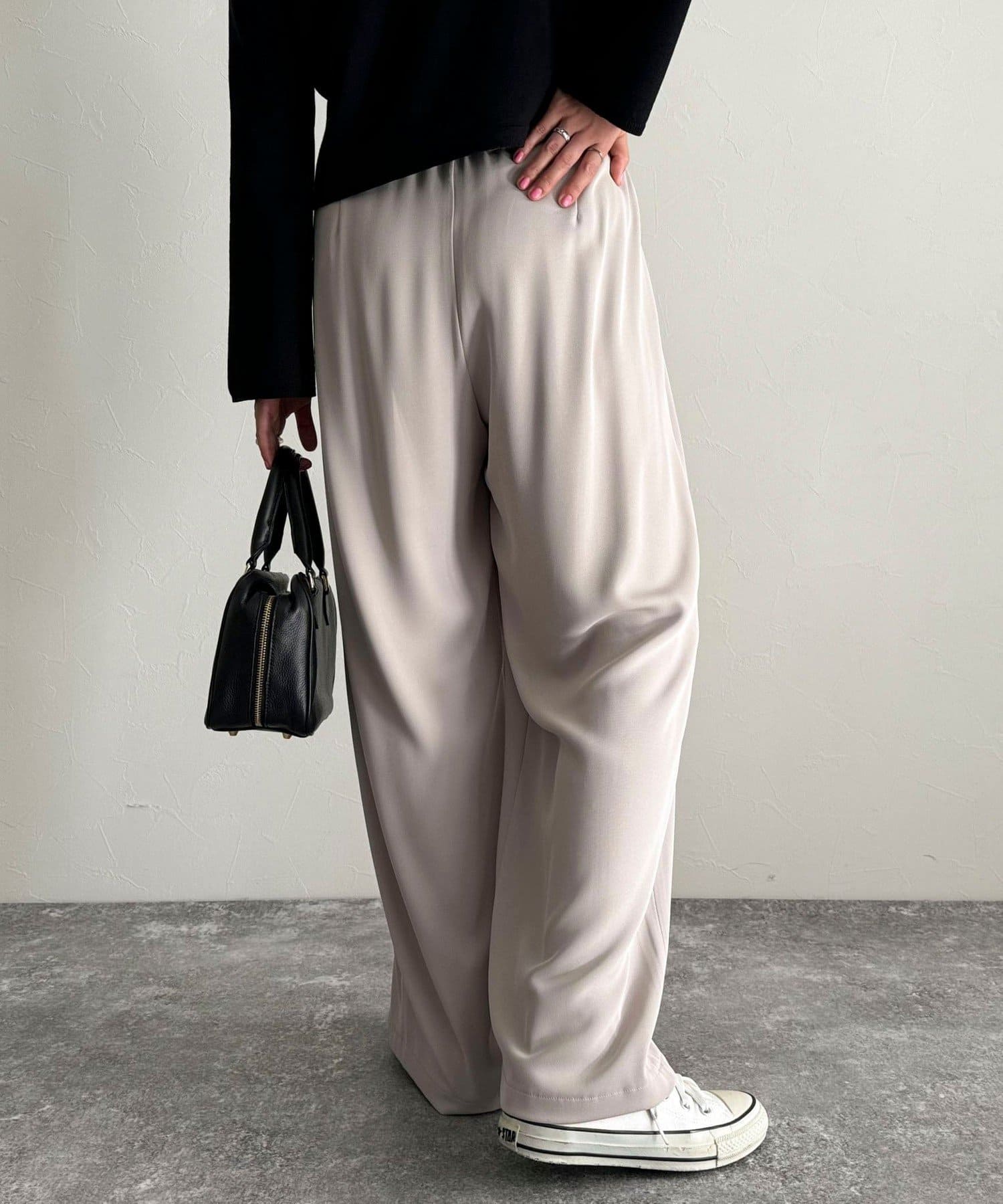 ・イージーパンツながらもきちんと見えする綺麗な素材感でカジュアルからオケージョンまで幅広いシーンに着ていただけます