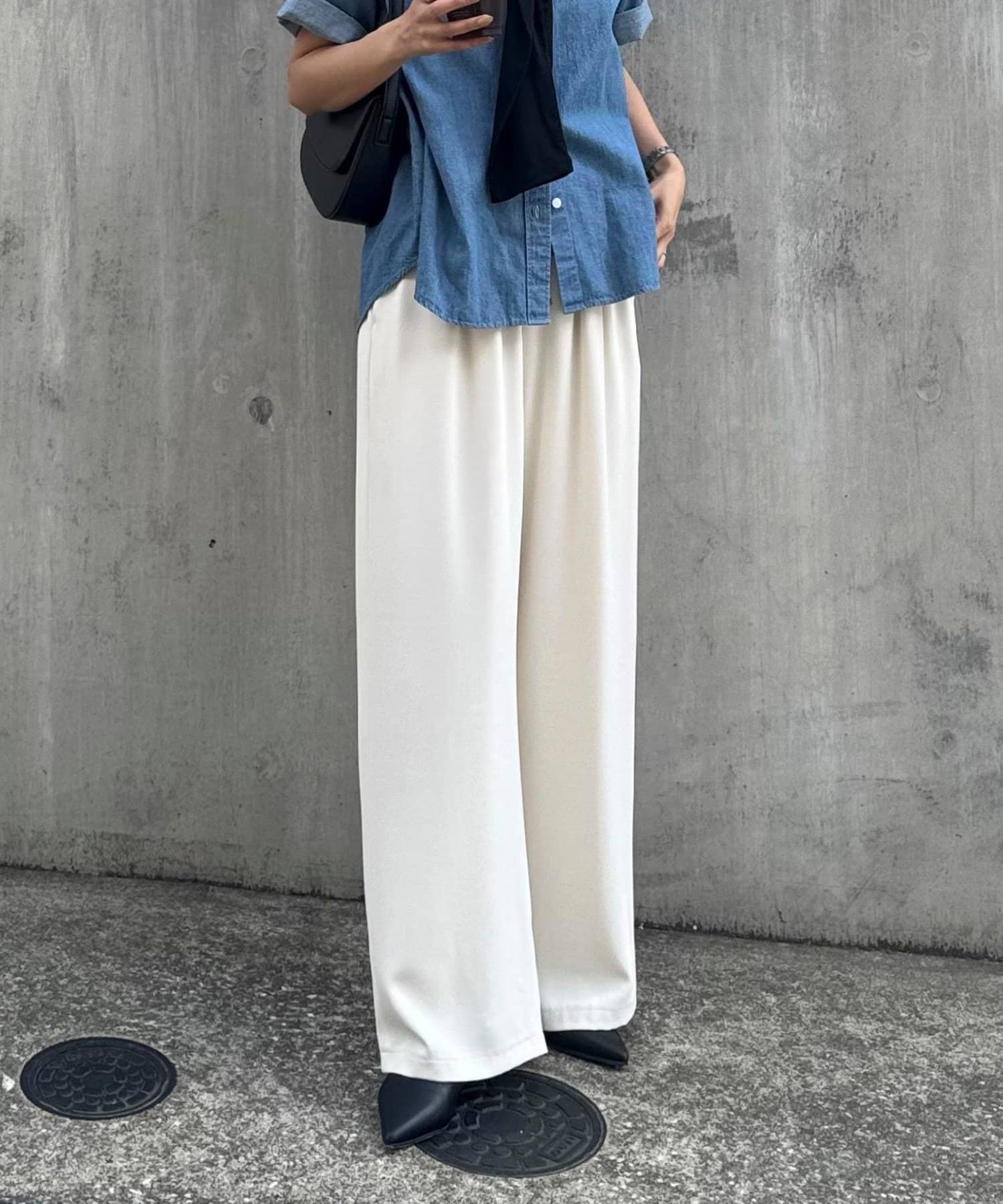 ・とろっとした素材が履き心地よいとろみツイルストレートイージーパンツです