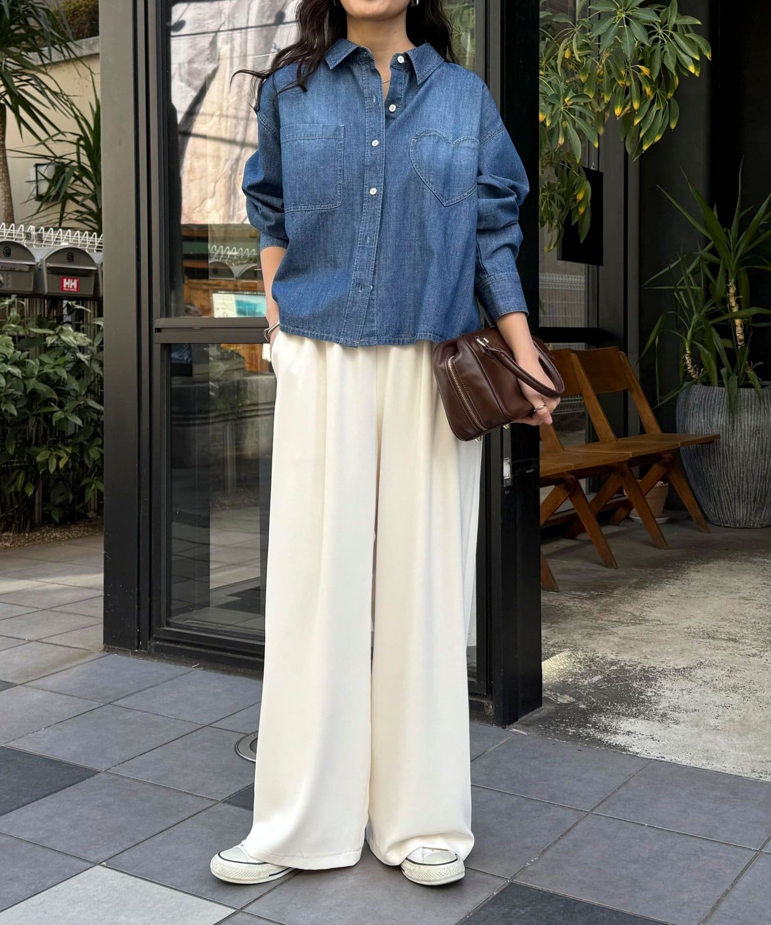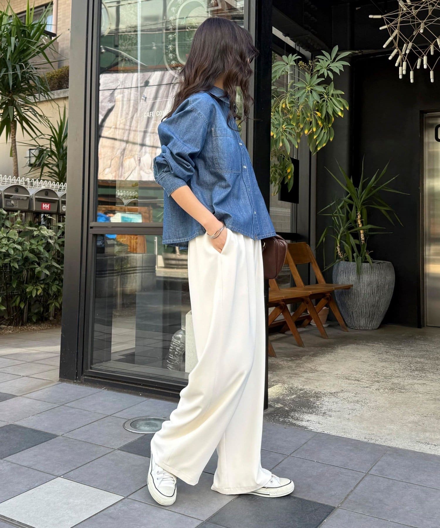・ワイドな落ち感のあるシルエットで履くだけでお洒落見えします