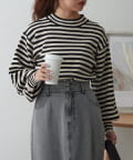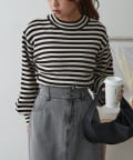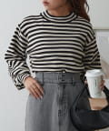 ・ラメ入りでキラキラとした素材でシンプルながら華やかさがあるニット(ボーダーはラメ入りではございません)