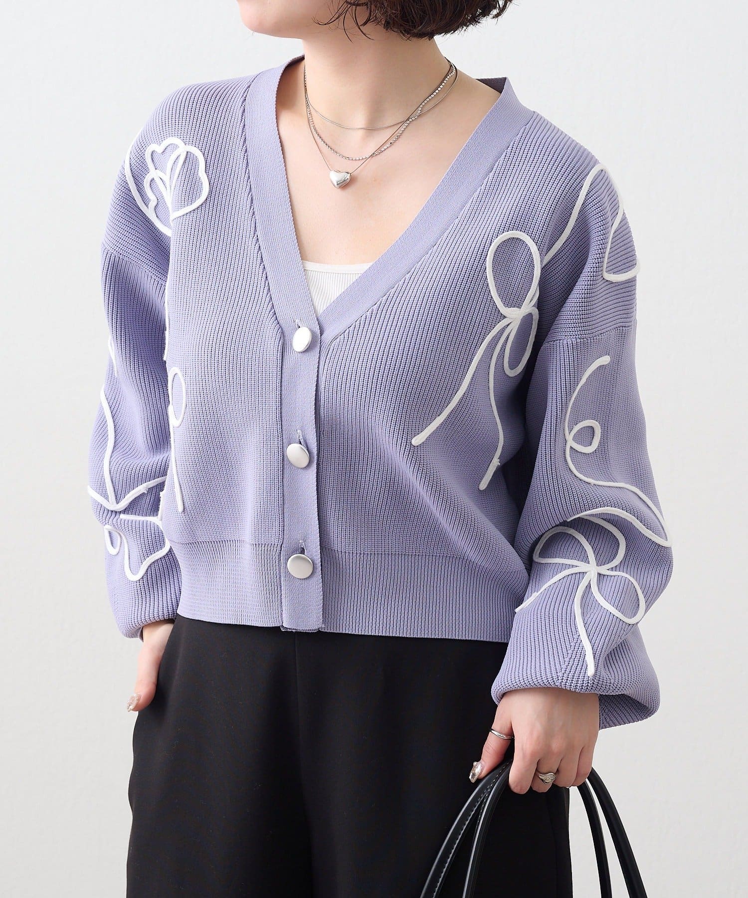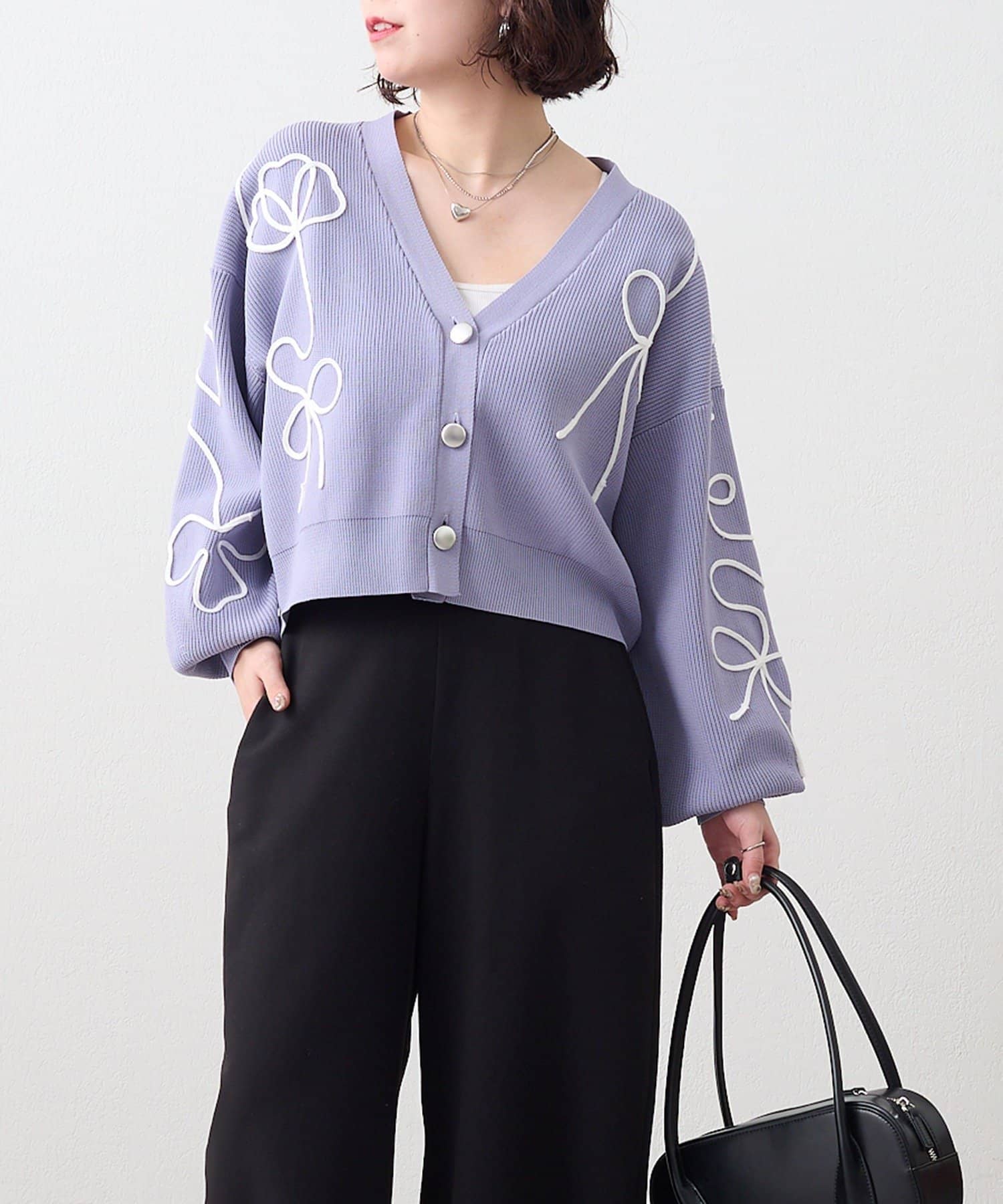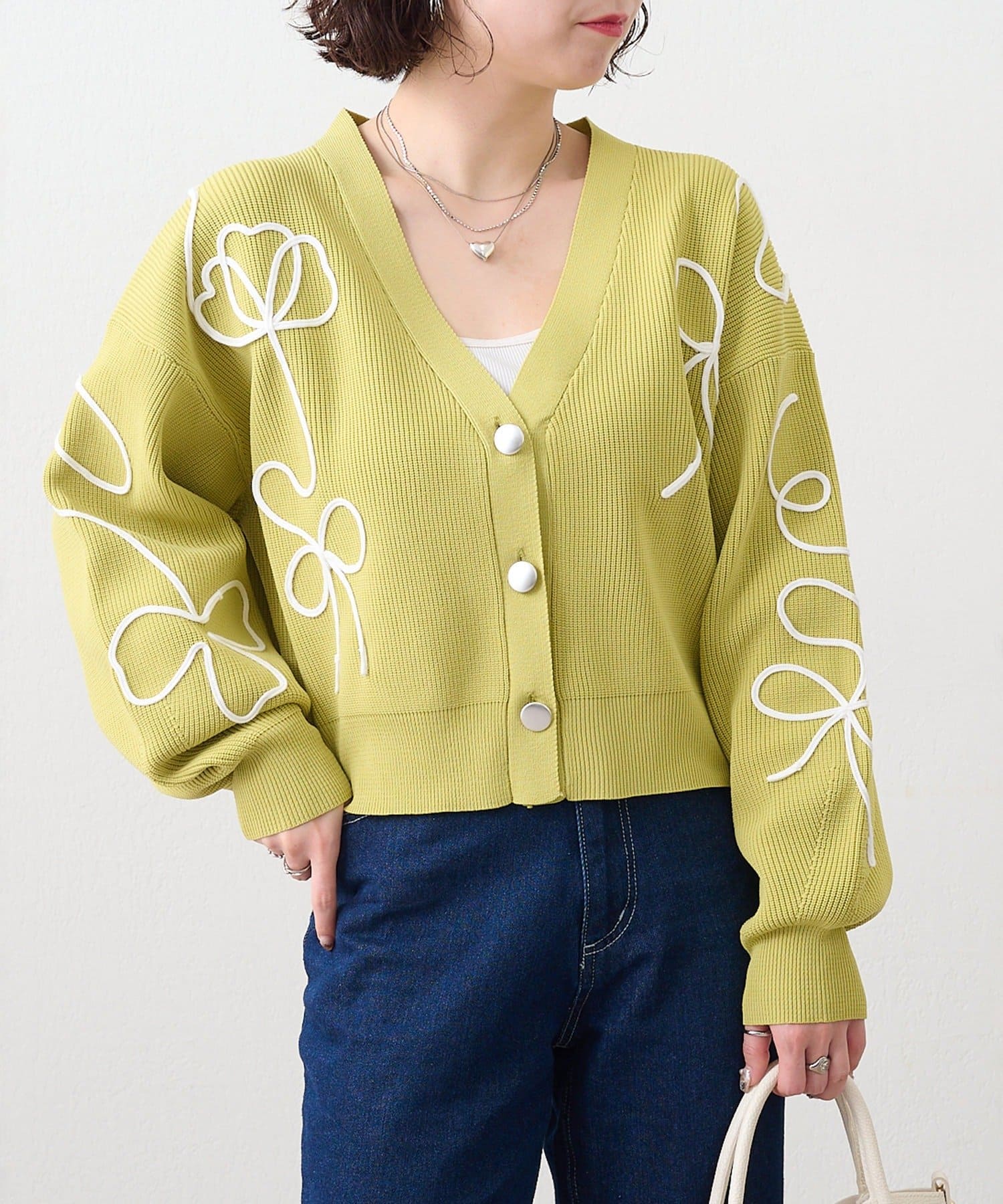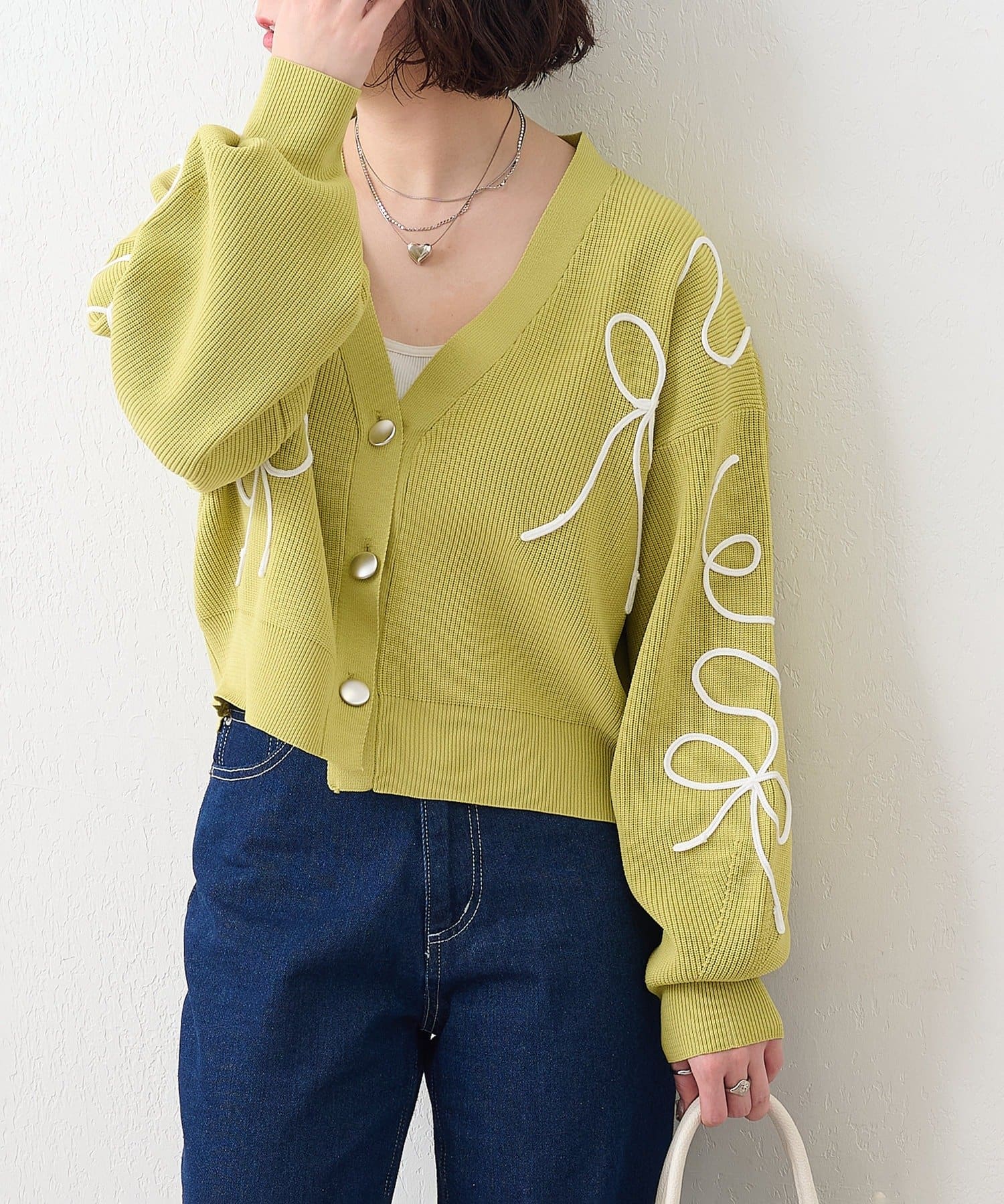 ・ウエストジャストな丈感でどんなボトムスにも合わせやすいカーディガン。