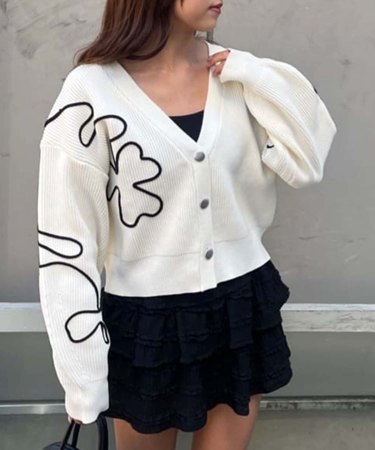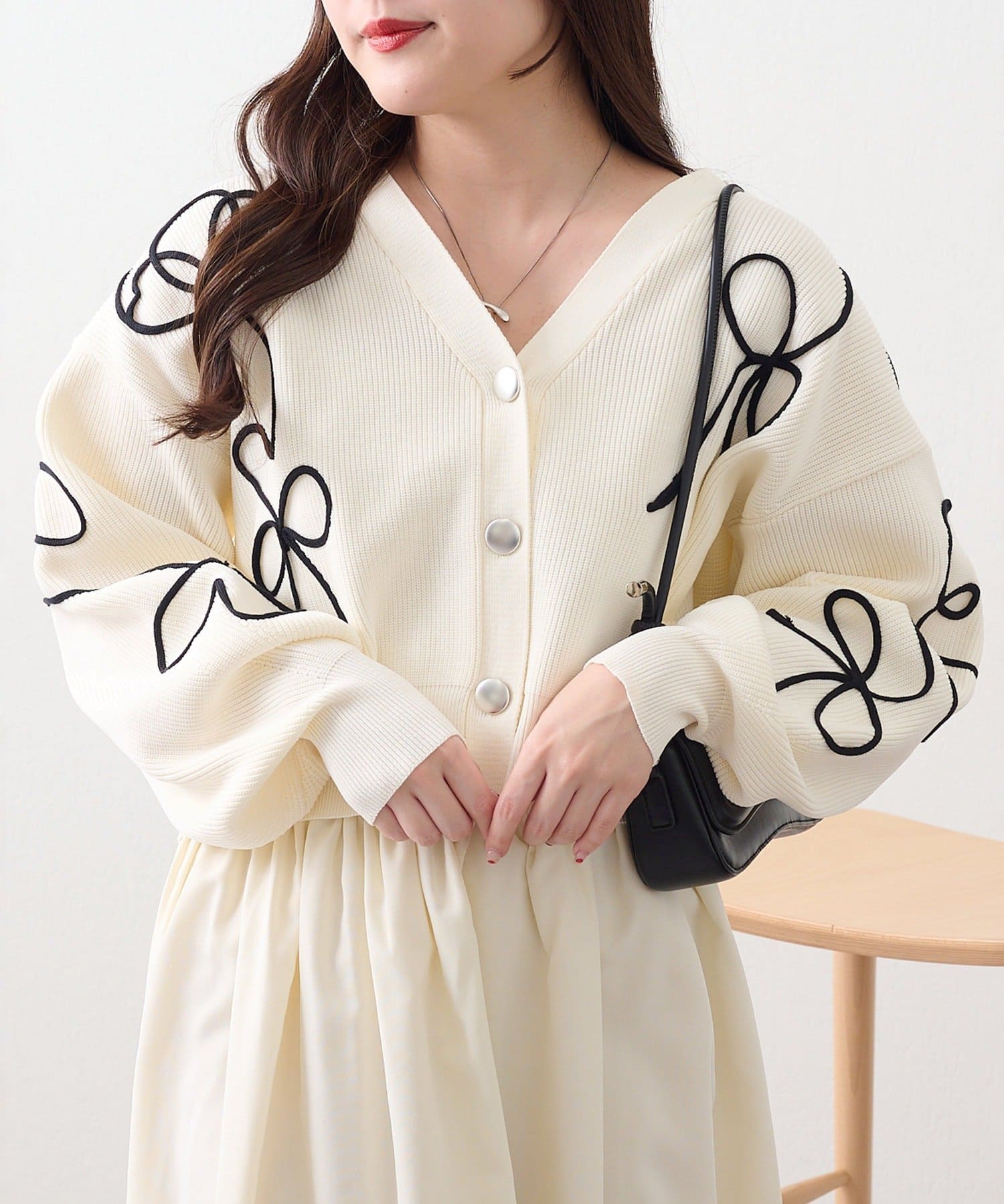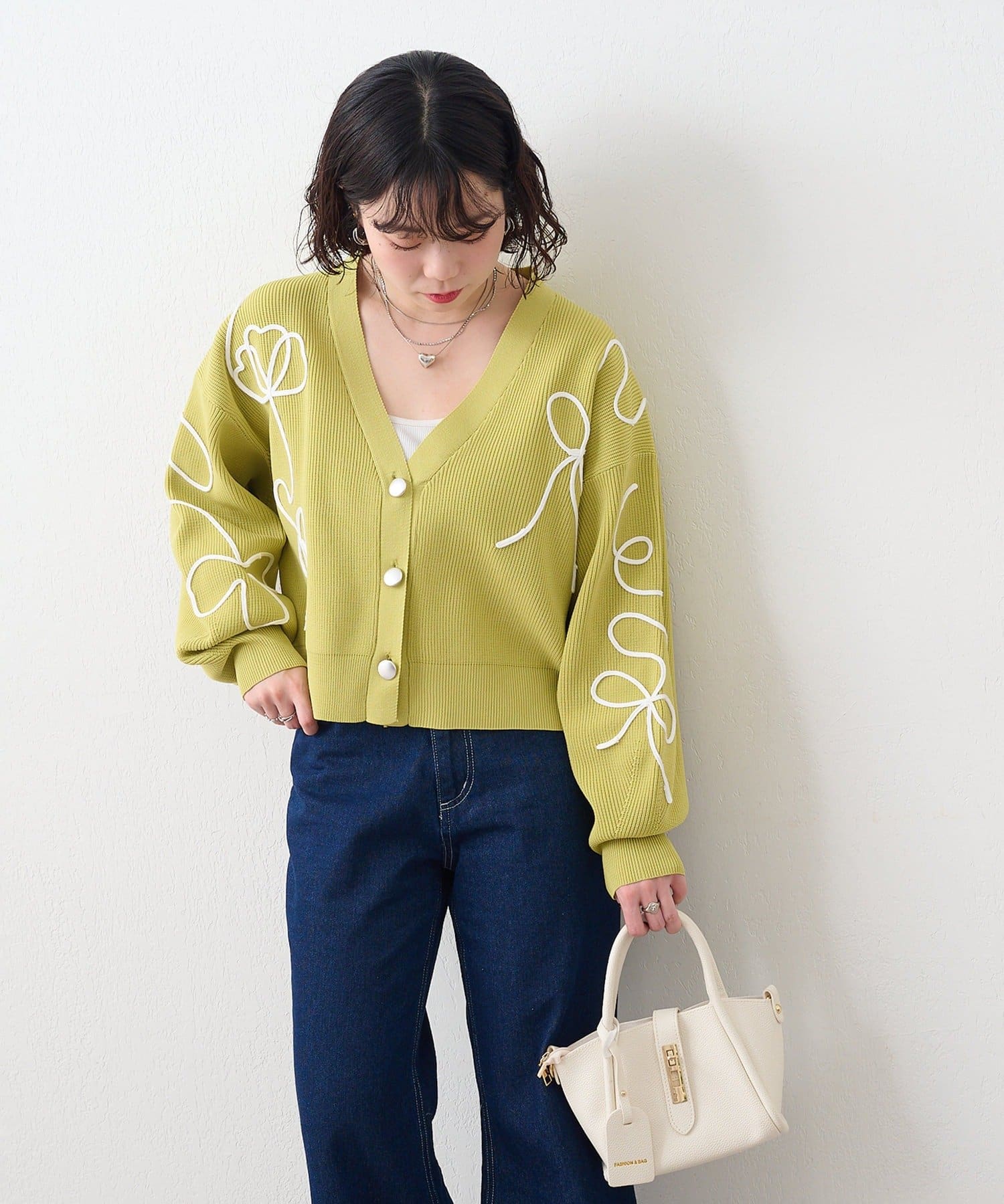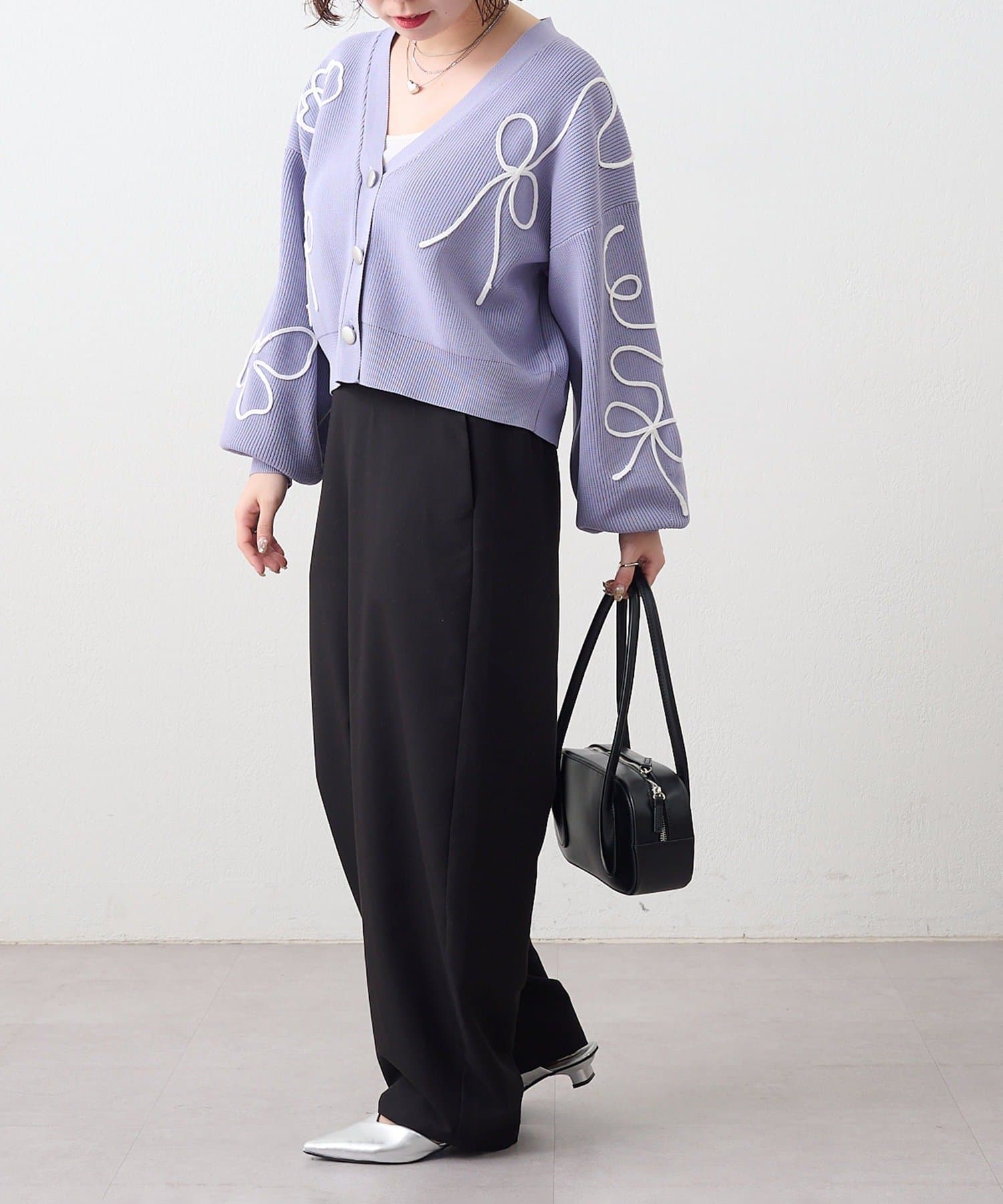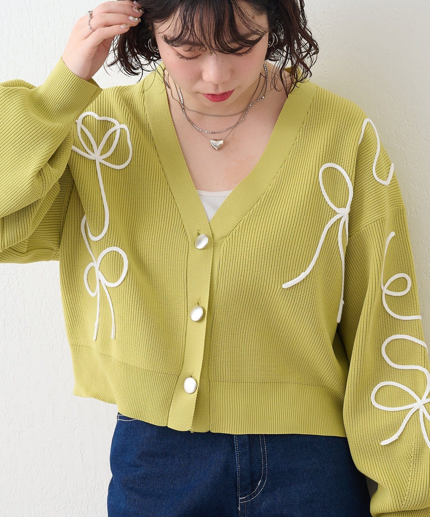 ・ウエストジャストな丈感でどんなボトムスにも合わせやすいカーディガン。