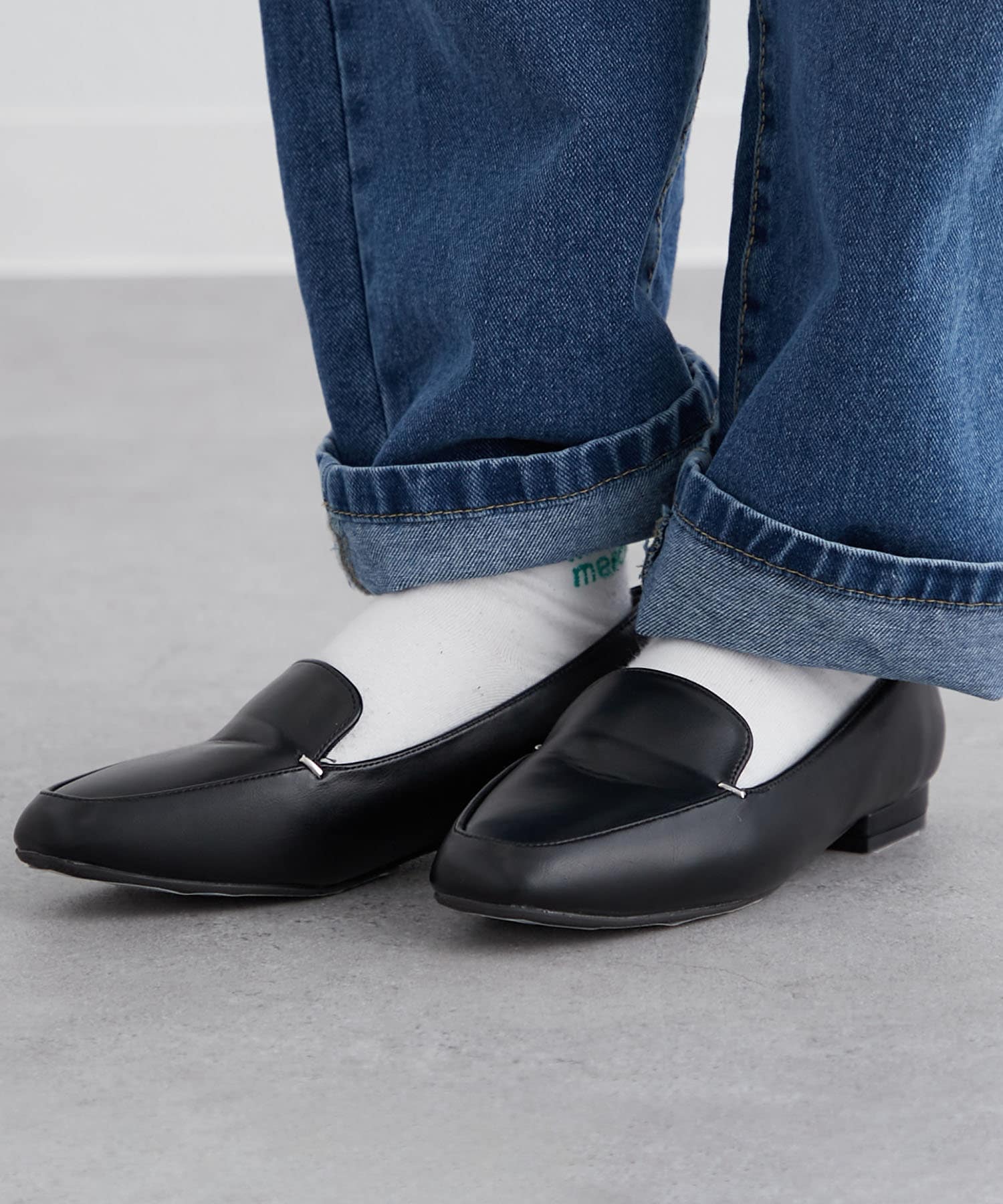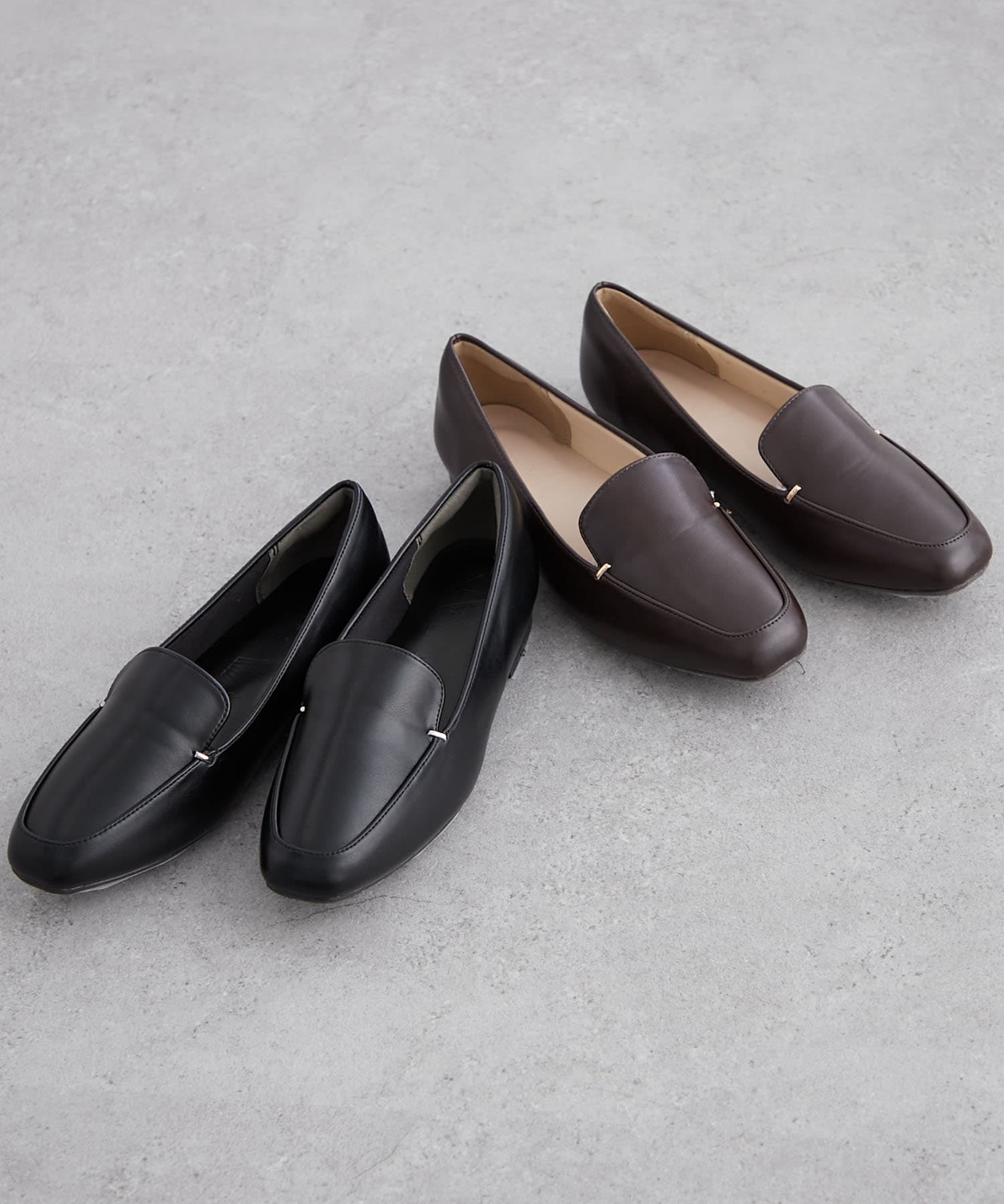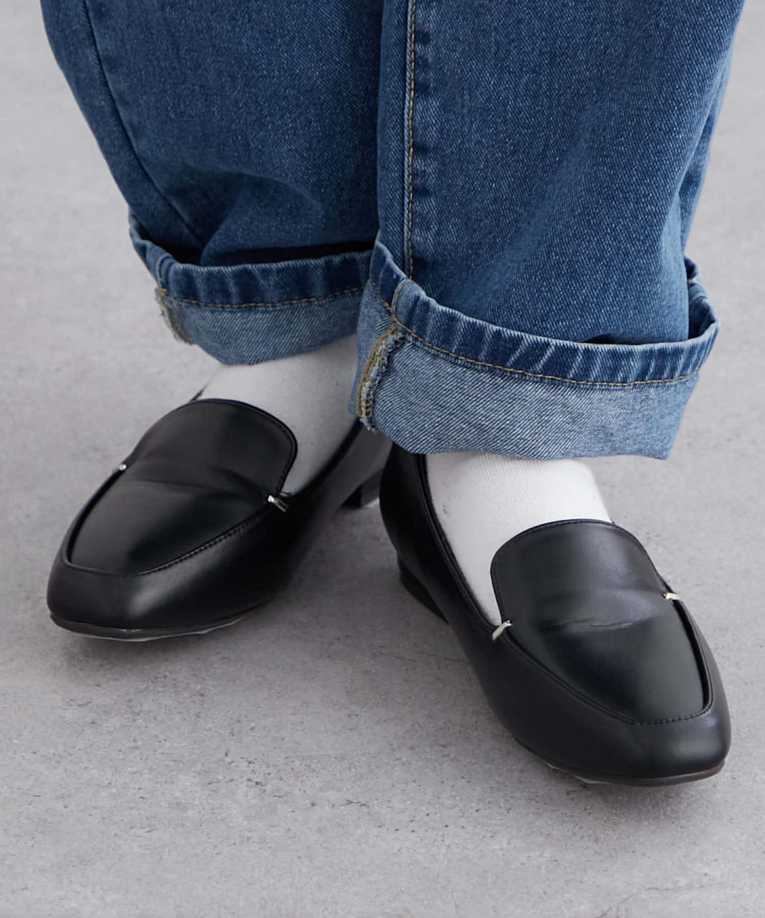・安定感あるローヒールとラウンドみのあるスクエアトゥできれいめコーデやフォーマルシーンにも合わせやすい。
