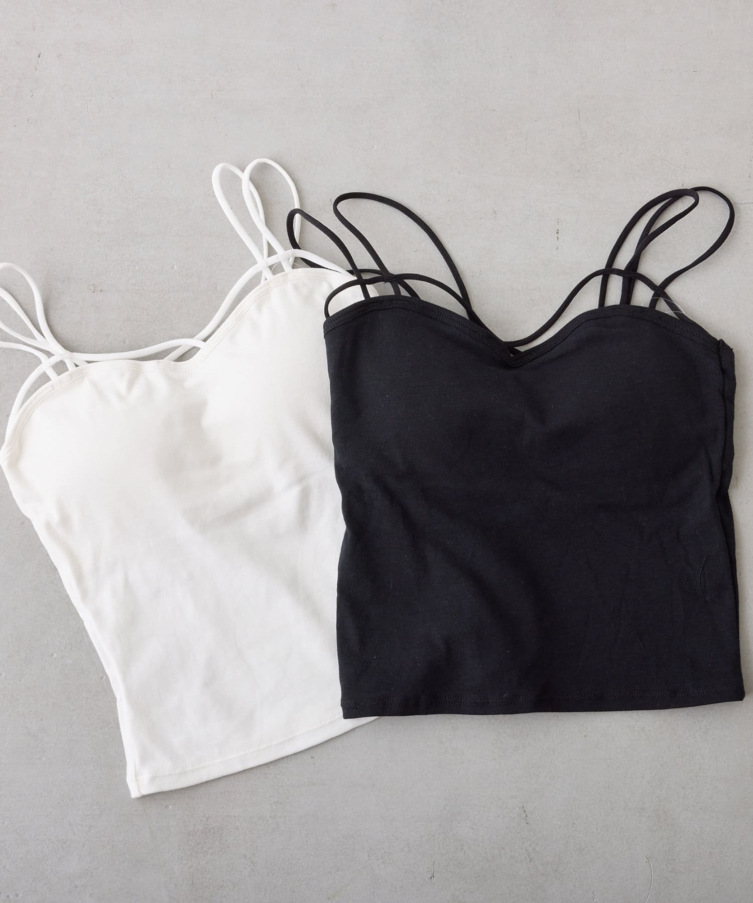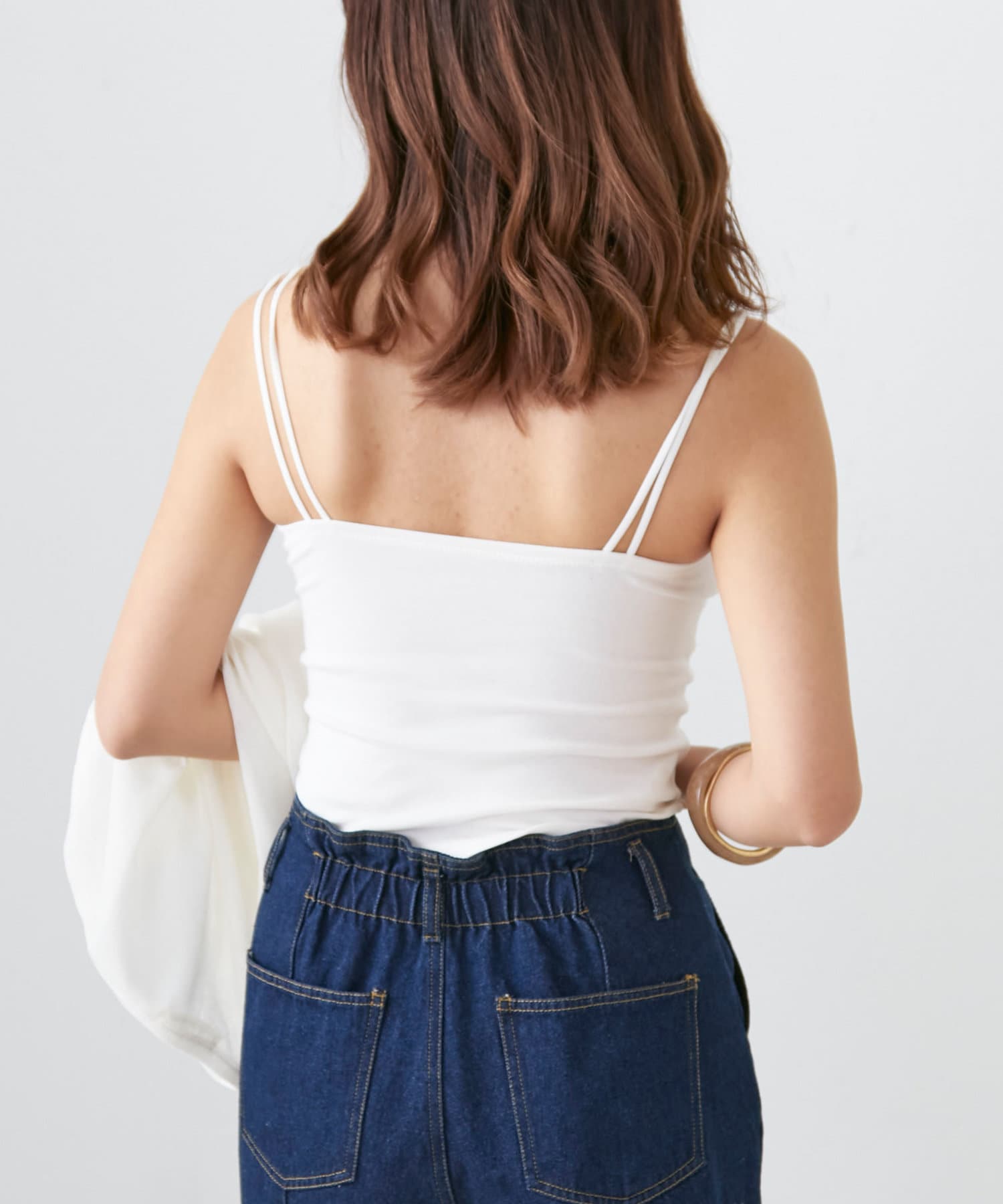 ・カップ付きなので1枚での着用はもちろん、シアーシャツやカーディガンなどの羽織りアイテムのインナーとしてもおすすめ。