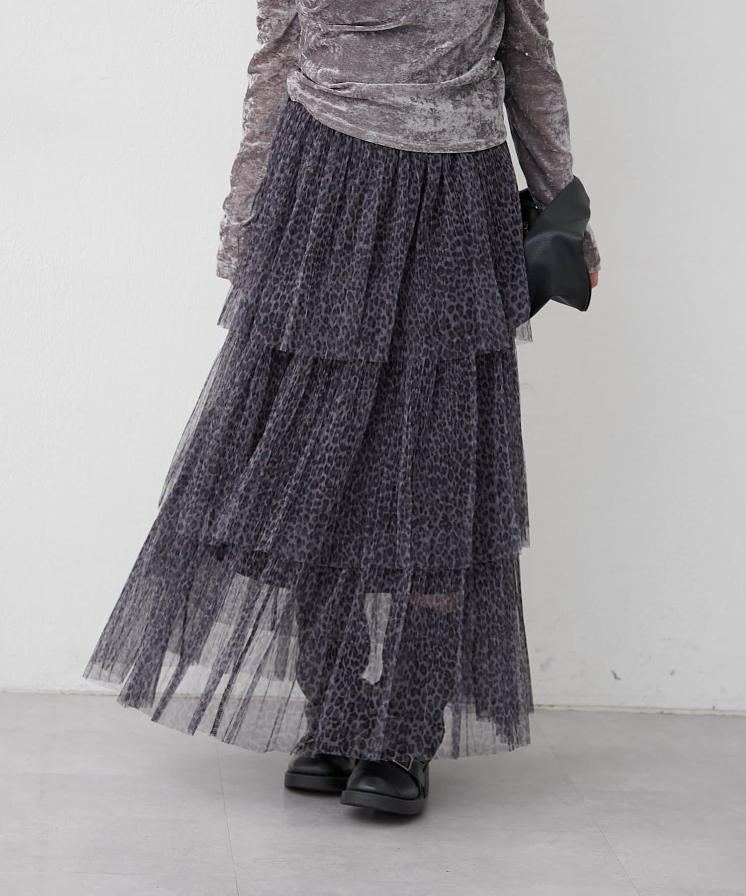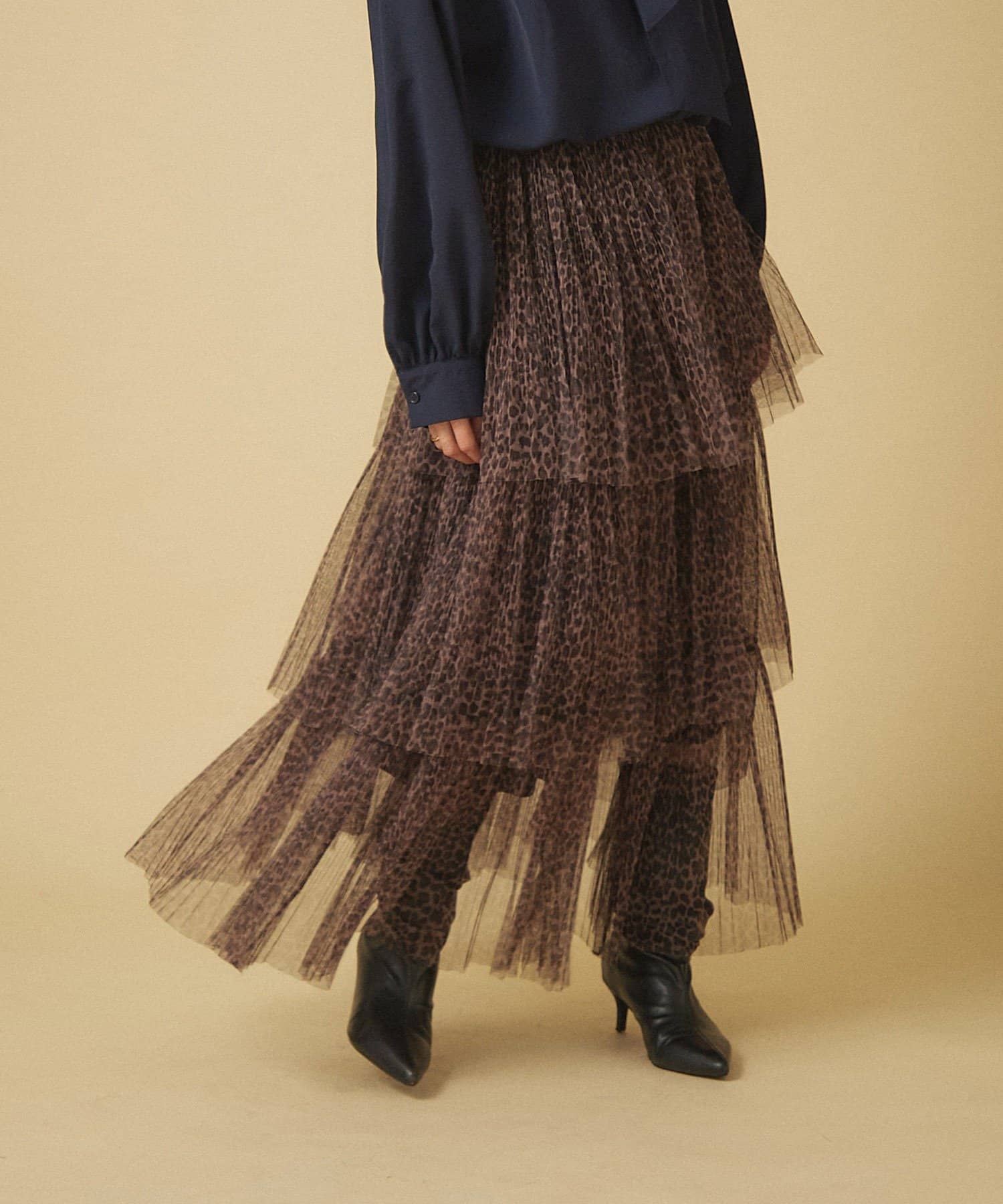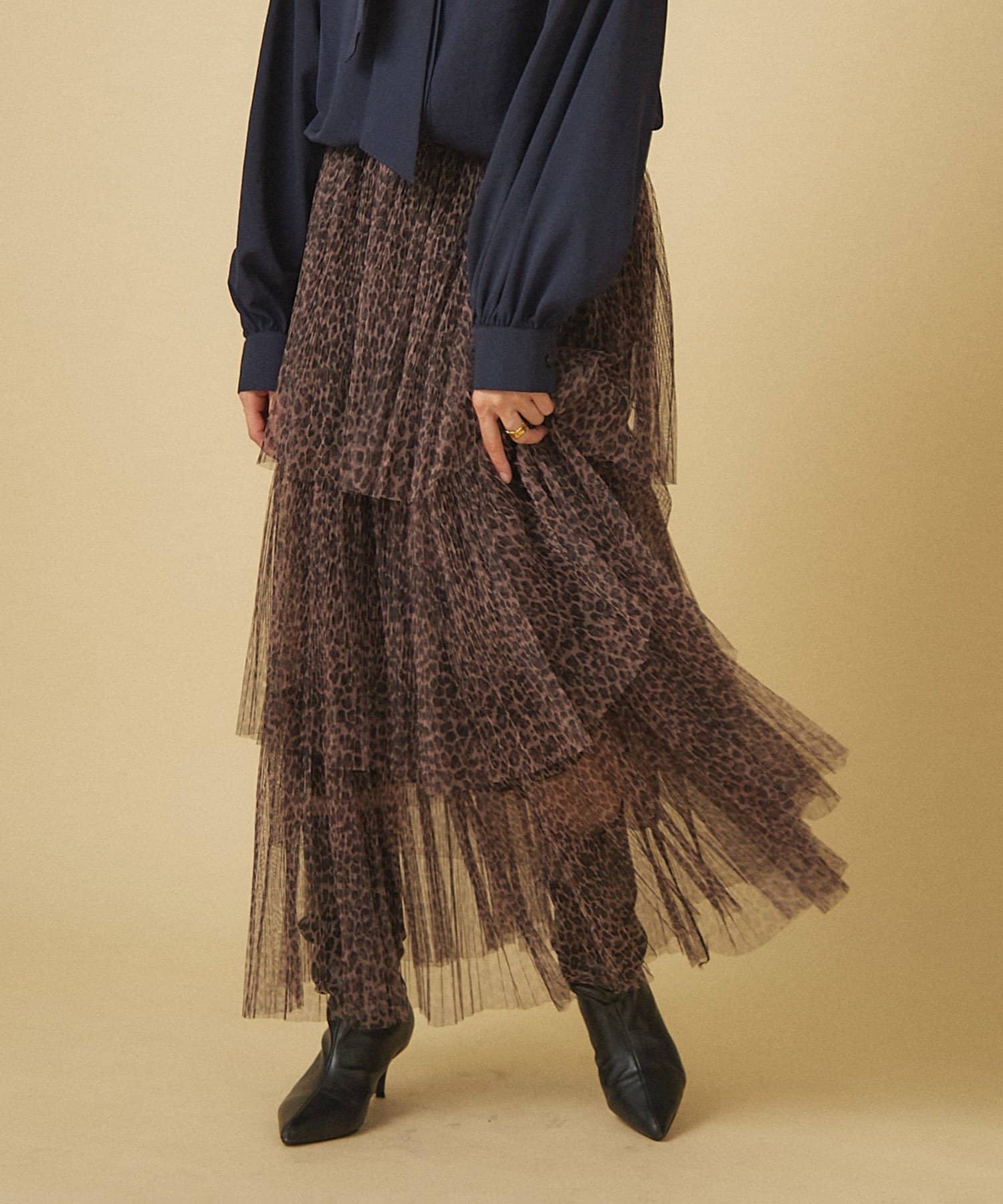 ・秋冬ムード高まるレオパード柄のチュールスカート