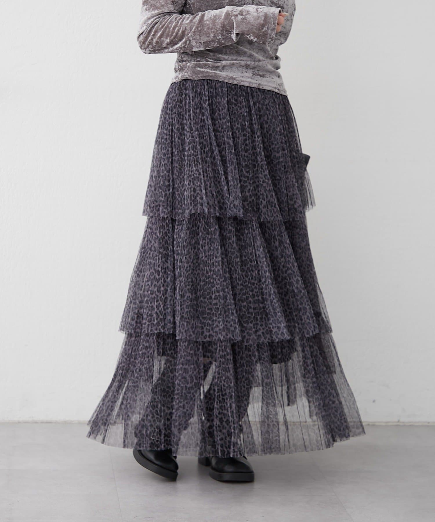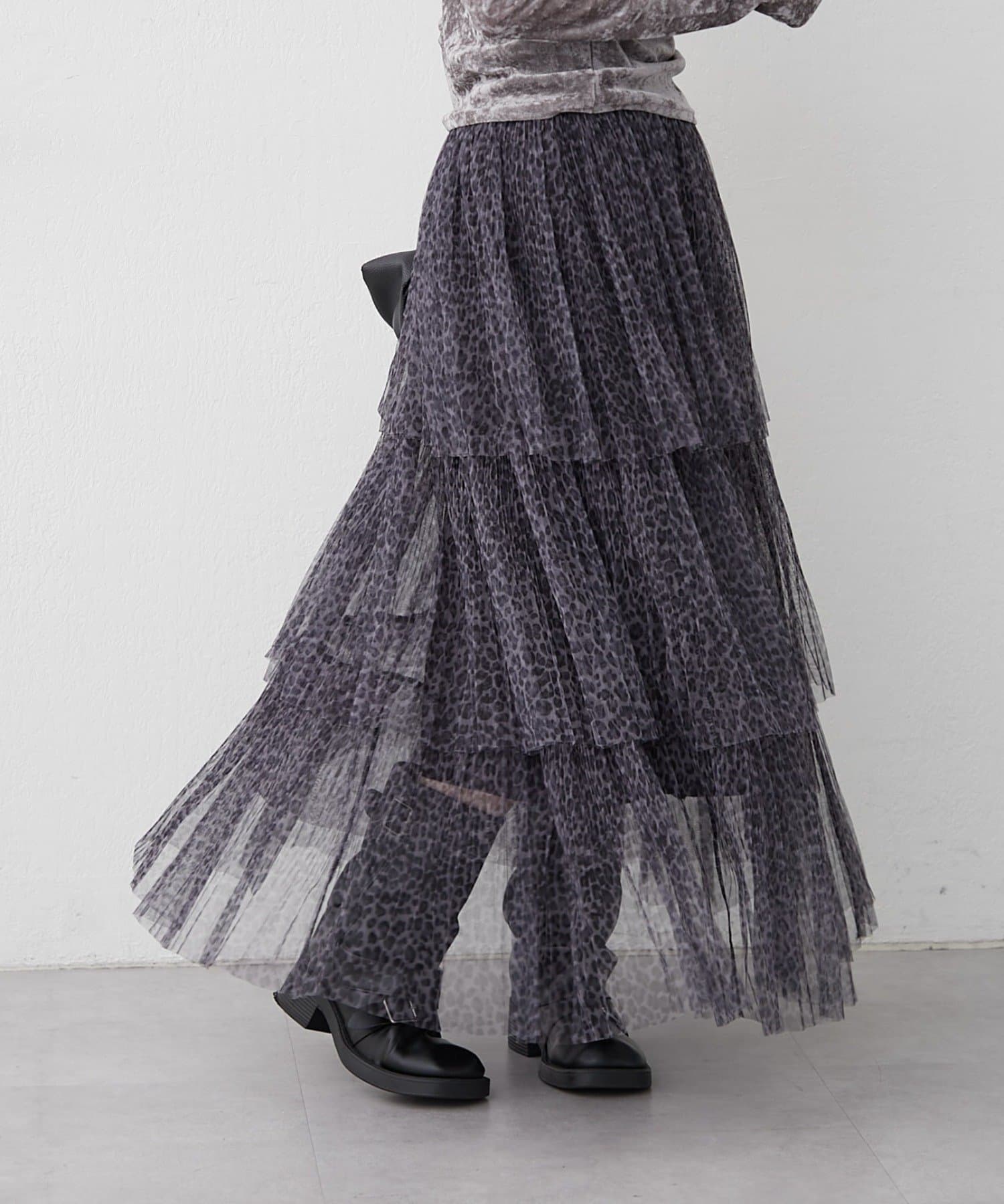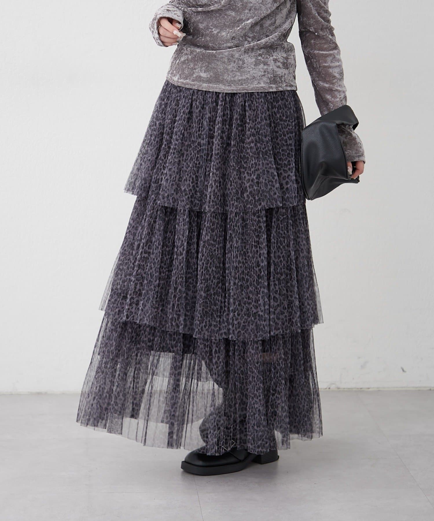 ・秋冬ムード高まるレオパード柄のチュールスカート