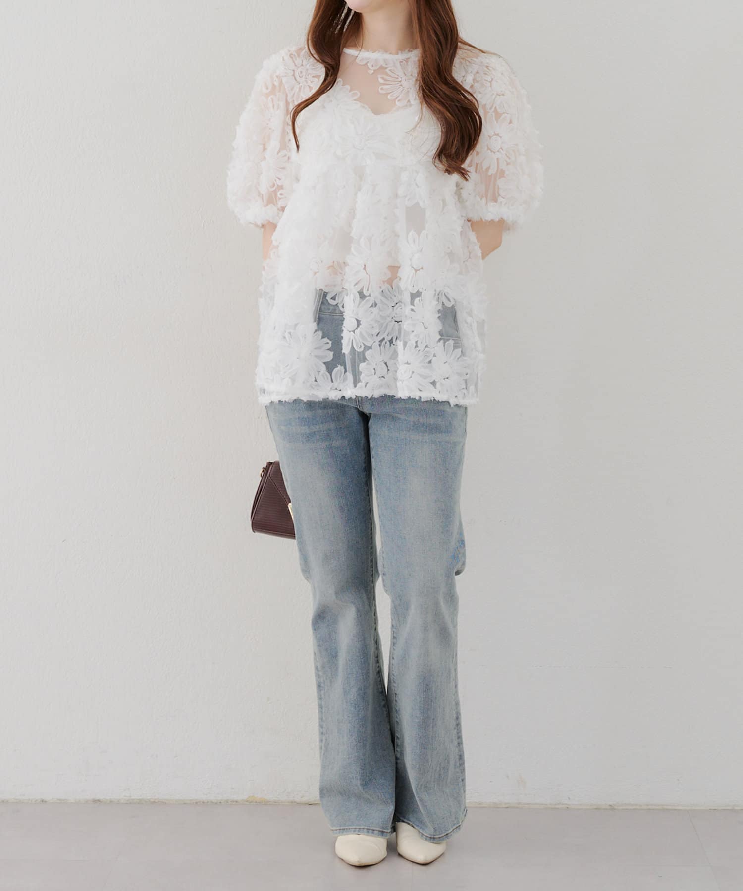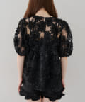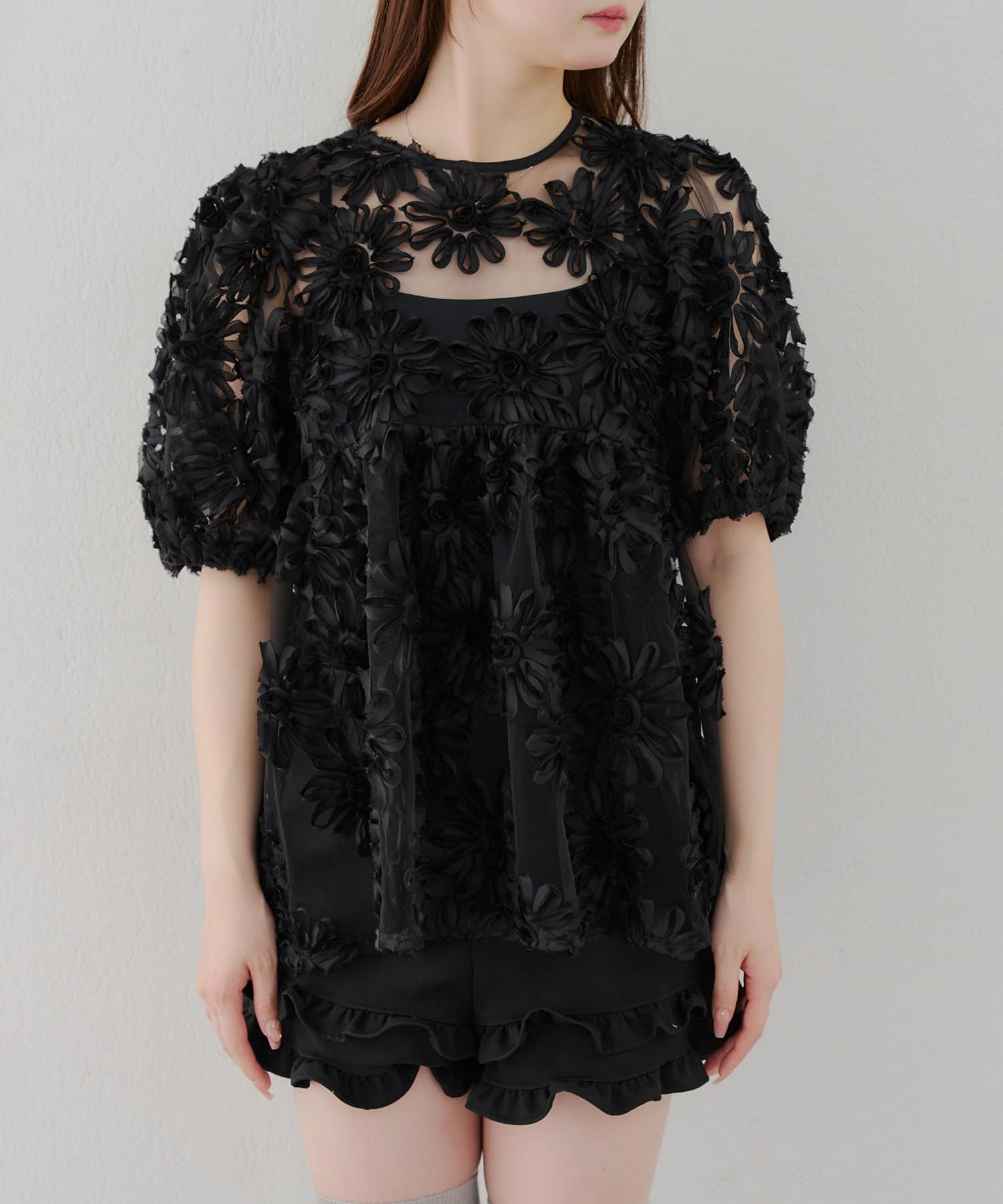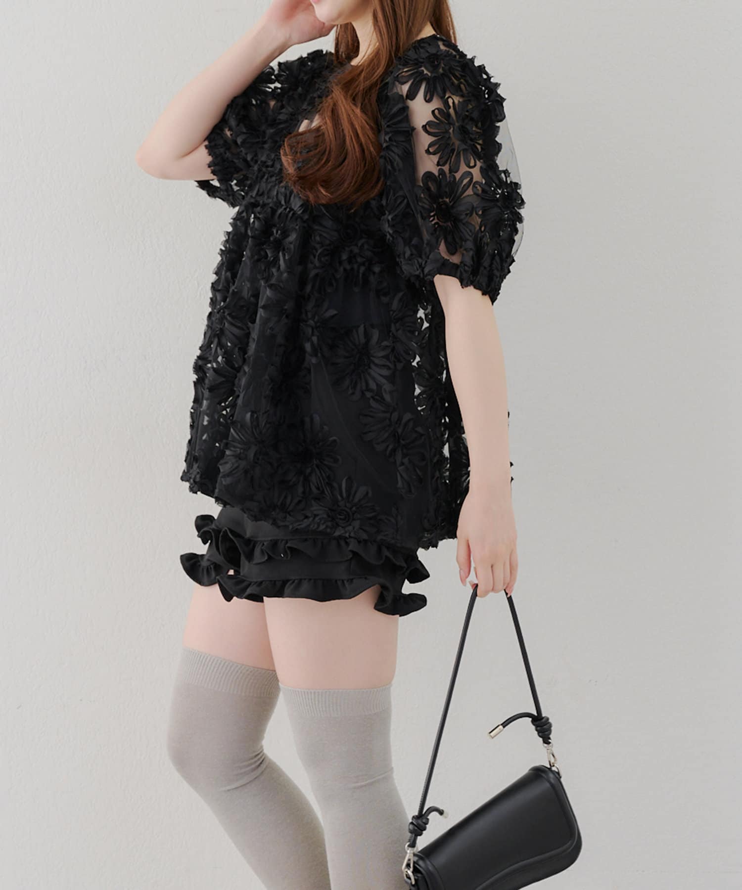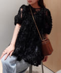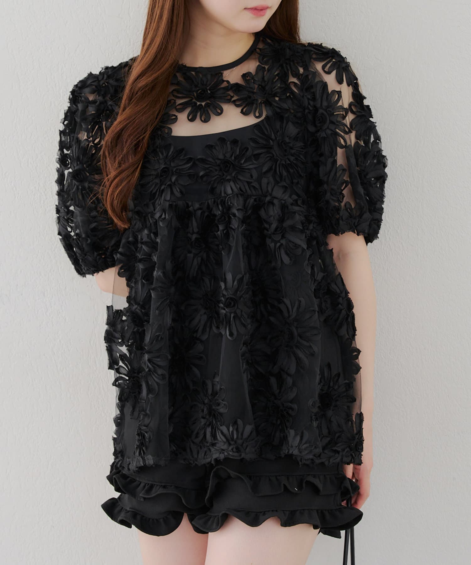・ふんわり立体感のあるパフスリーブのチュールブラウス。