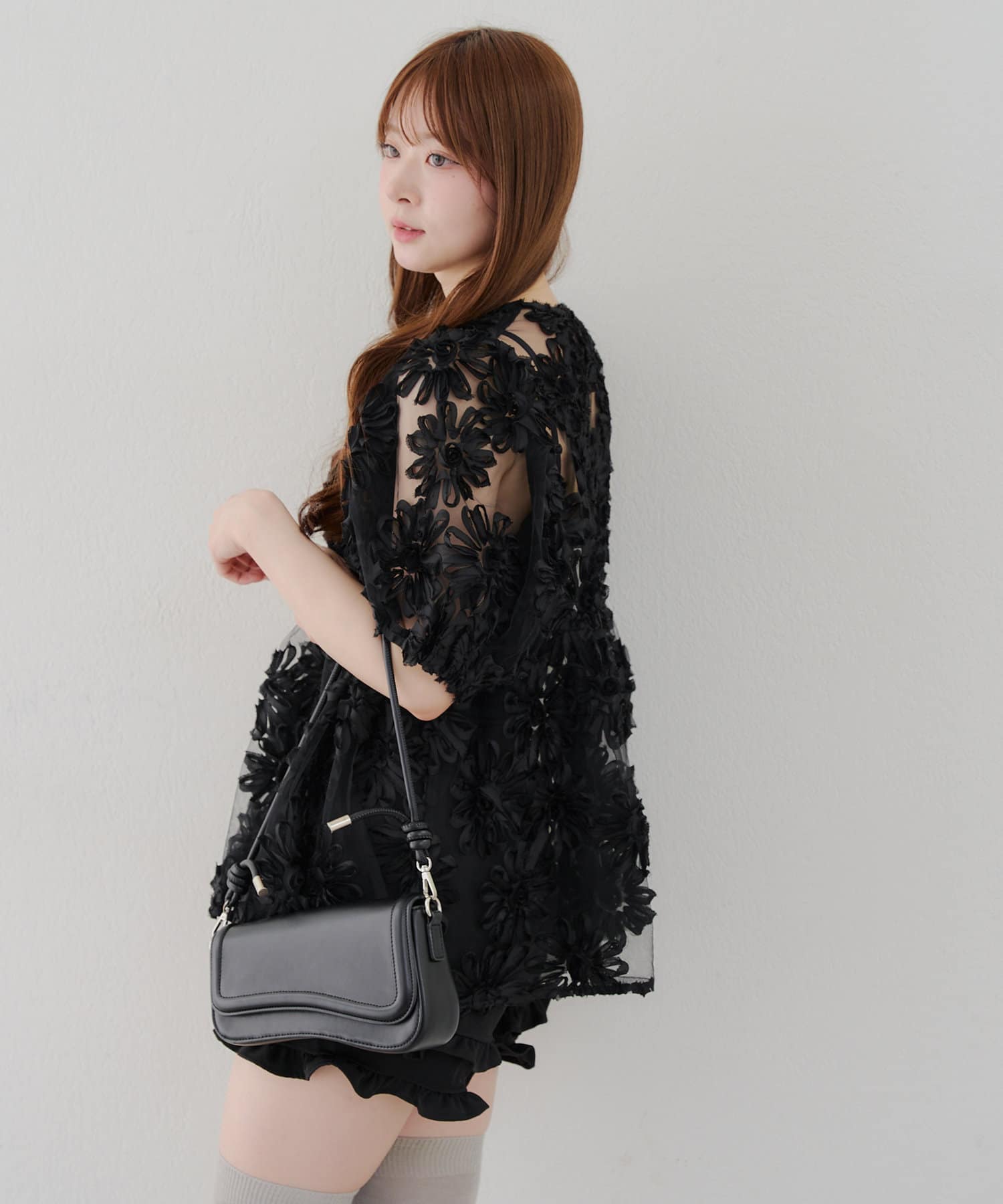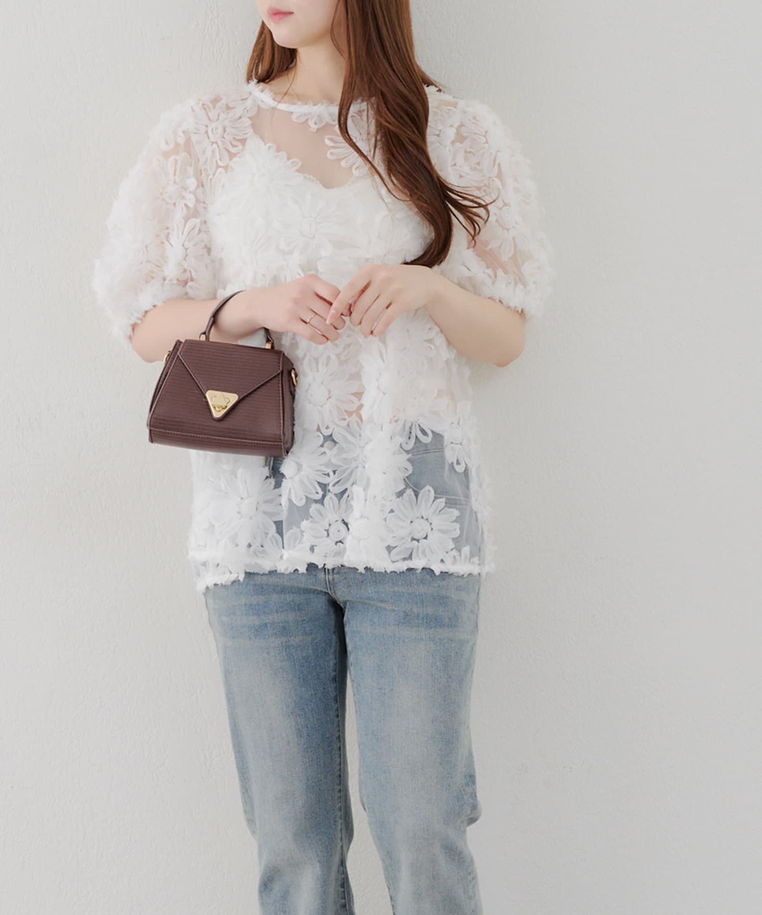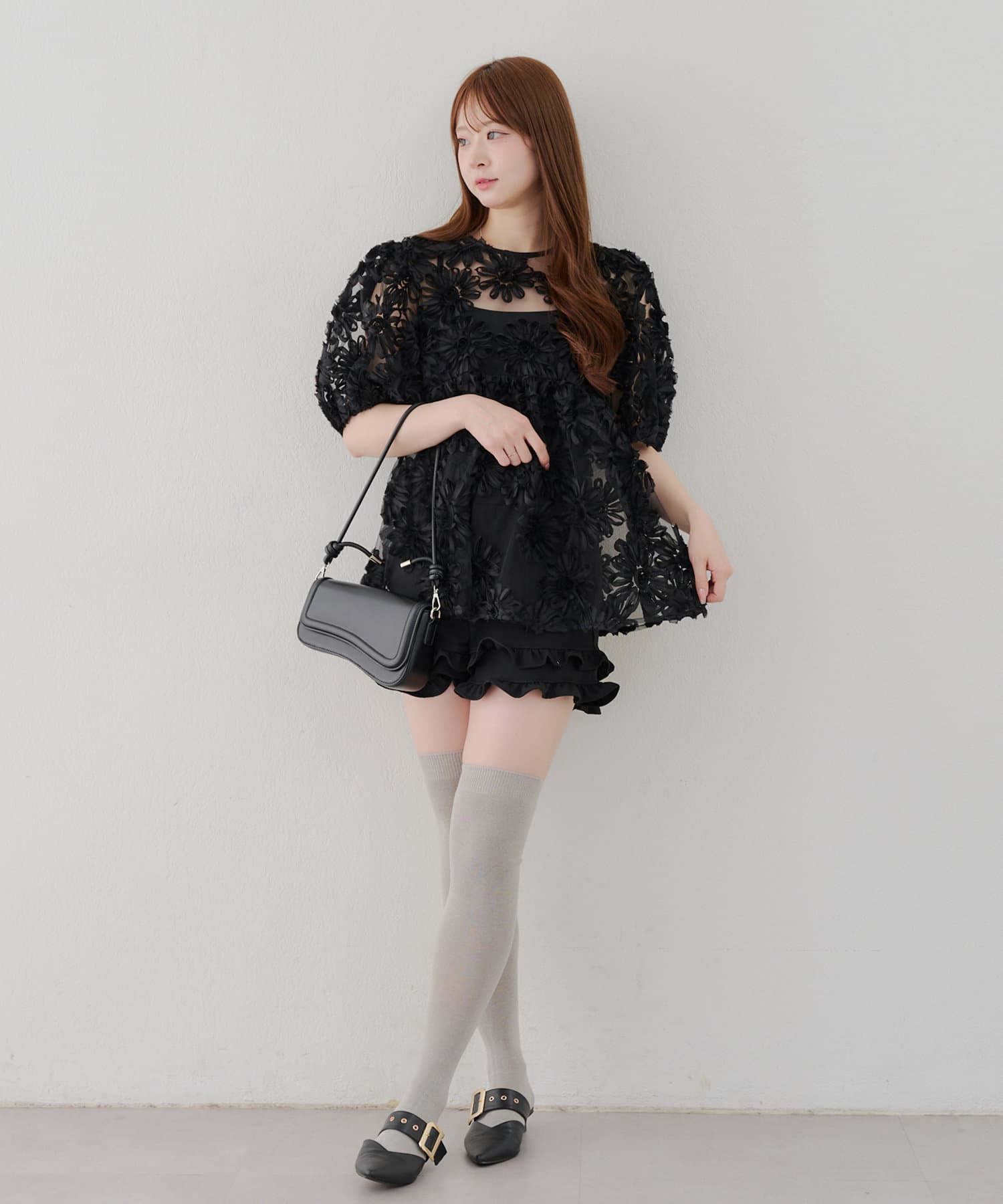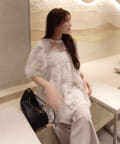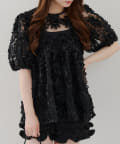 ・ふんわり立体感のあるパフスリーブのチュールブラウス。