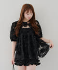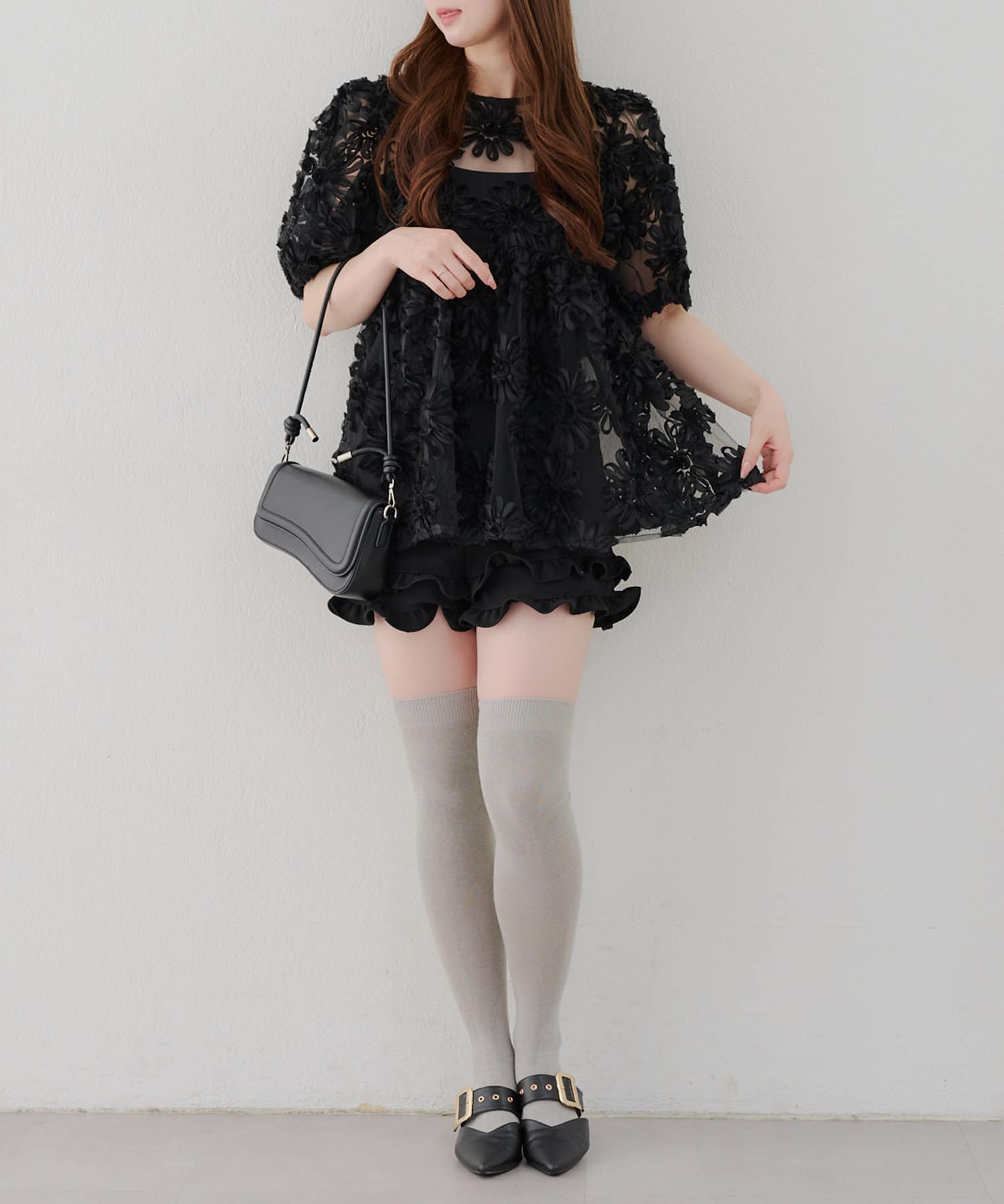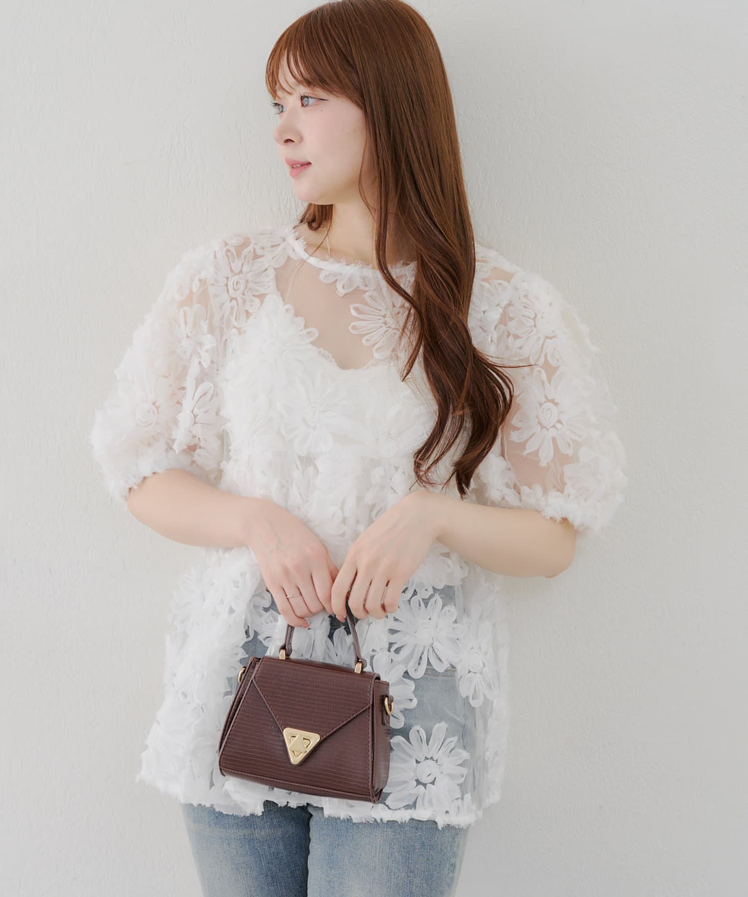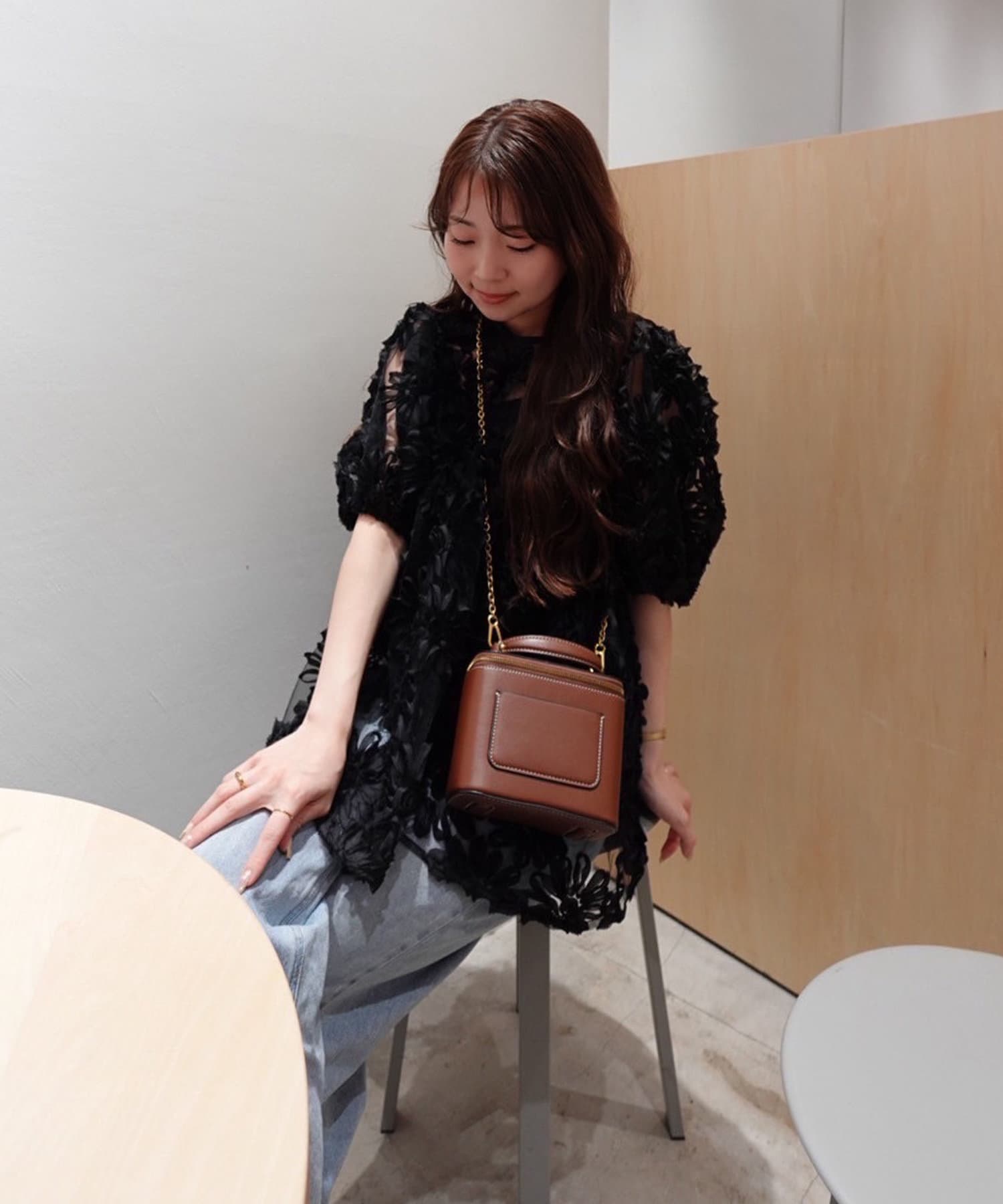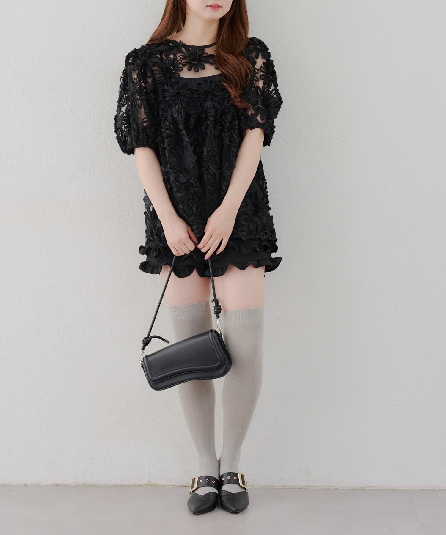 ・ふんわり立体感のあるパフスリーブのチュールブラウス。