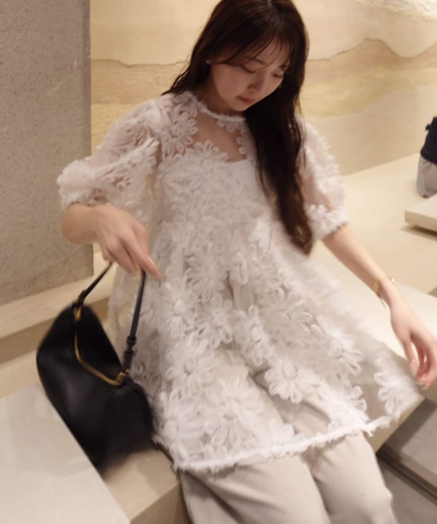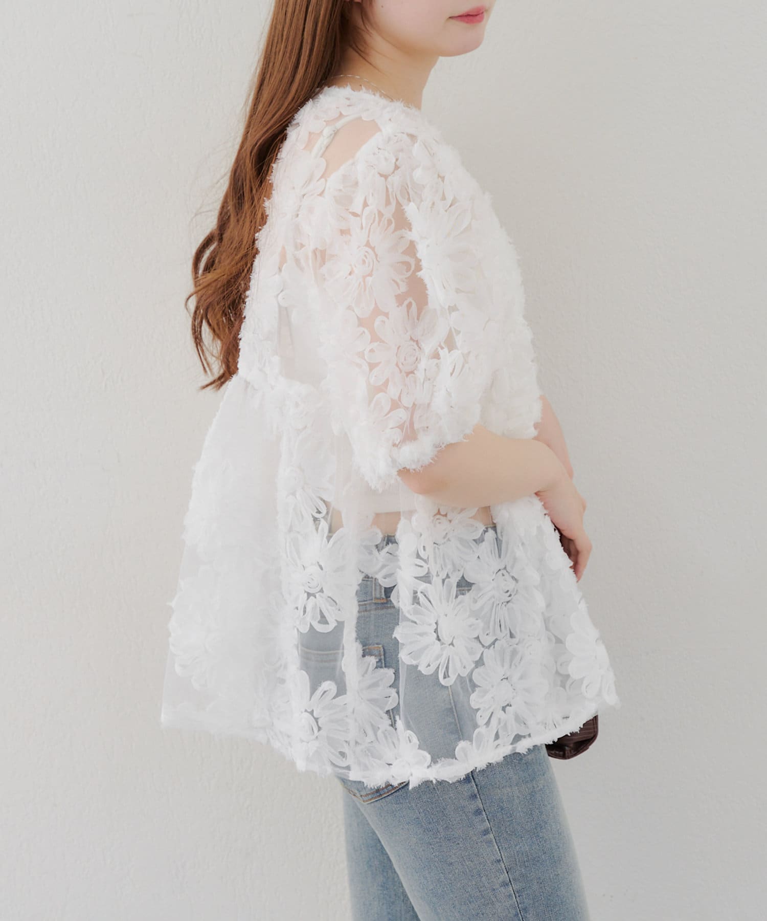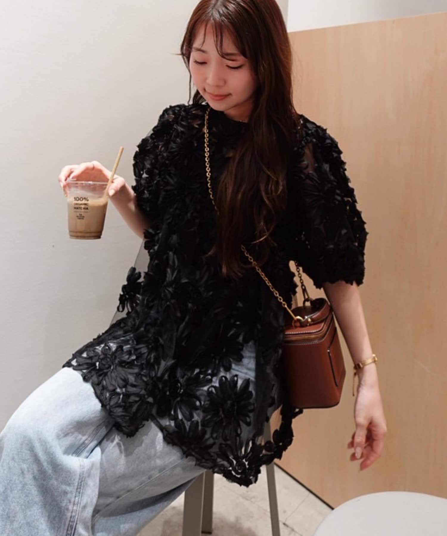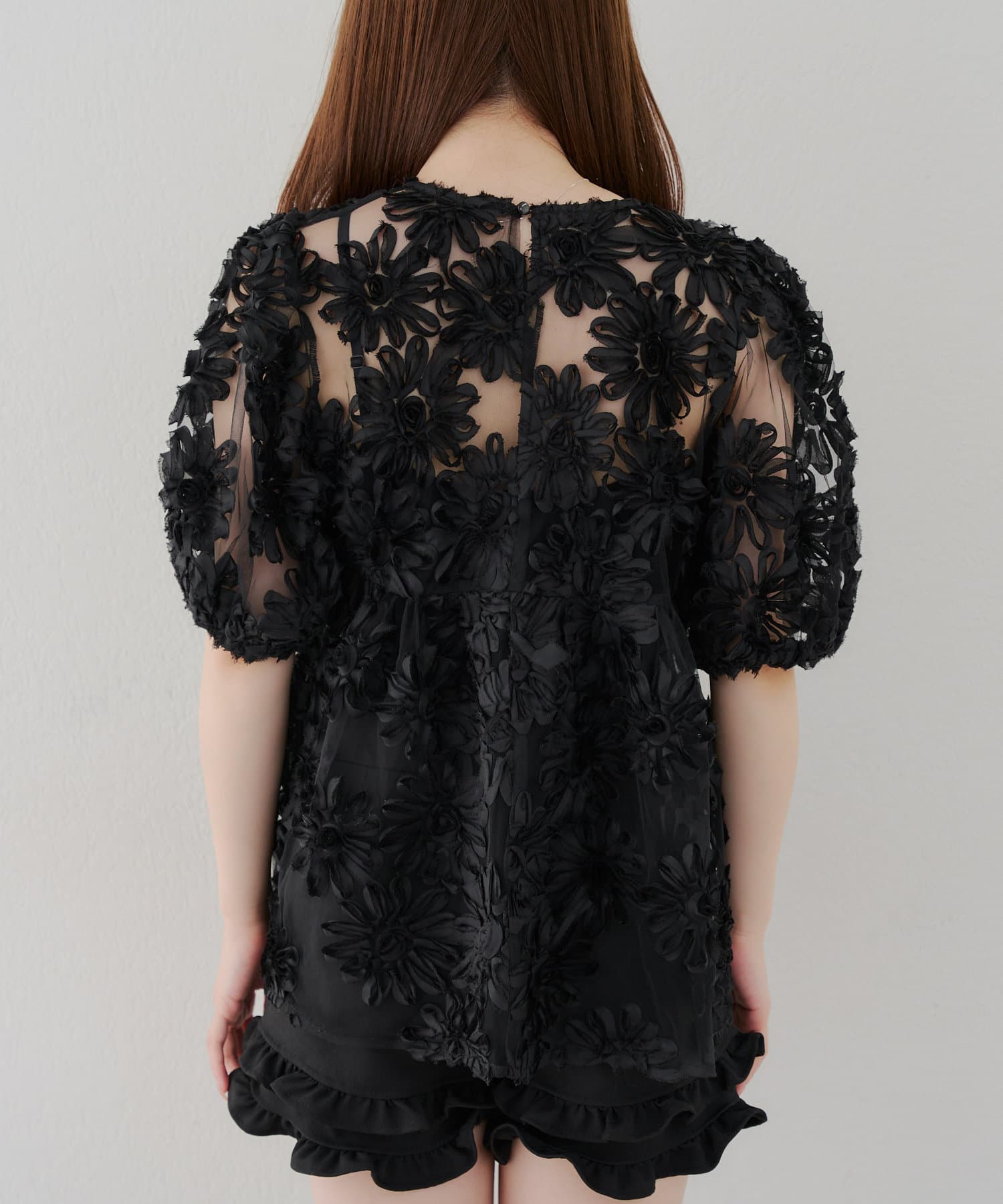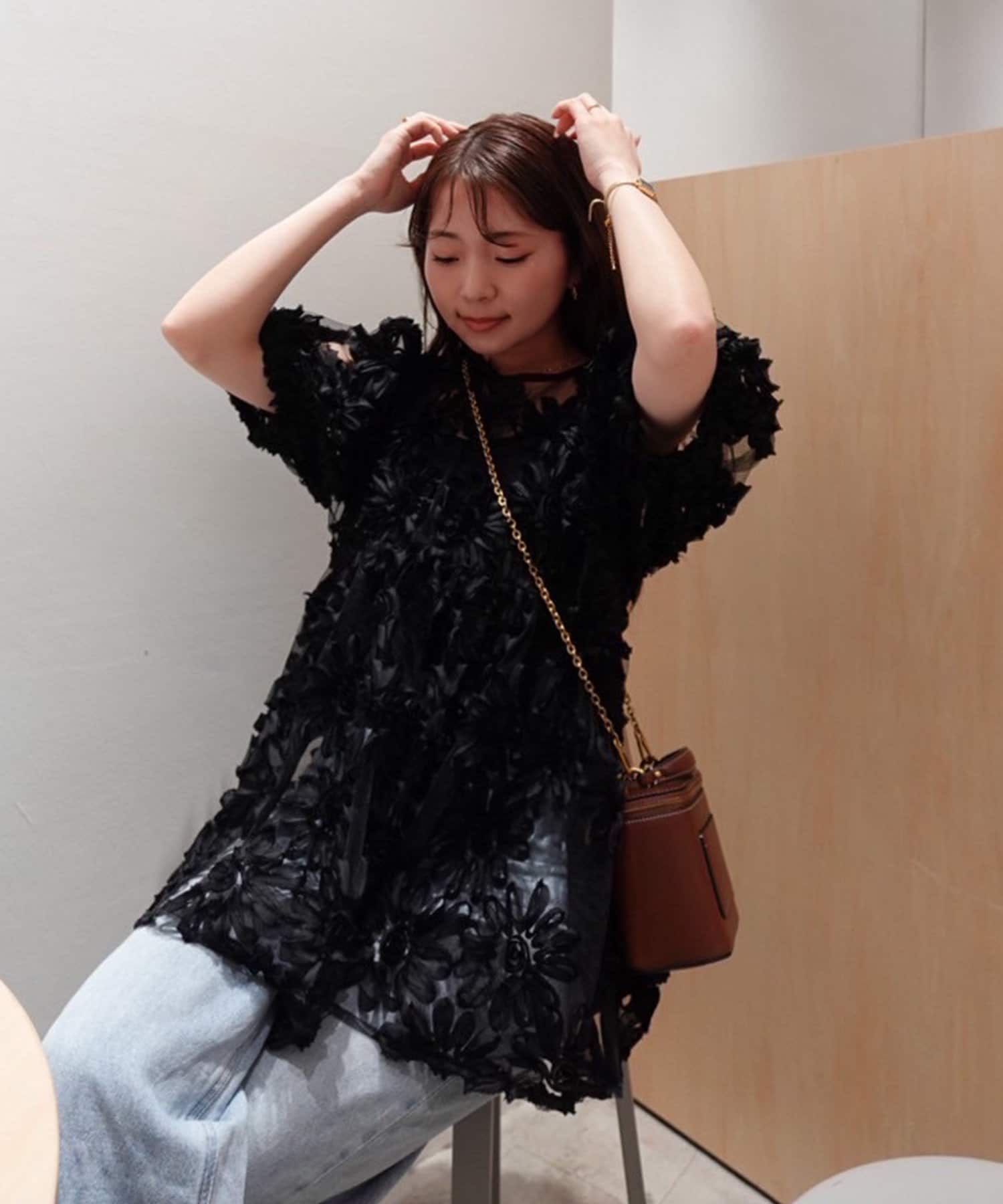 【@toitopoooo_____コラボ】花柄チュールブラウス