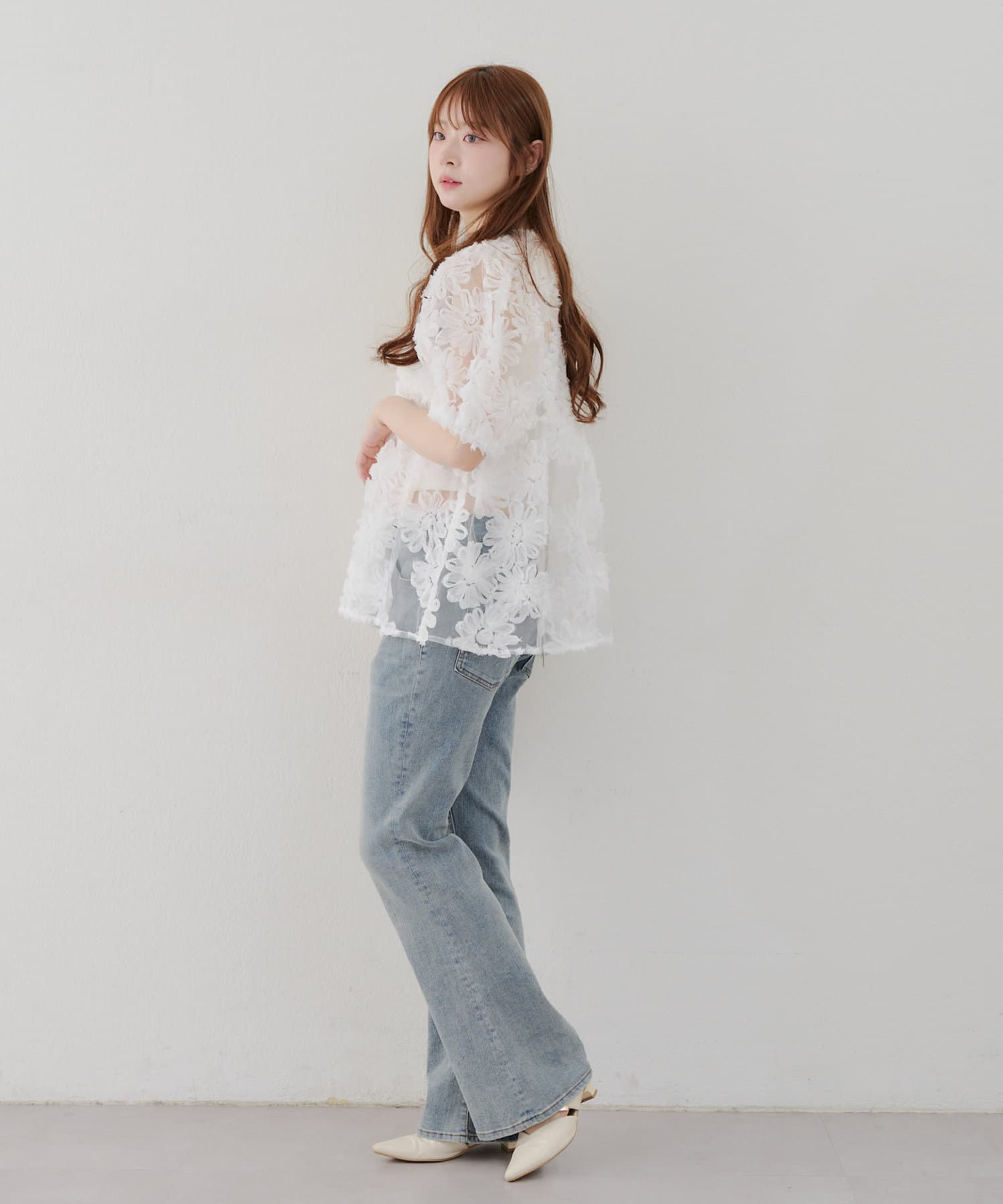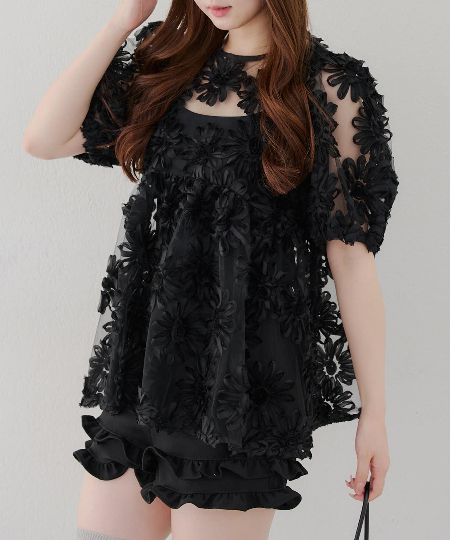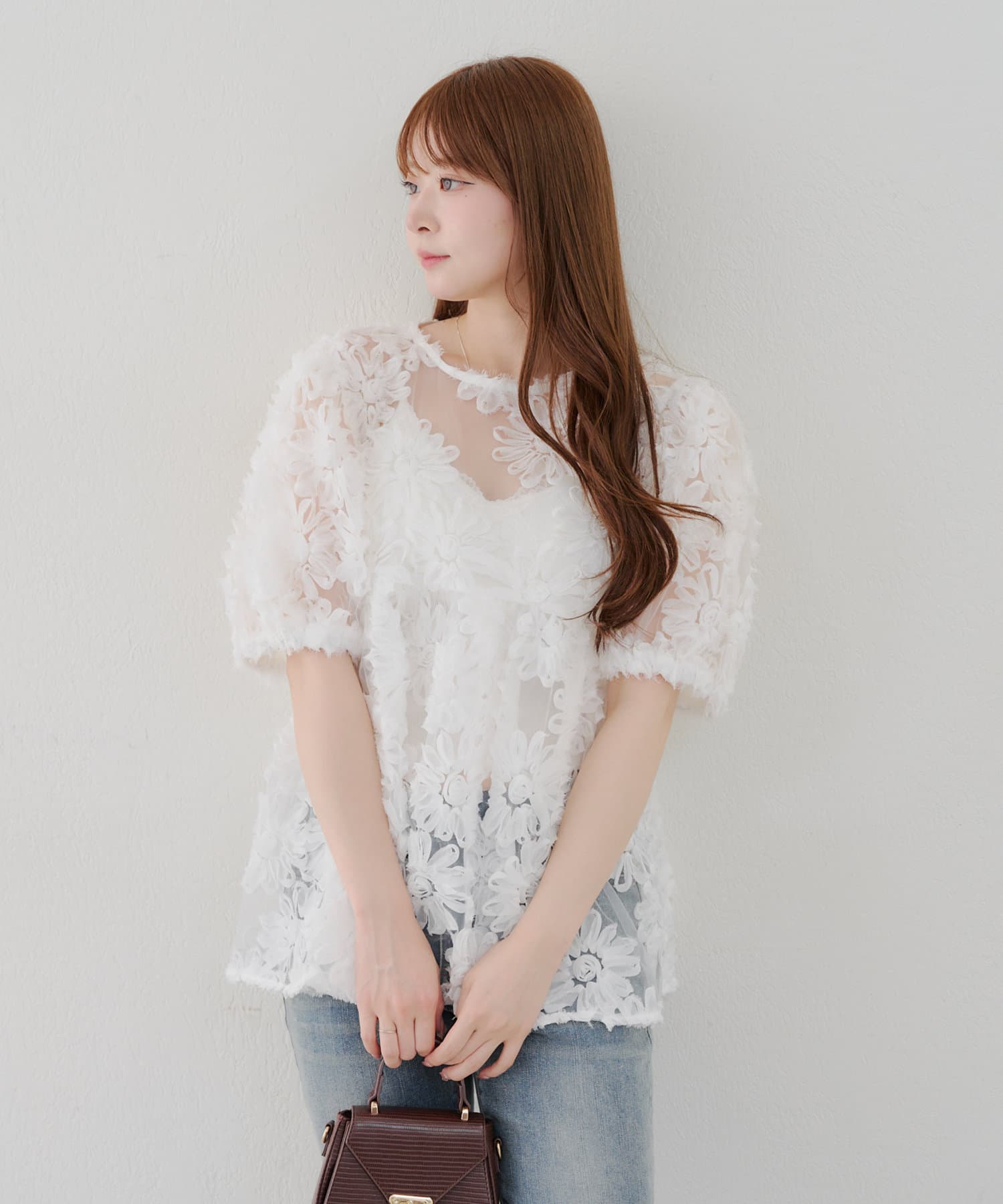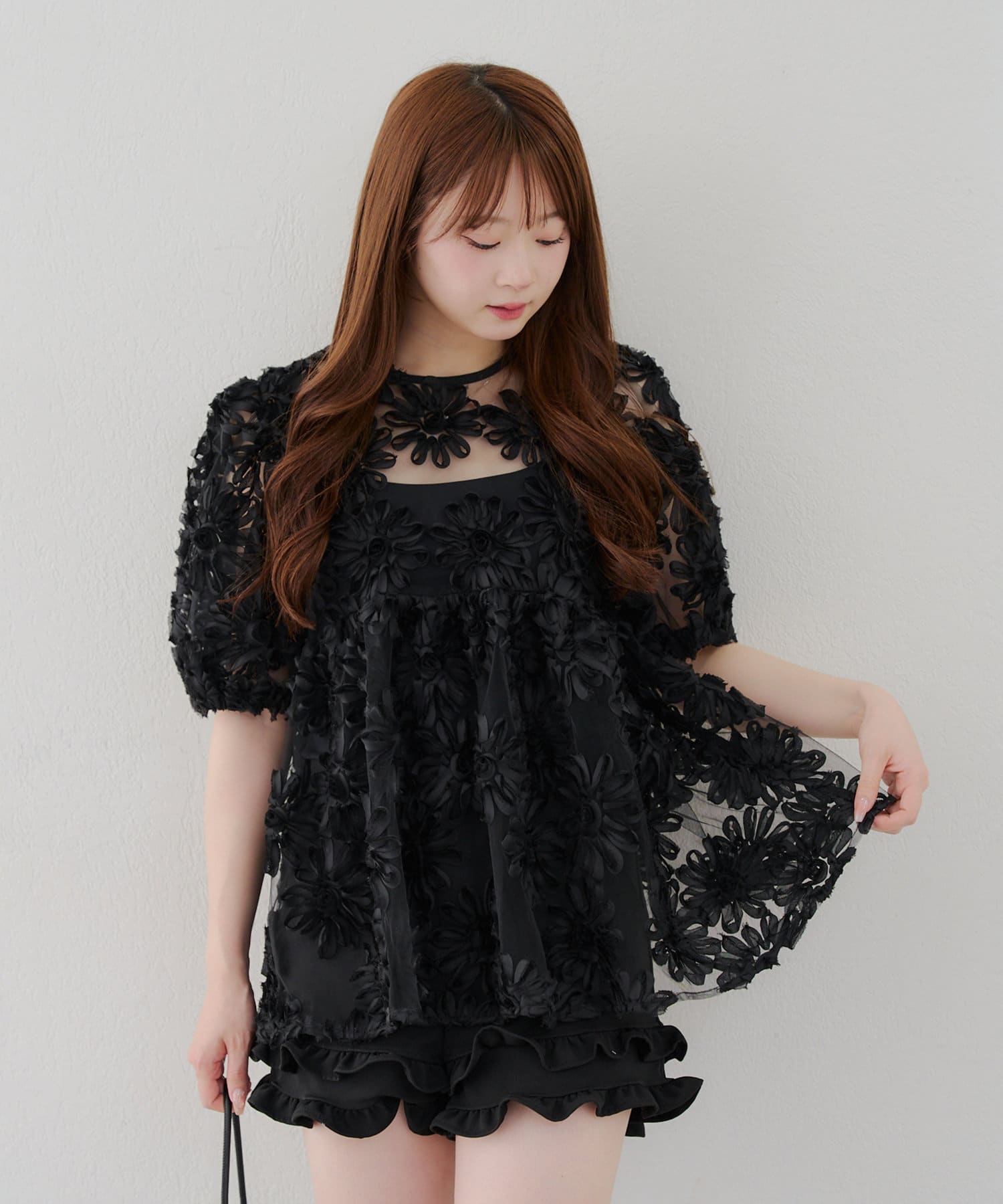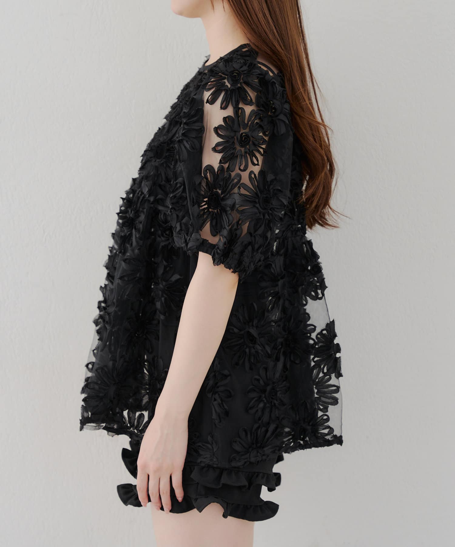 【@toitopoooo_____コラボ】花柄チュールブラウス
