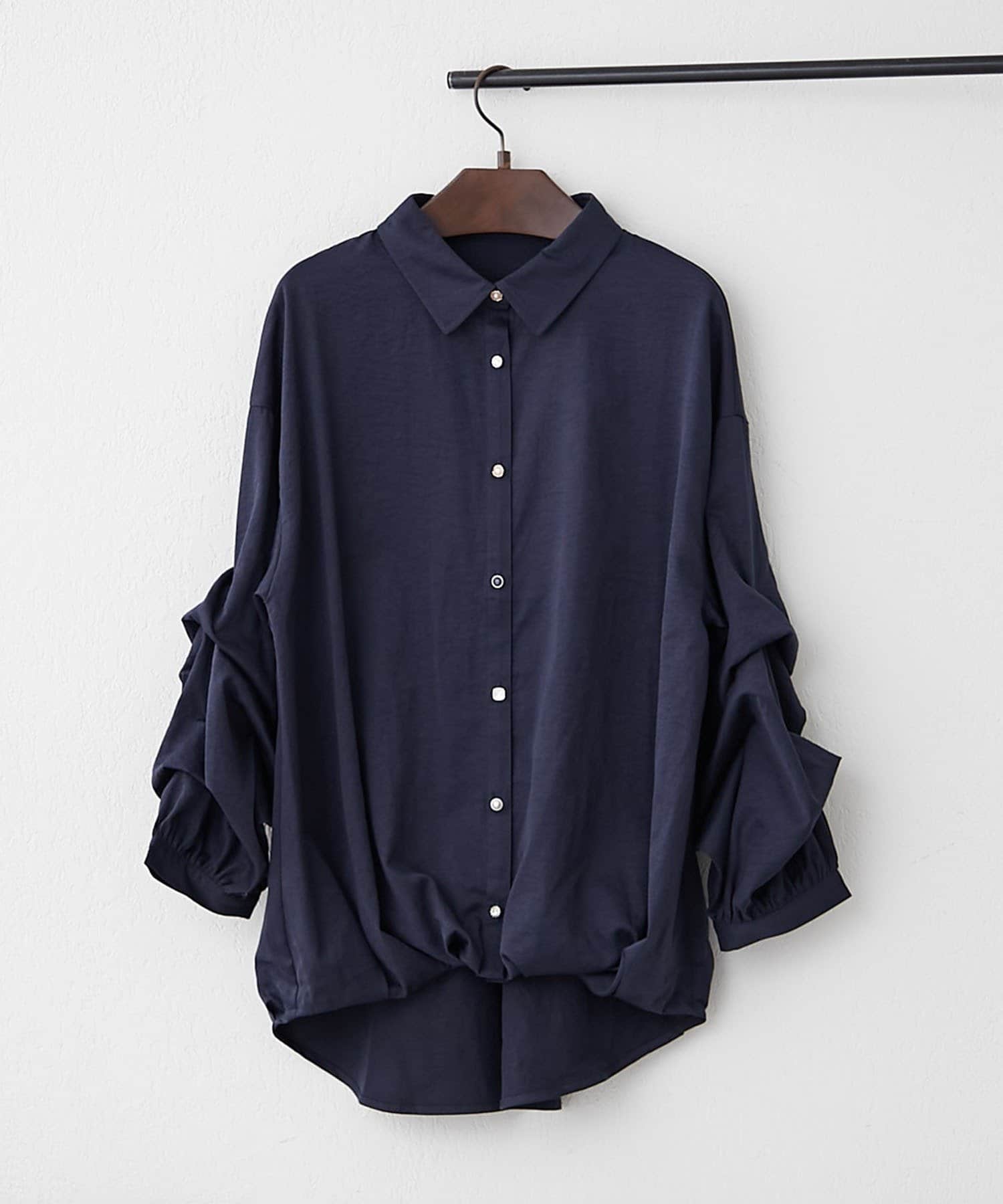 ・デザイン性のある袖が目を惹くタックブラウス
