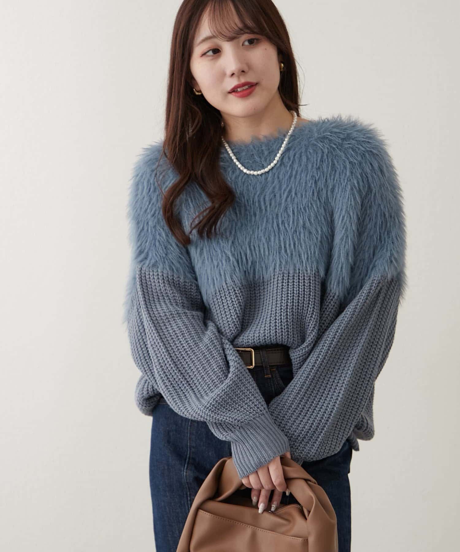 ・ふわふわっとしたシャギーと畦編みニットの切替がポイント