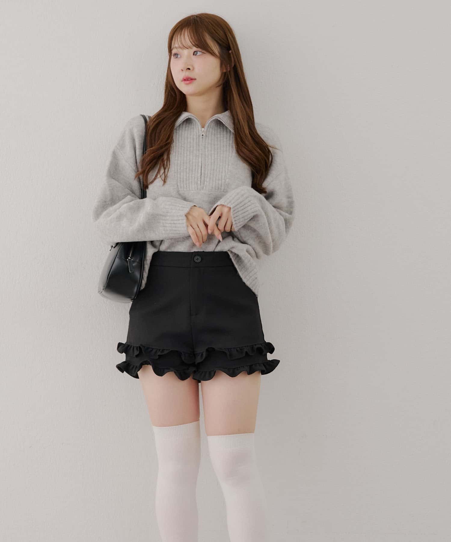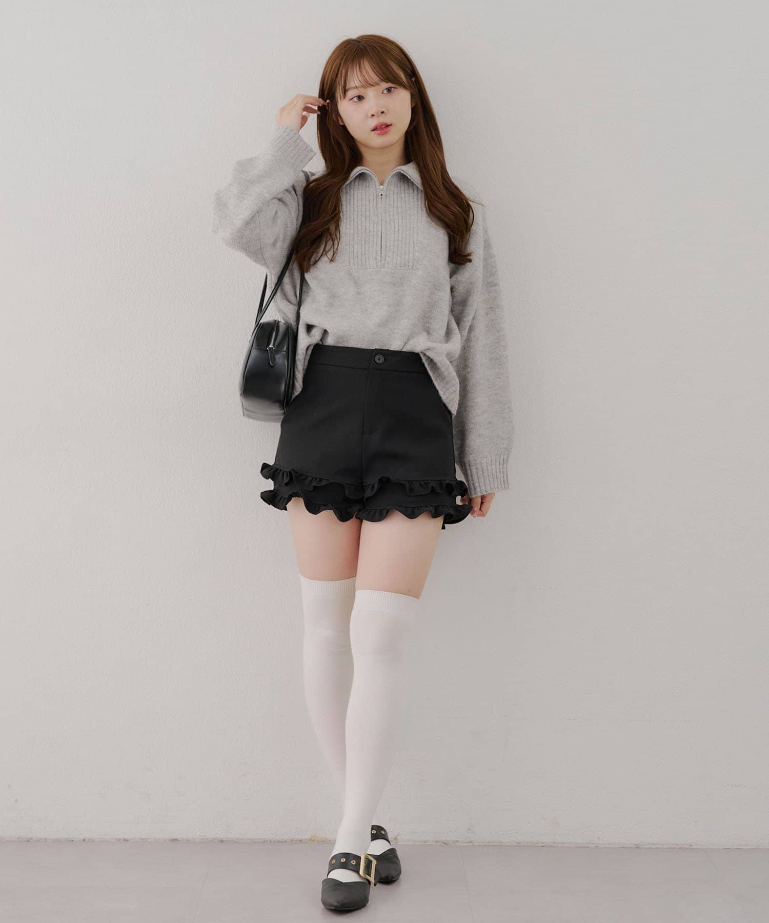 柔らかな肌さわり、ヤクタッチハーフジップニット