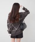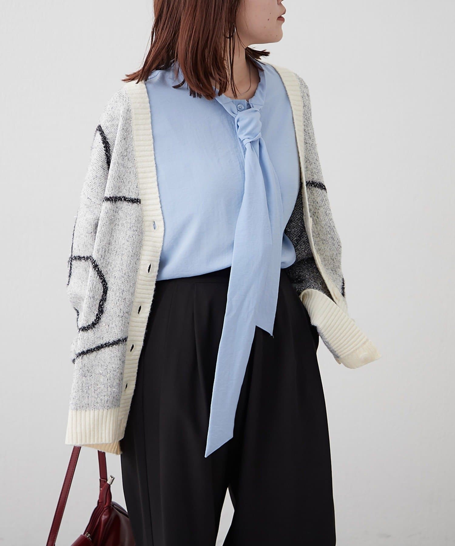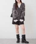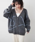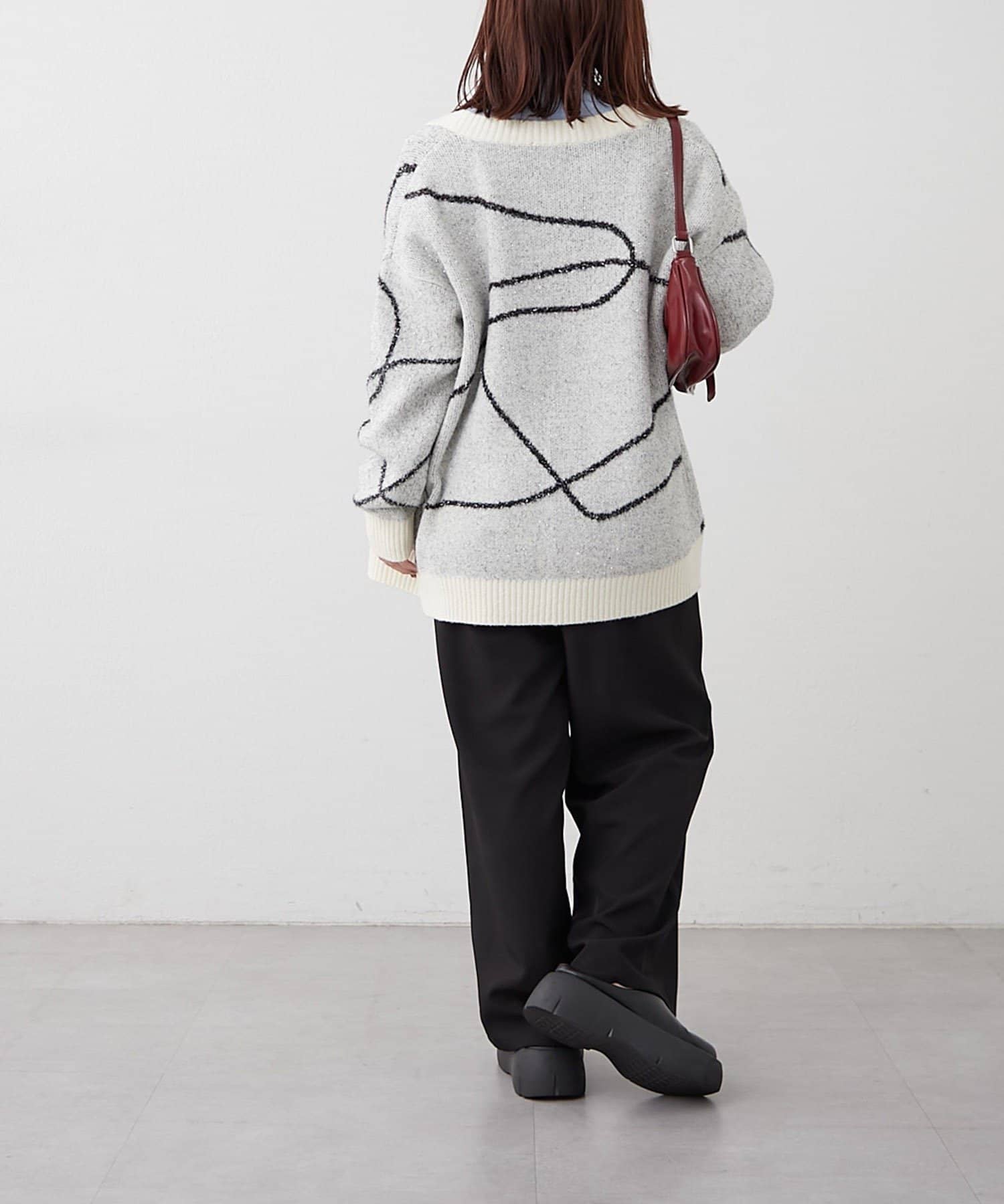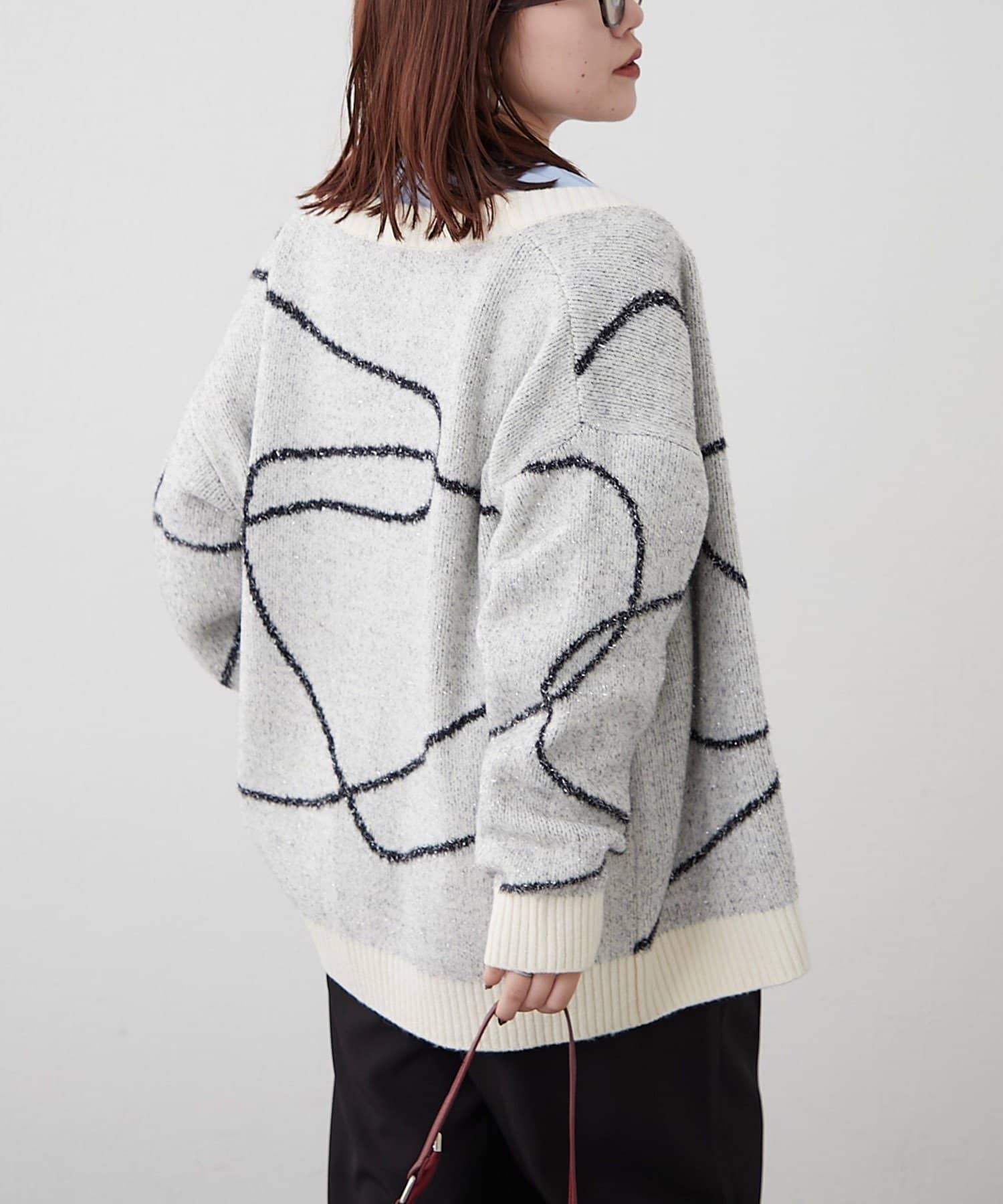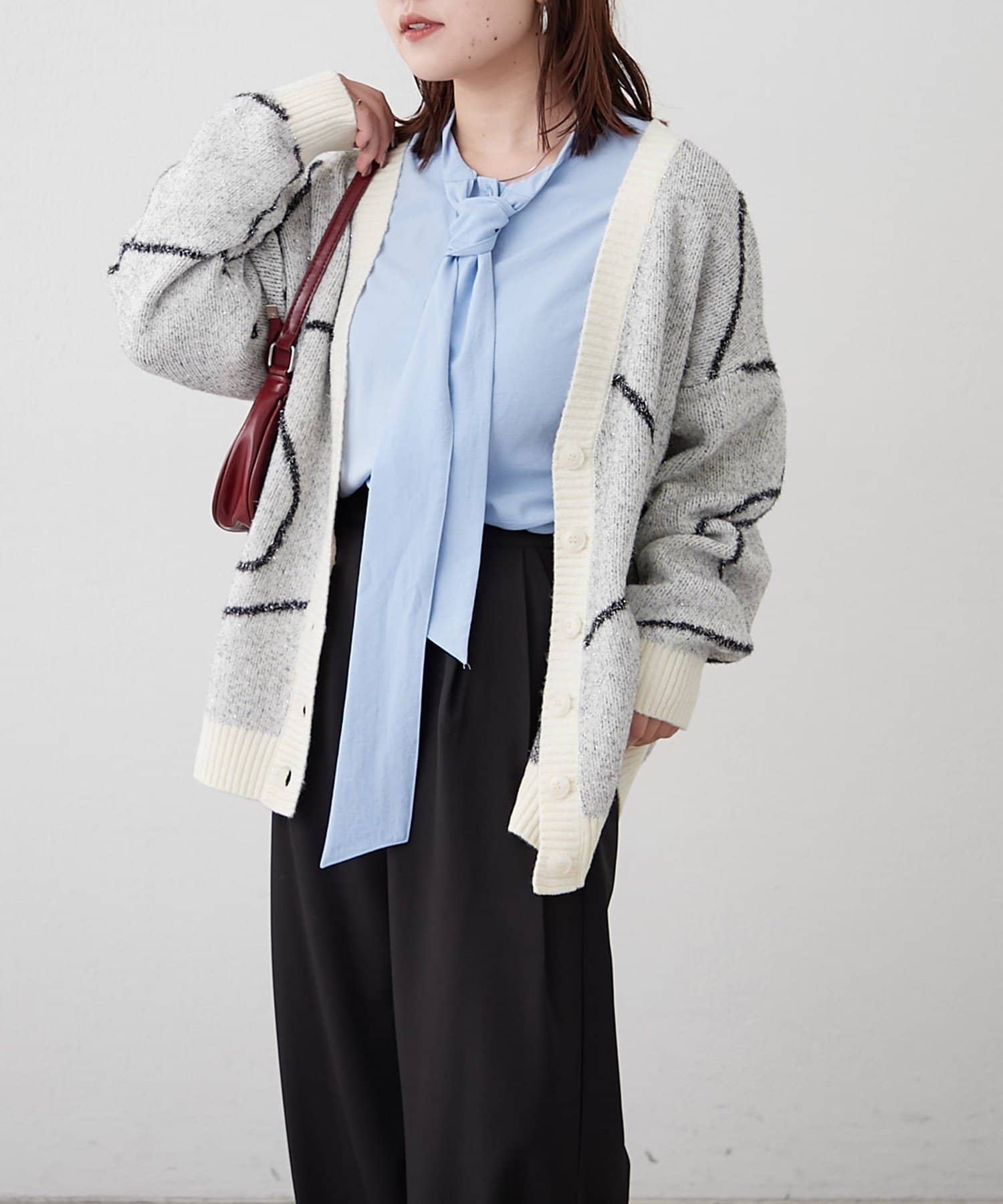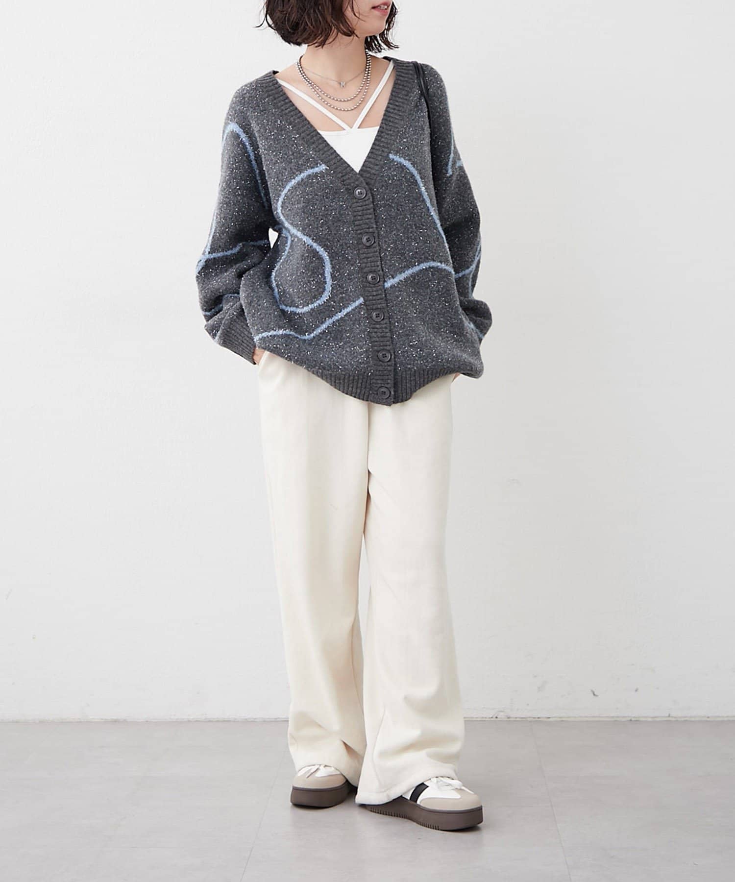 ・ラメ素材がさりげなくきらめく♪ウェーブライン柄がおしゃれなVネックカーディガン