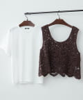 ・夏にもぴったりなかぎ針ベストと白Tシャツの2枚セットアイテム。