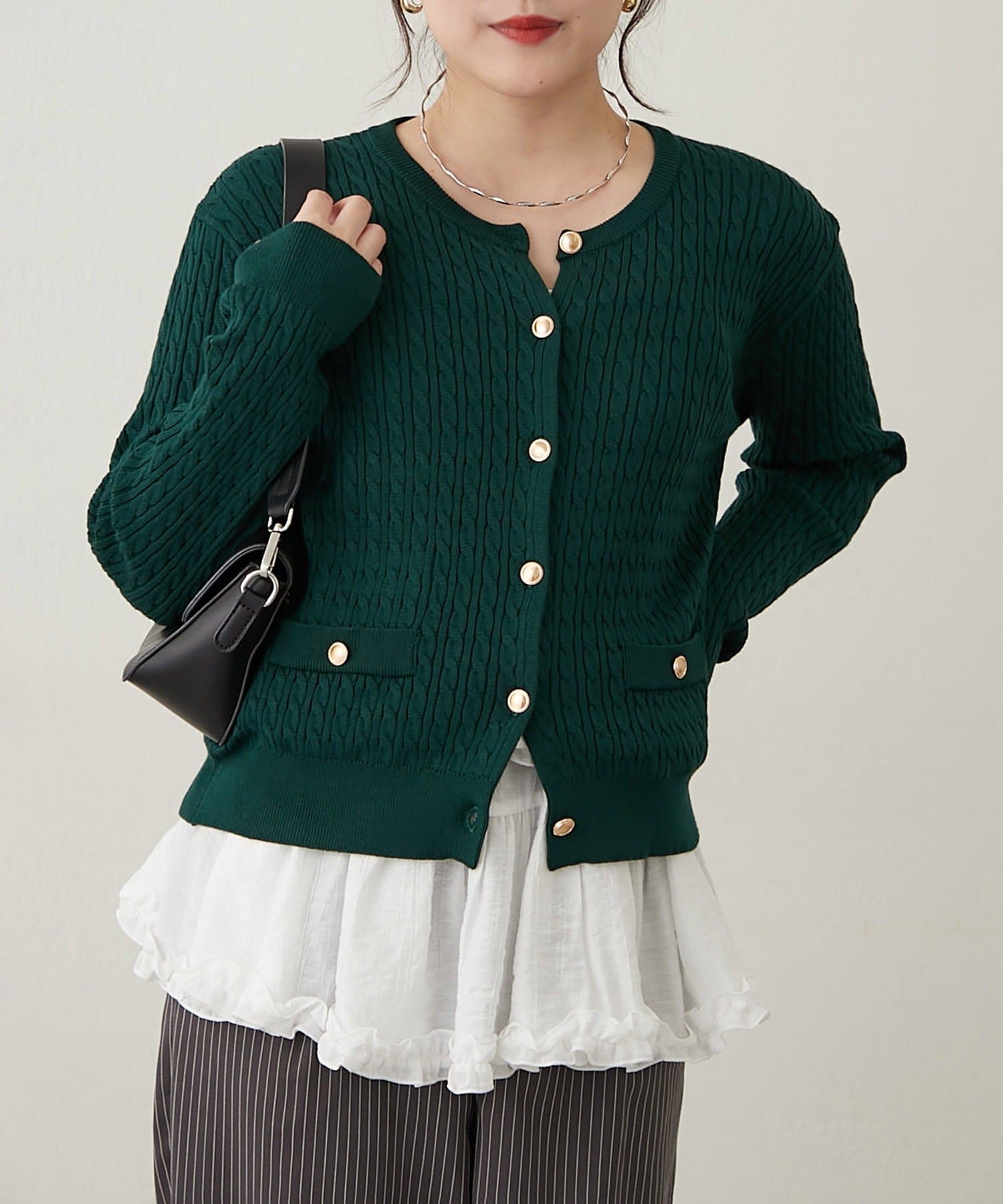 7色展開!カラバリ豊富!ケーブル金釦カーディガン