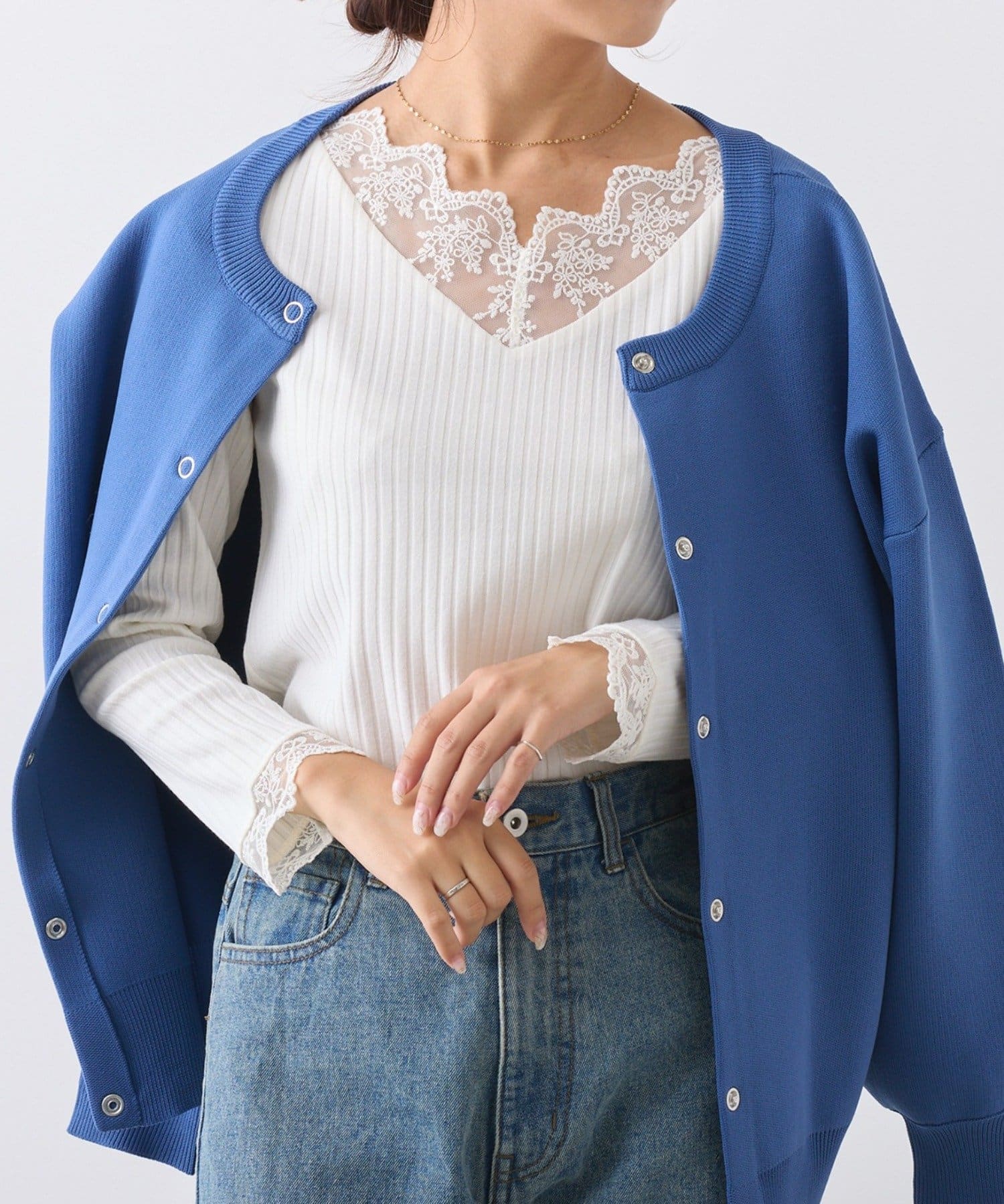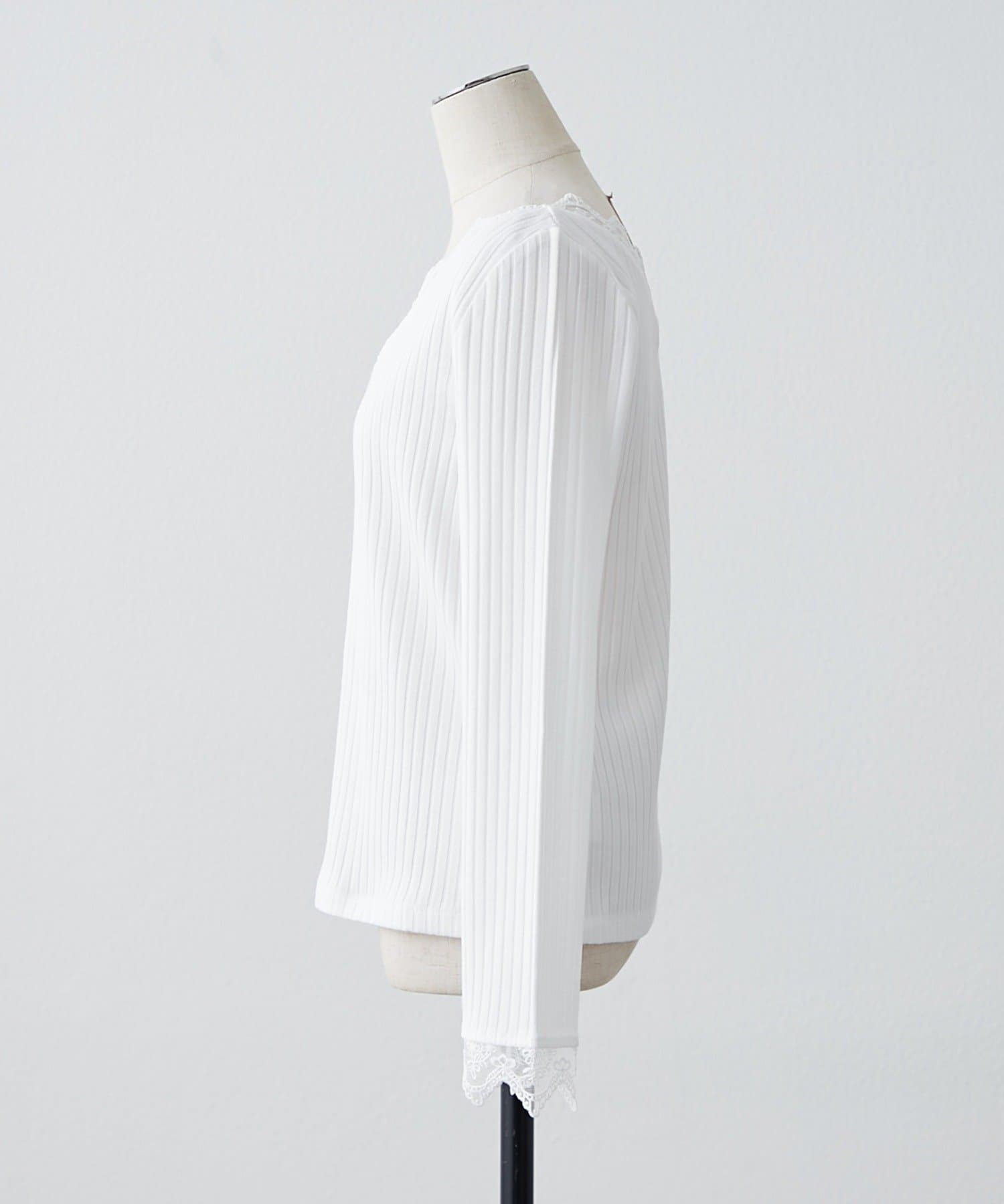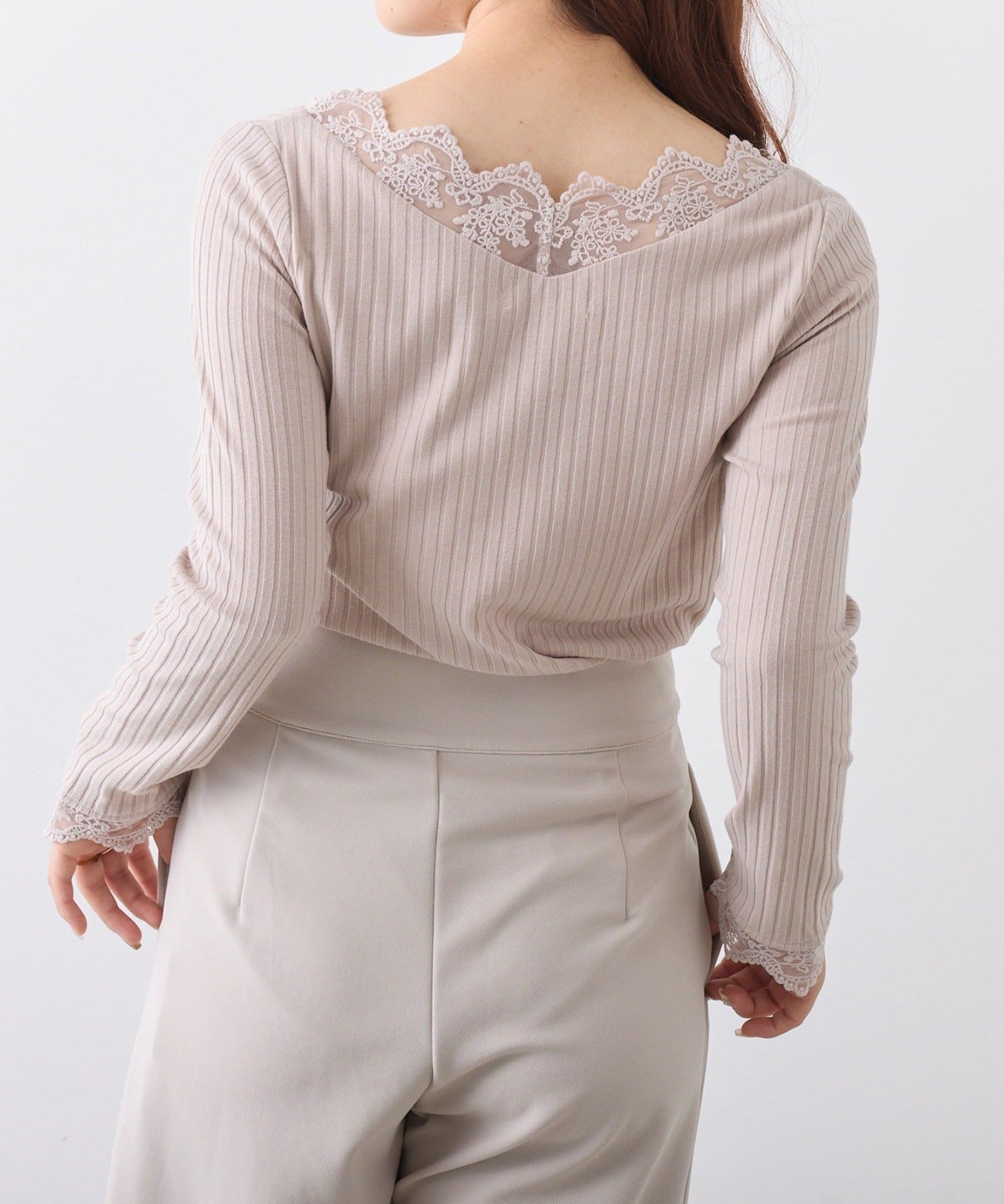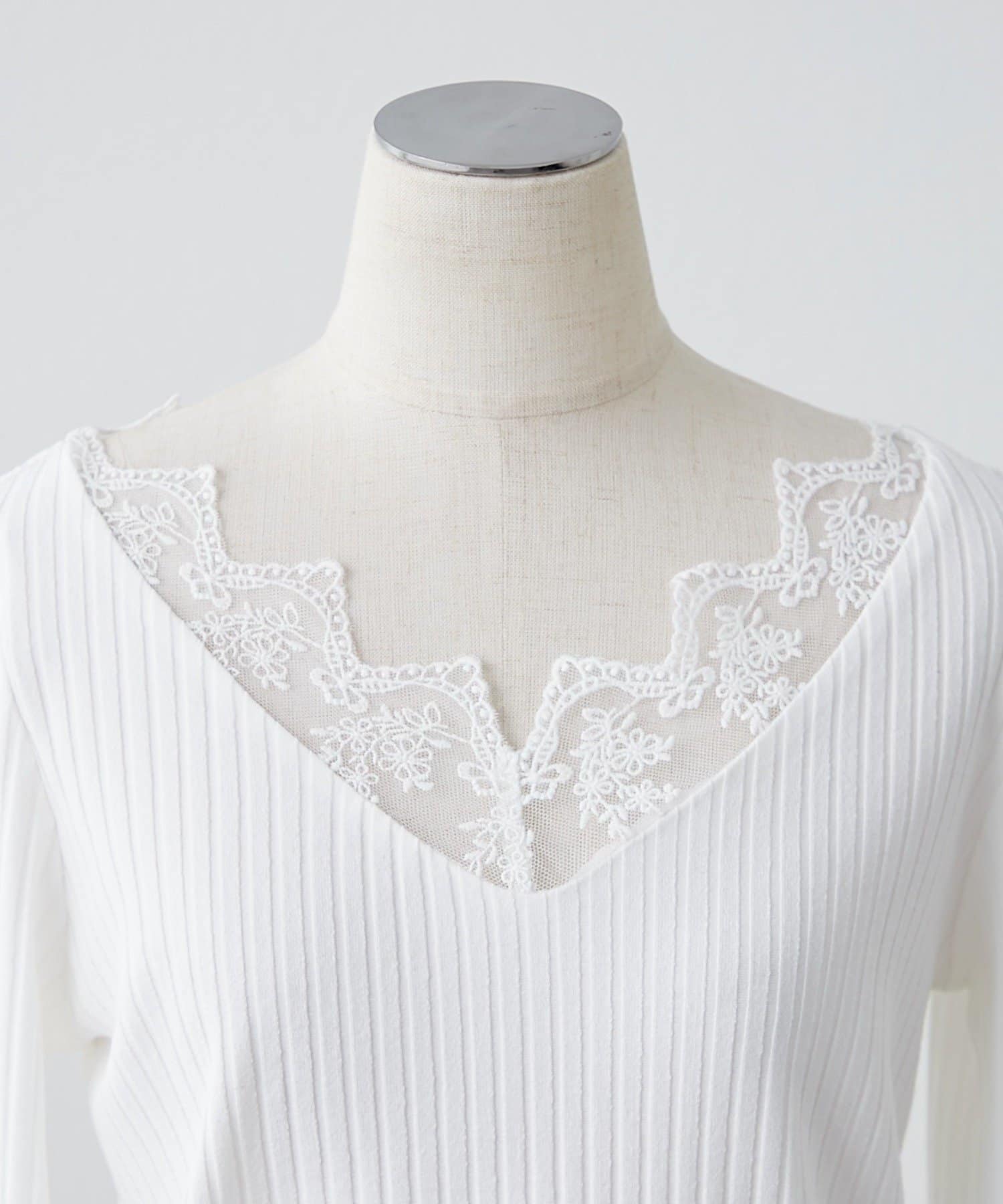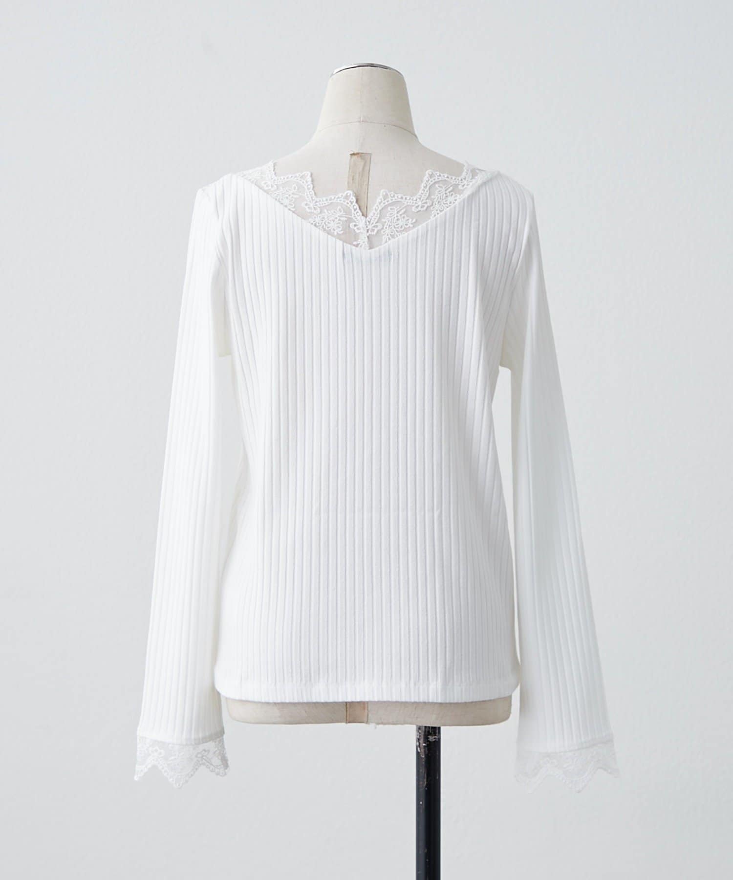 ・上品なレース使いが魅力の長袖プルオーバー。Vネックがデコルテを美しく見せ、女性らしさを引き立てます。
