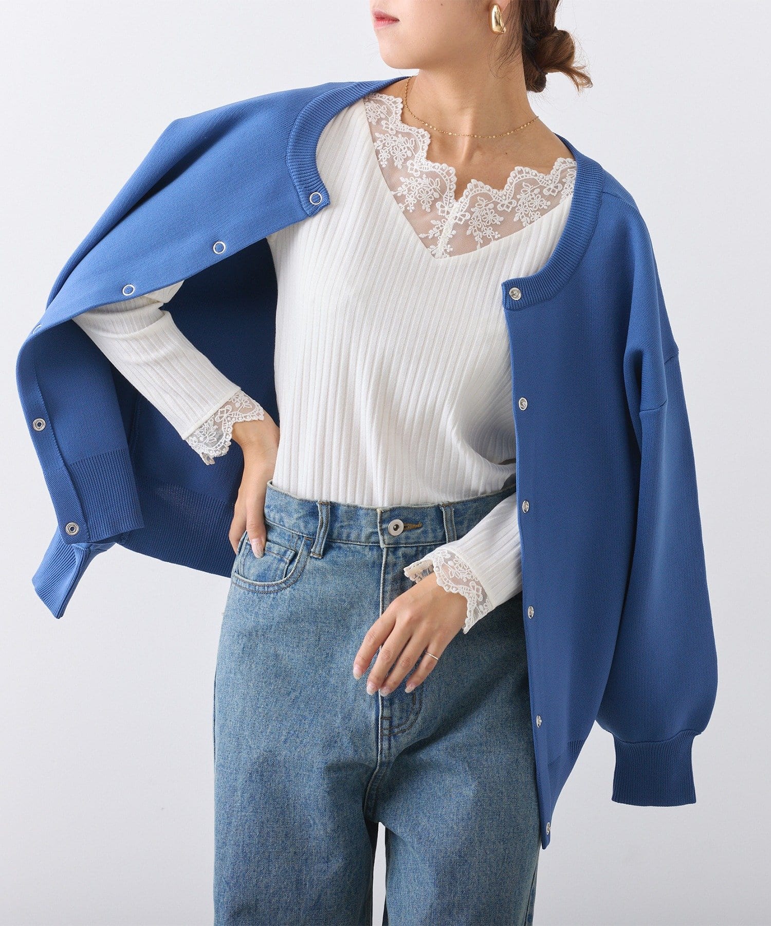 ・カジュアルにもきれいめにも着こなせる万能アイテム。オフィスから普段使いまで、幅広いシーンで活躍します。
