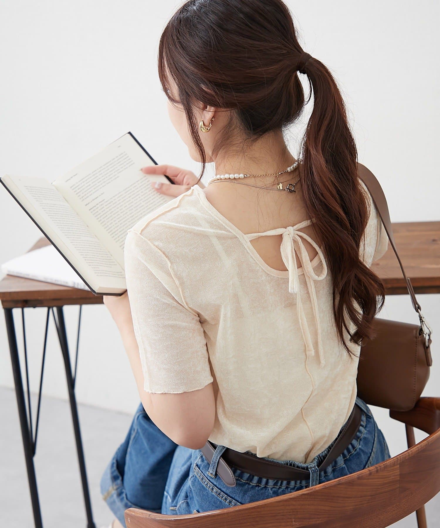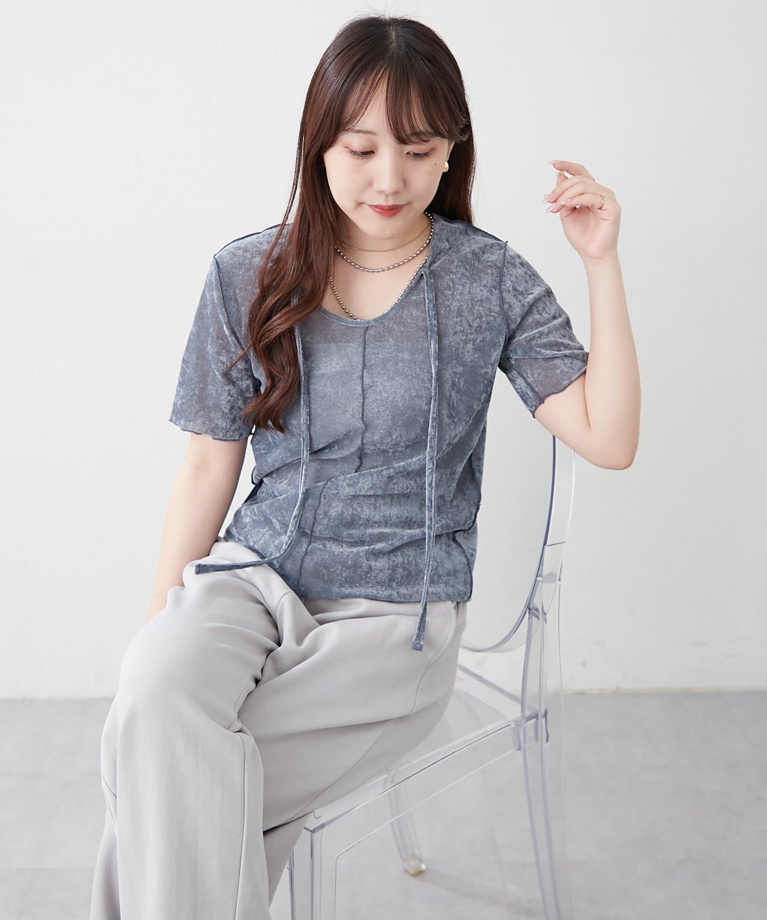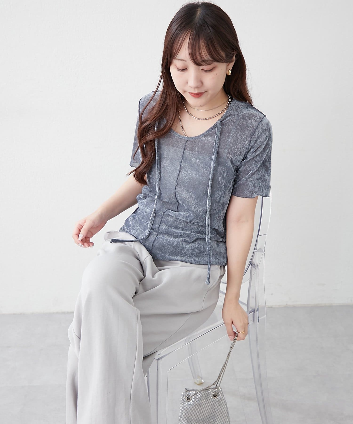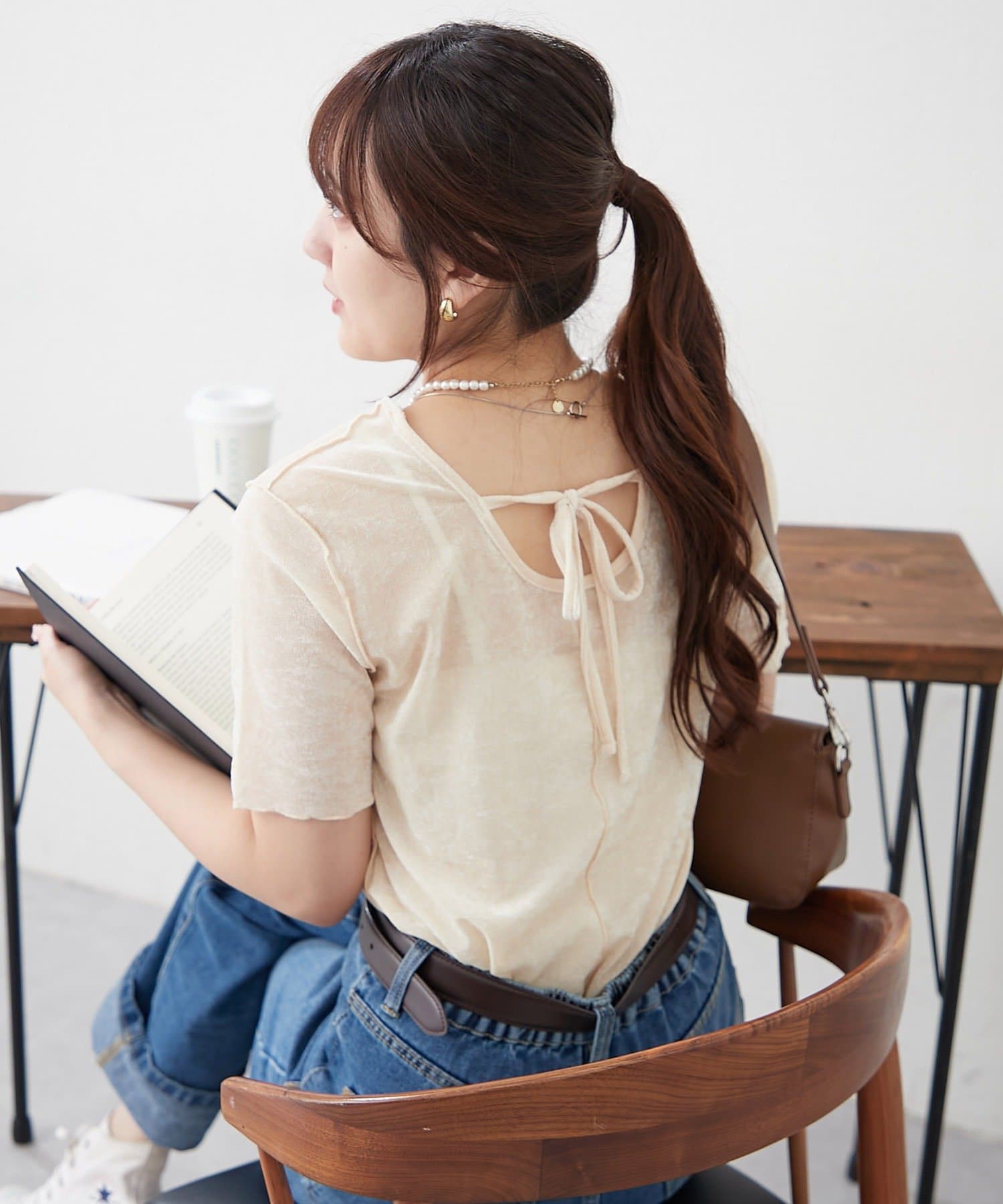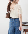 ・首元の紐はリボン結びをしてガーリーに、垂らして着て大人コーデに♪