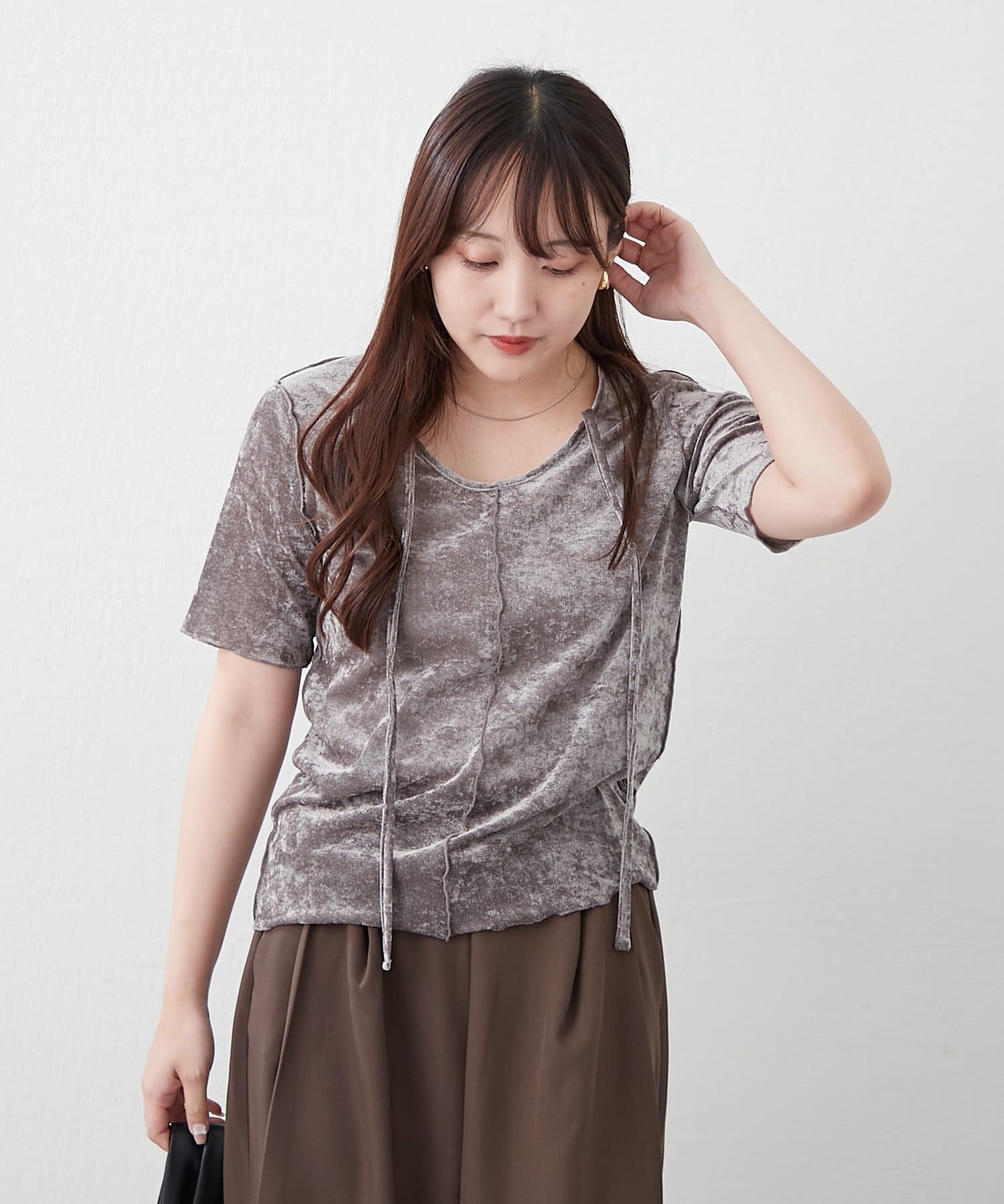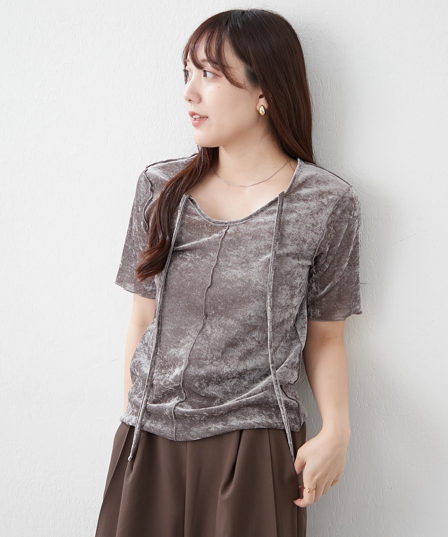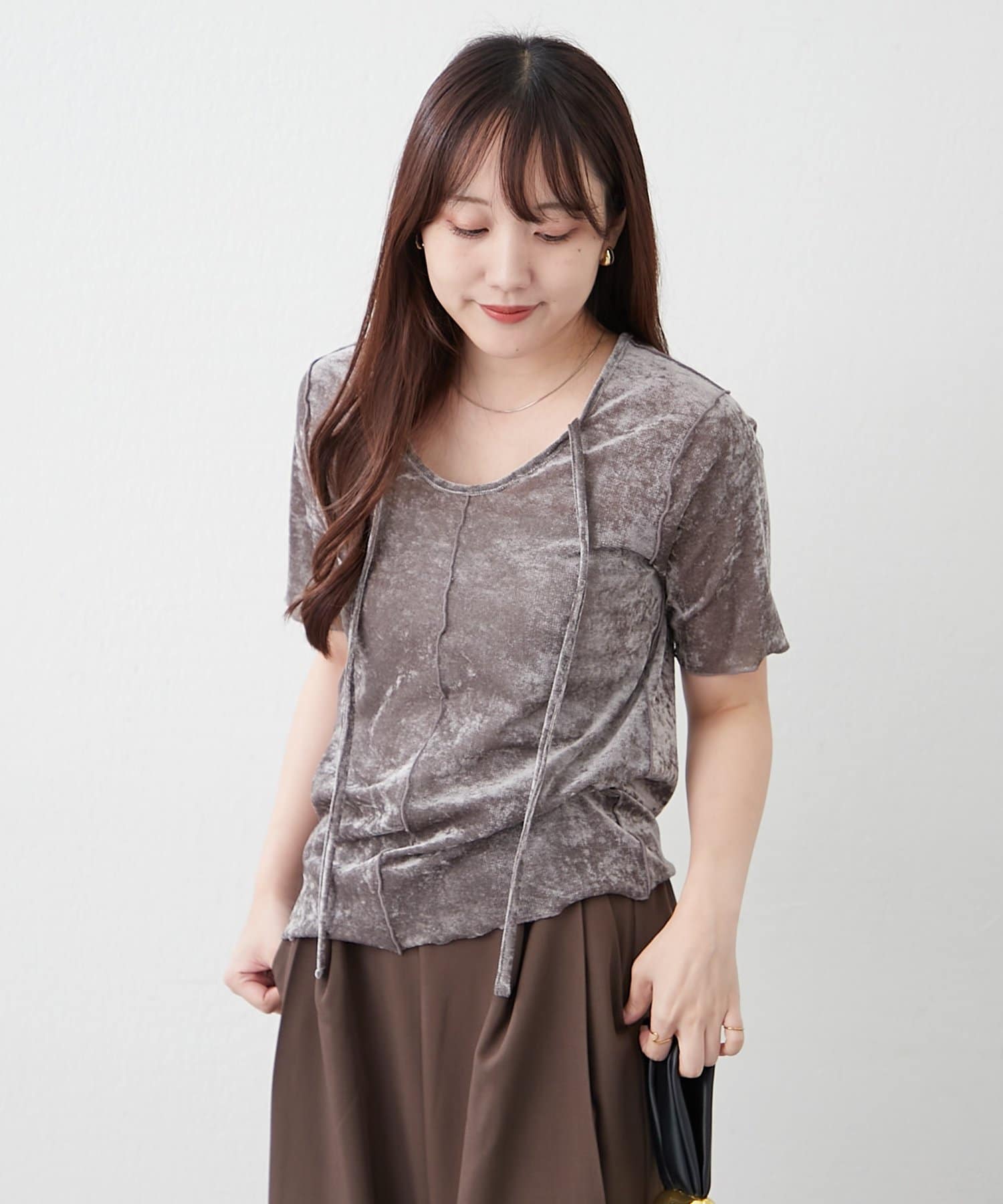 ・首元の紐はリボン結びをしてガーリーに、垂らして着て大人コーデに♪