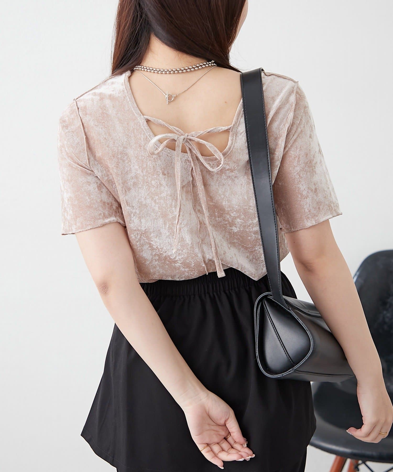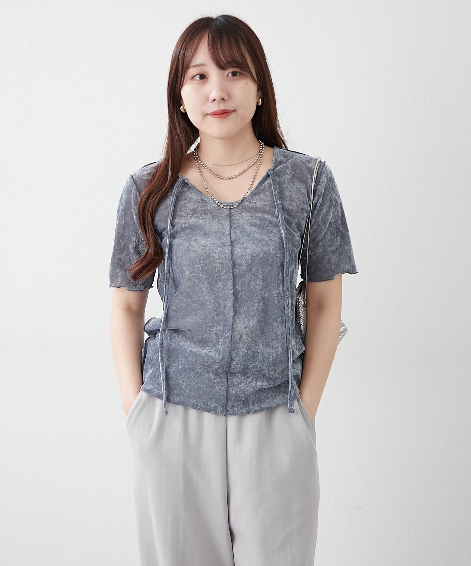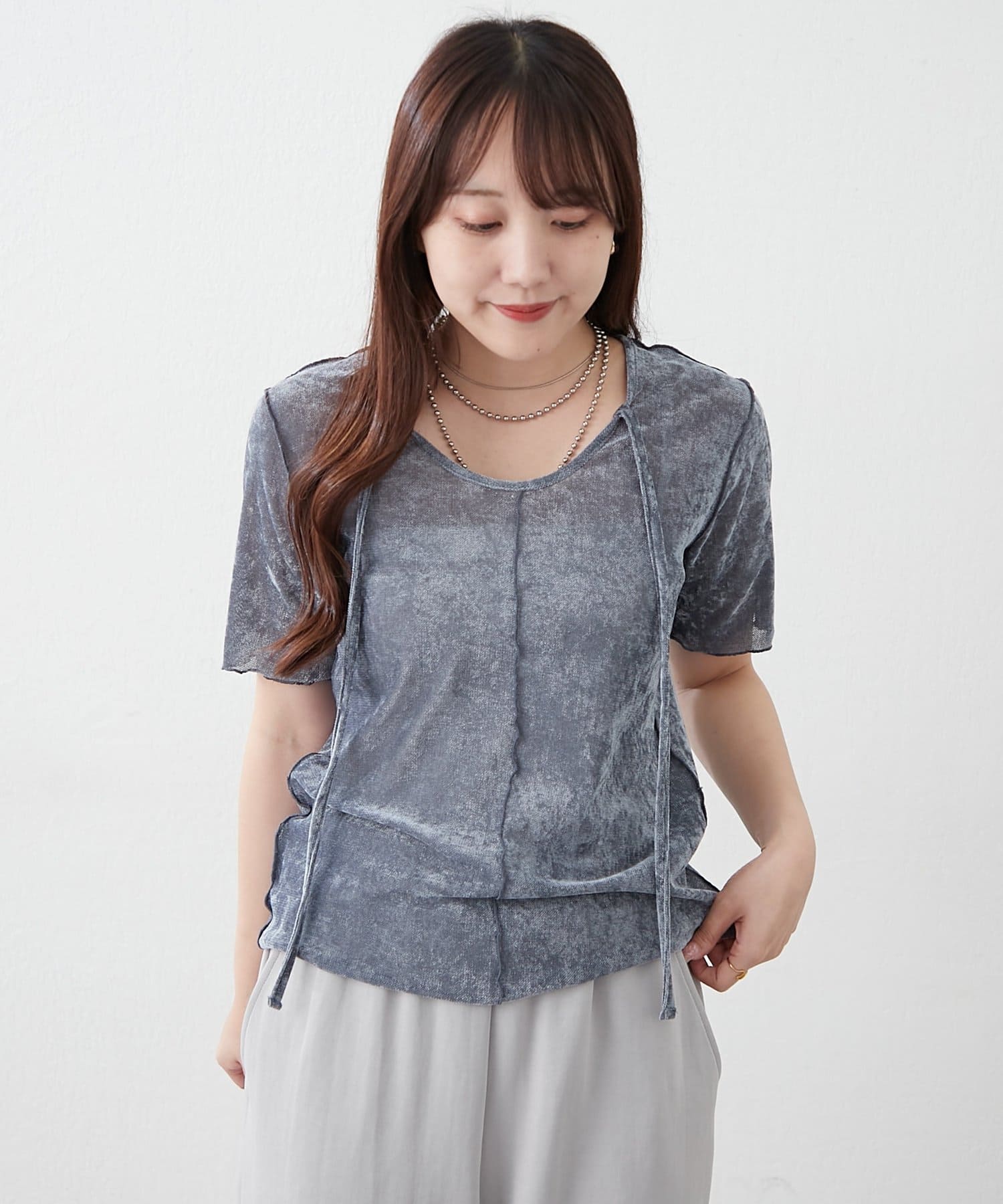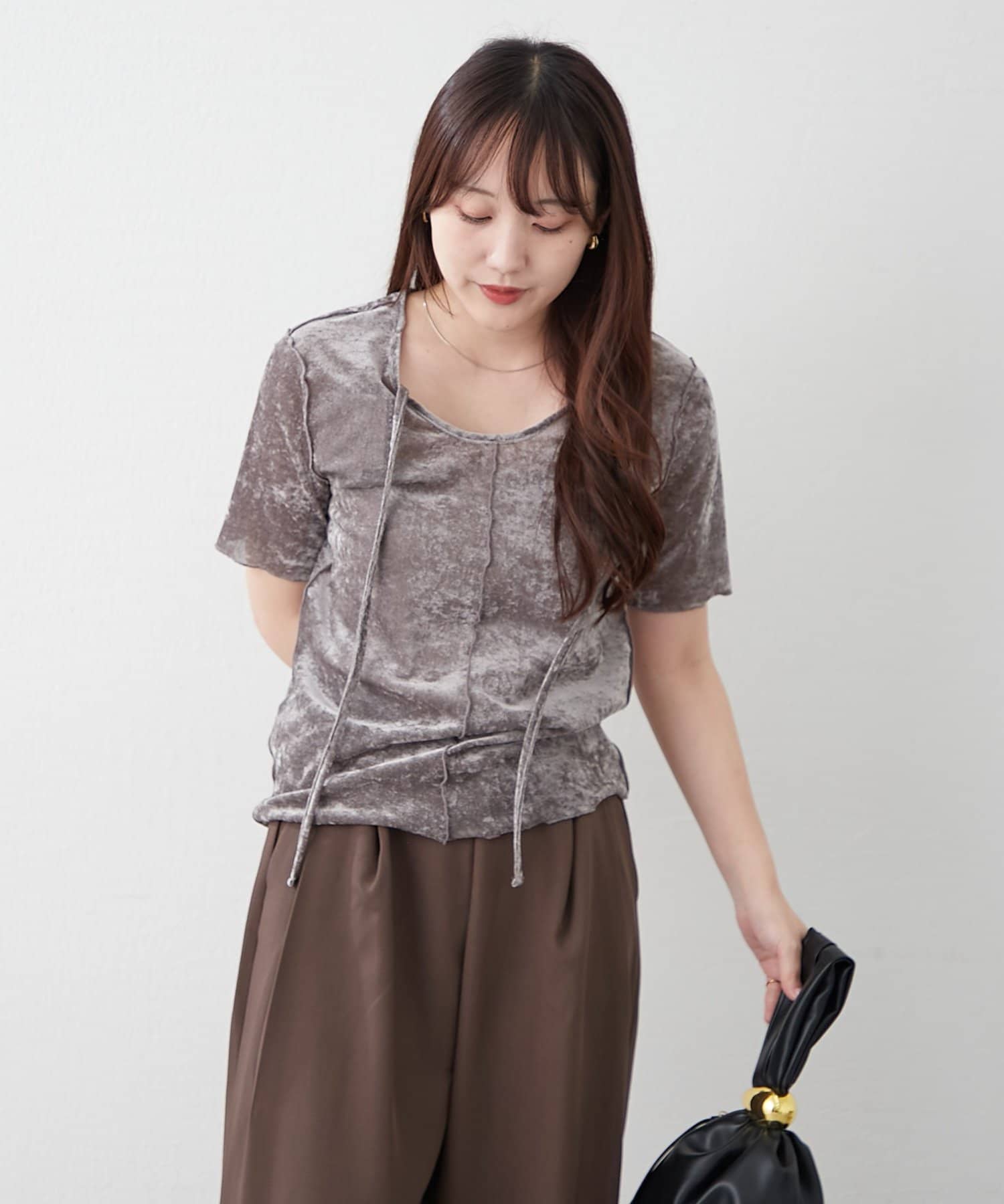 ・首元の紐はリボン結びをしてガーリーに、垂らして着て大人コーデに♪