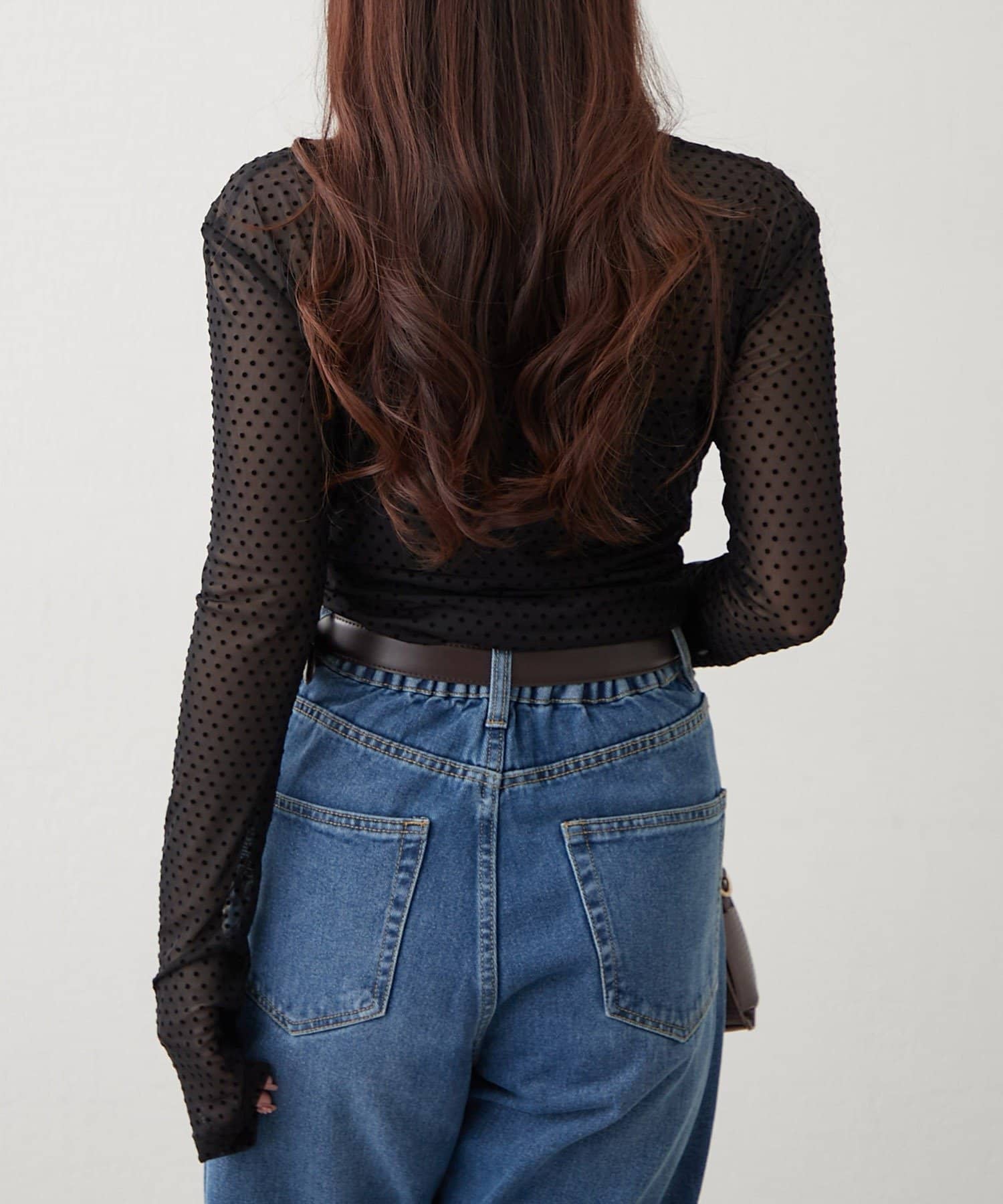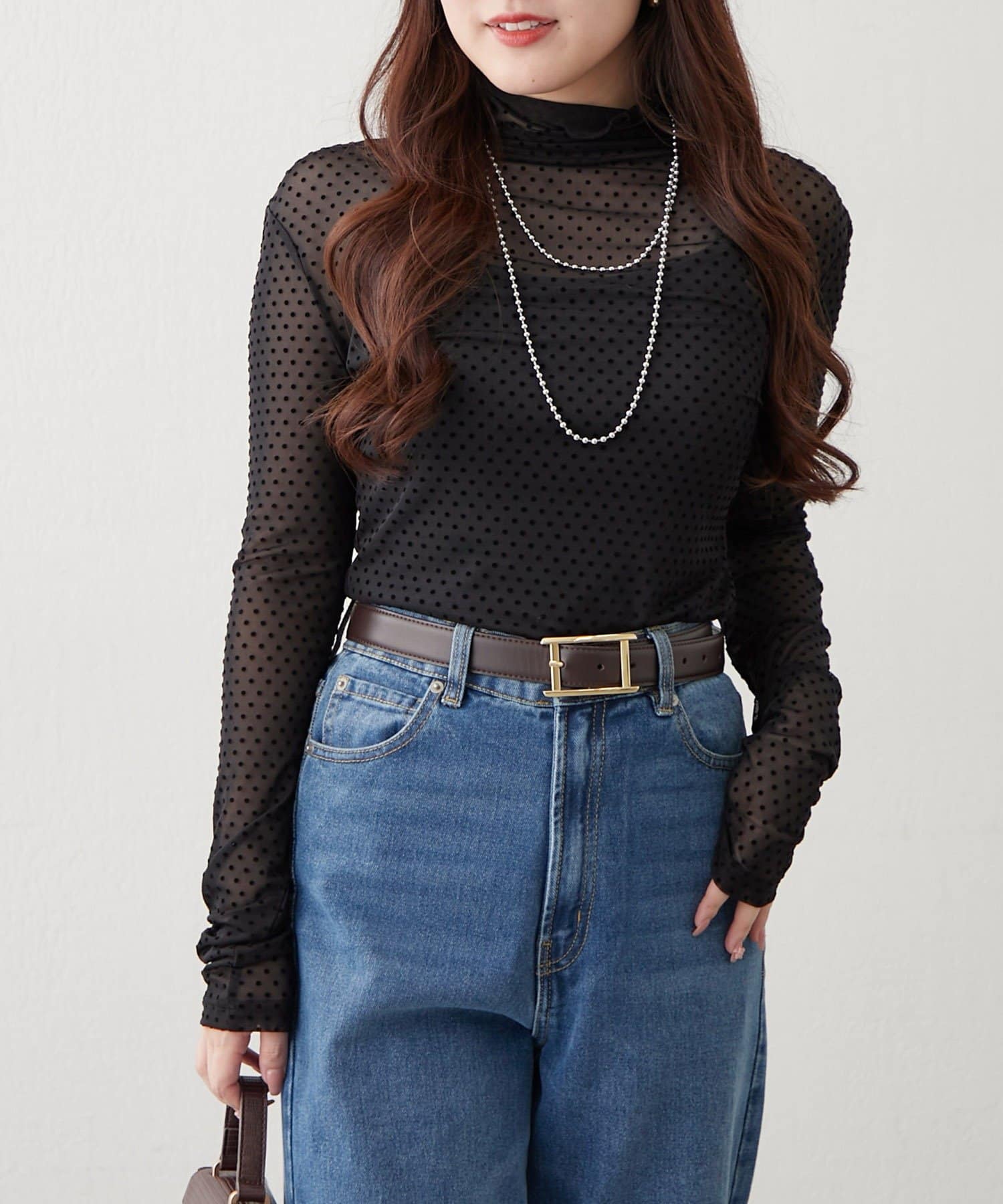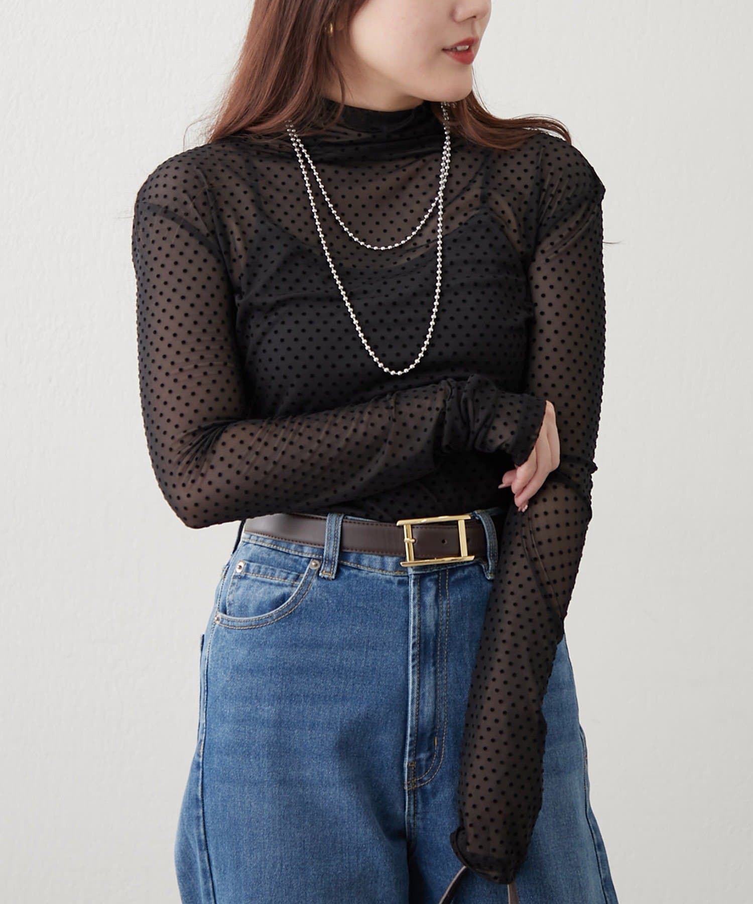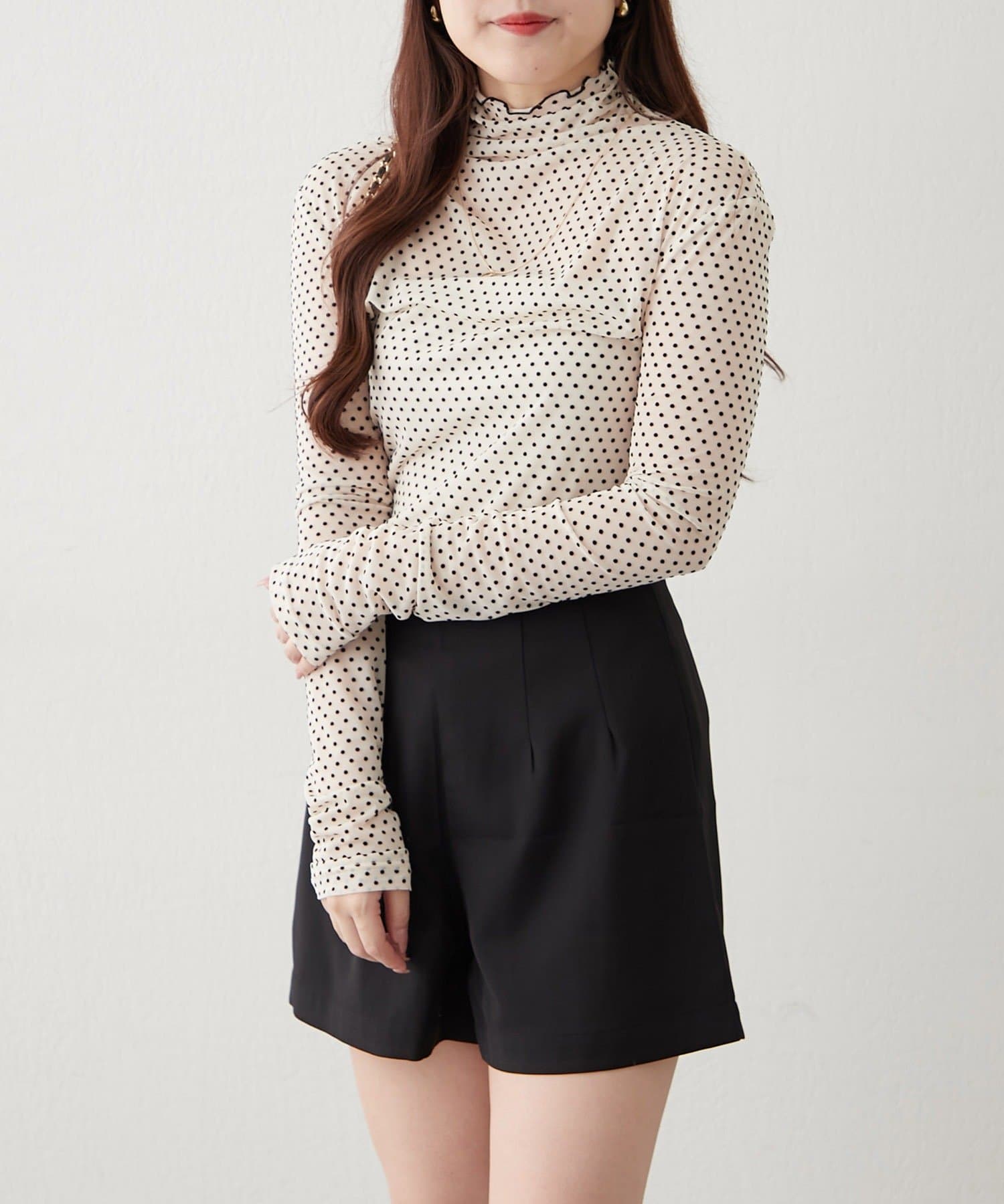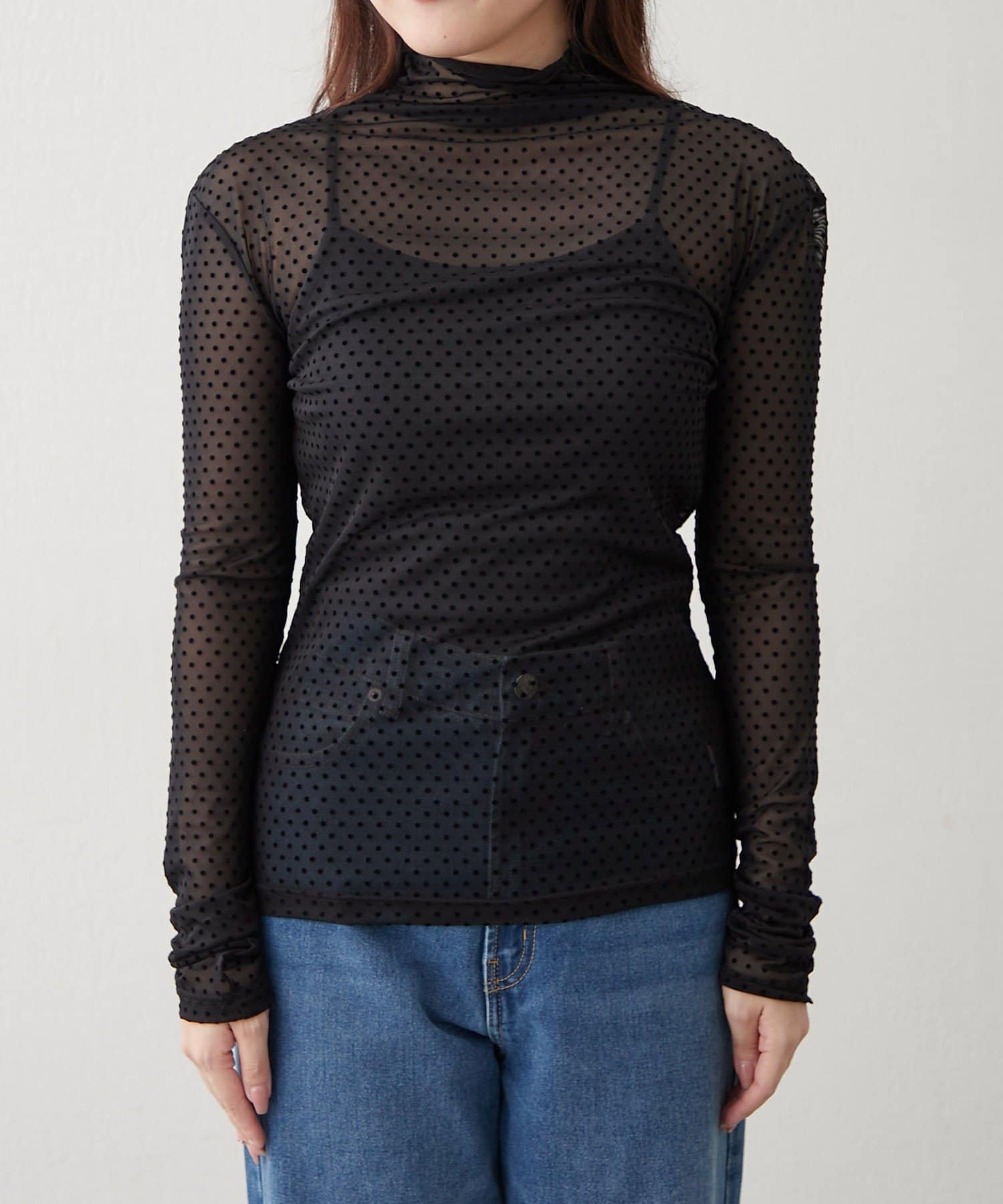 TOP > Remind me and forever > レディース > トップス > Tシャツ/カットソー > ドットチュールハイネックプルオーバー
