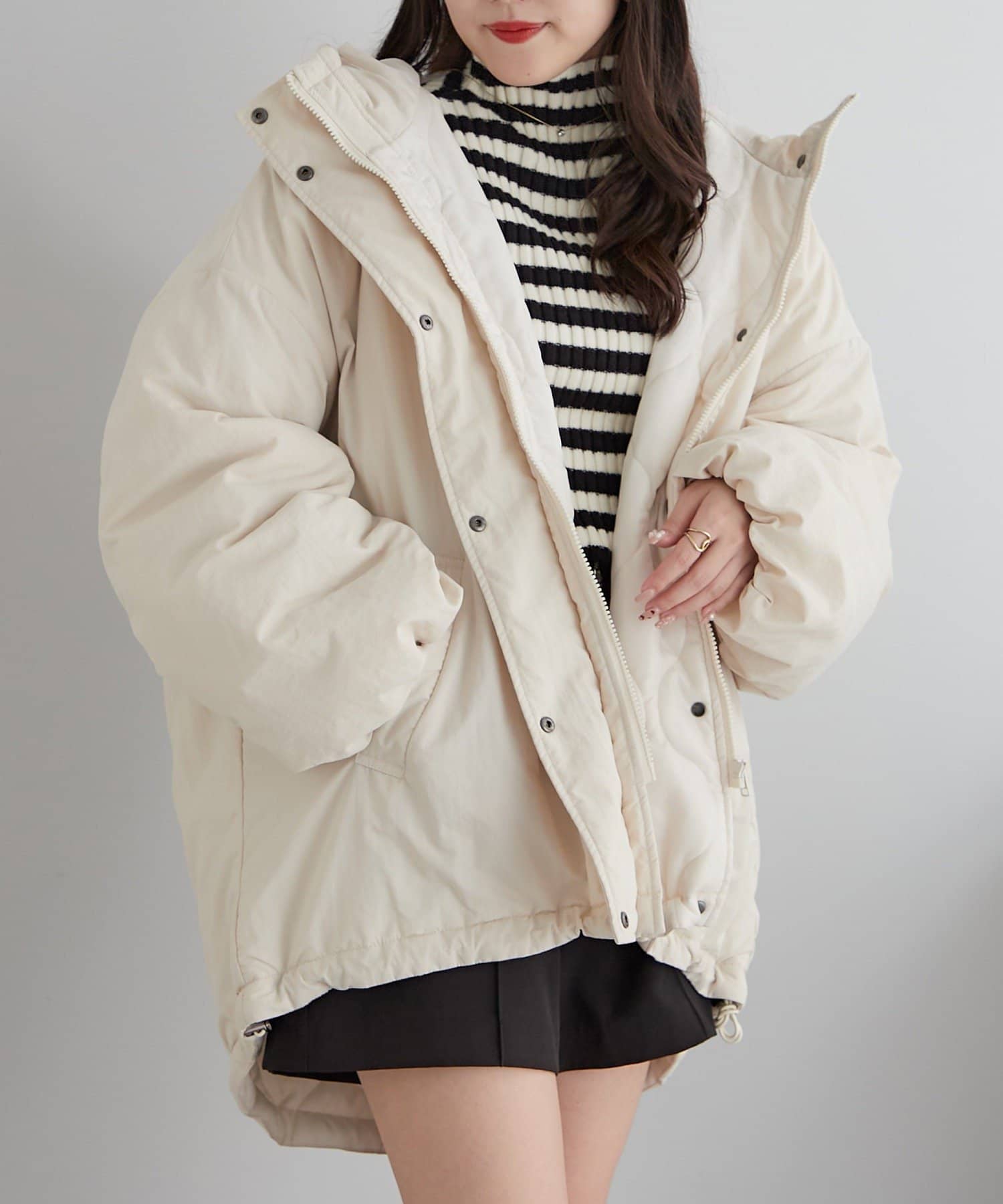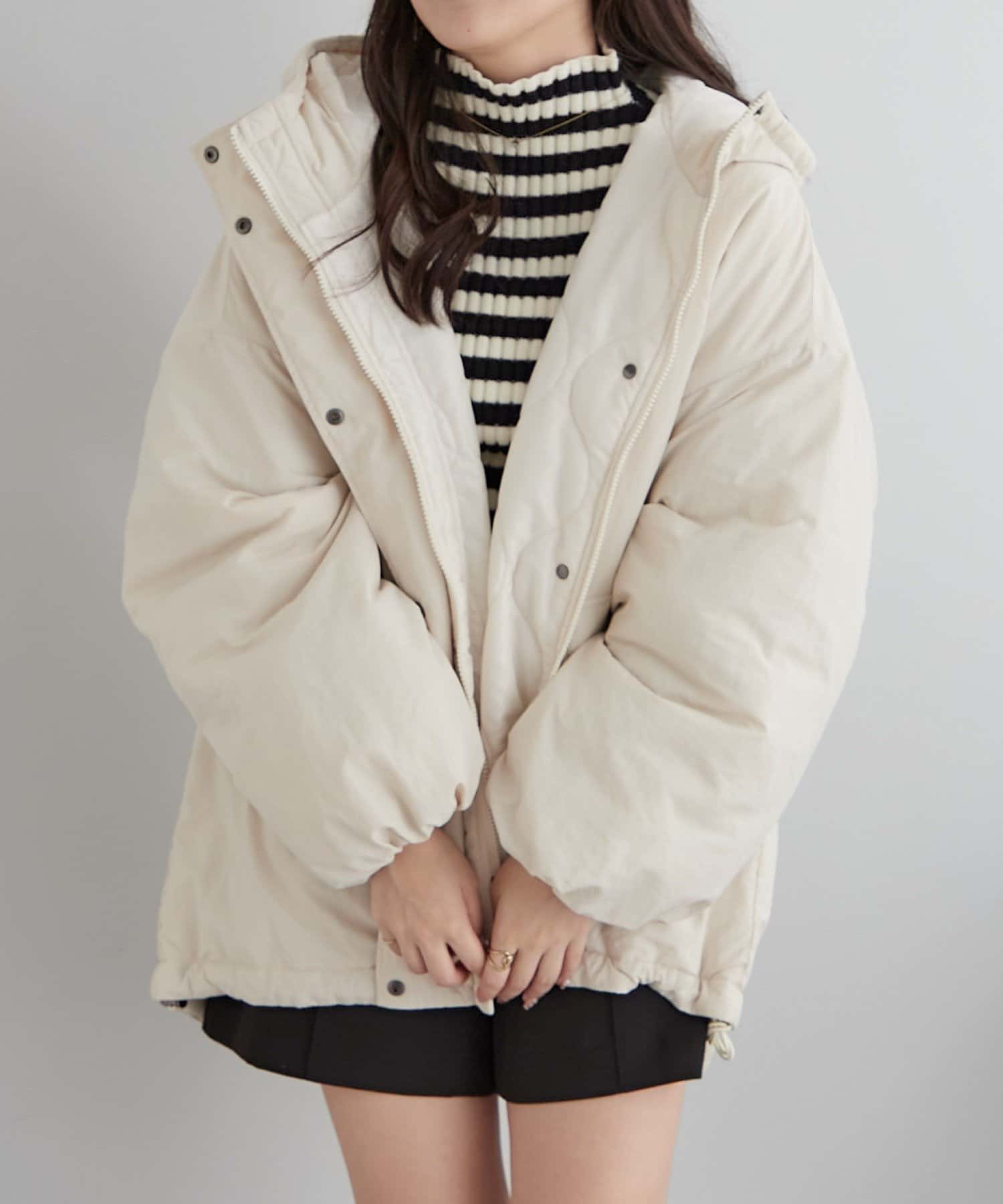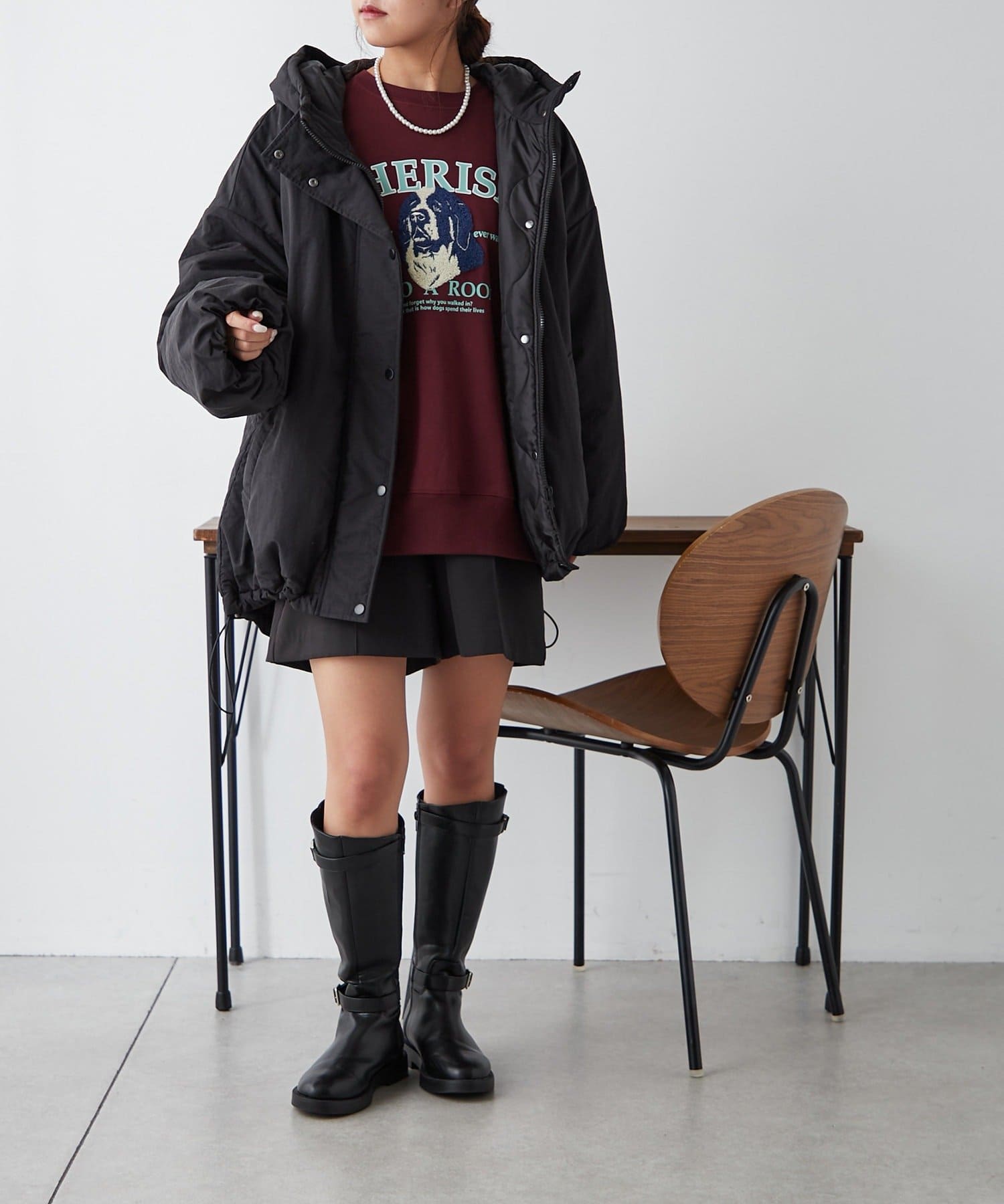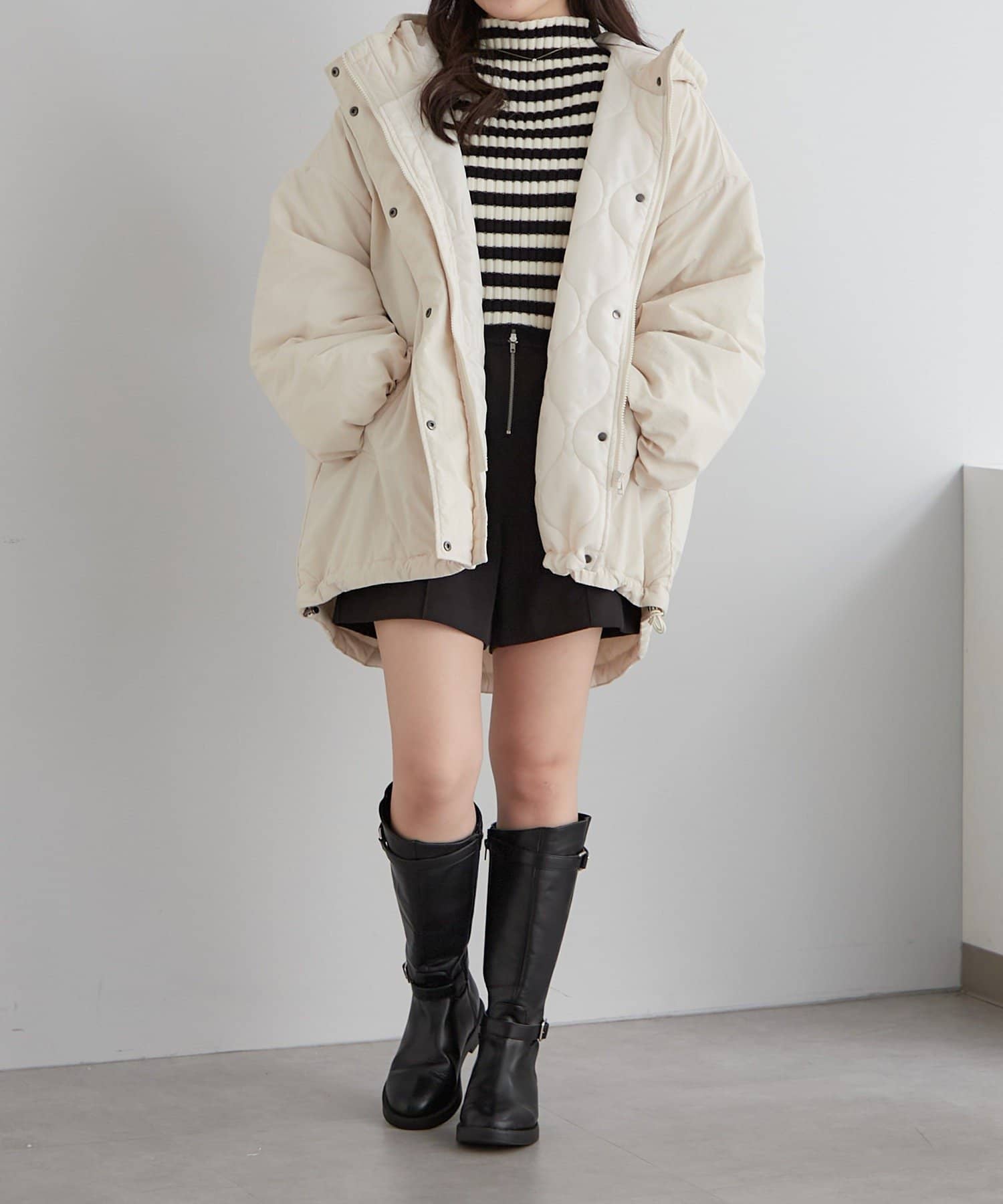 ・ボリューム感があるアウターなのでミニボトム合わせもおすすめな一枚。