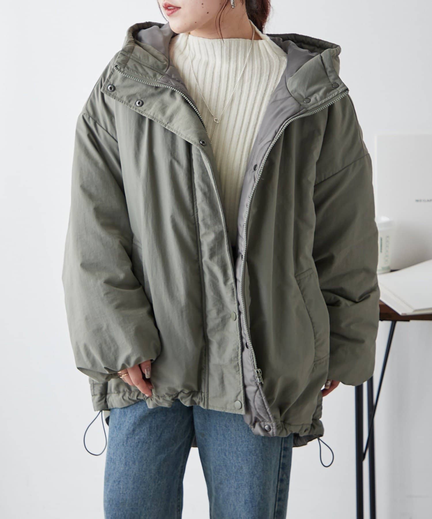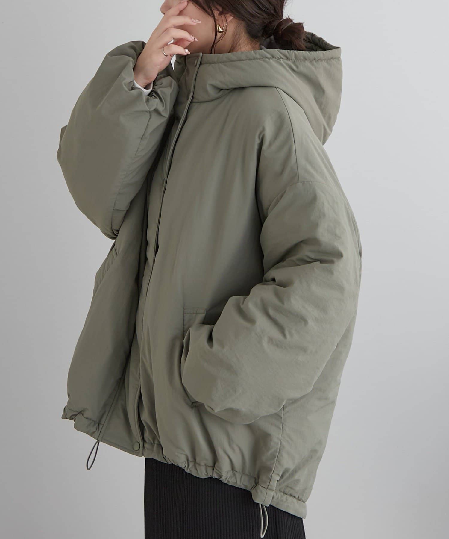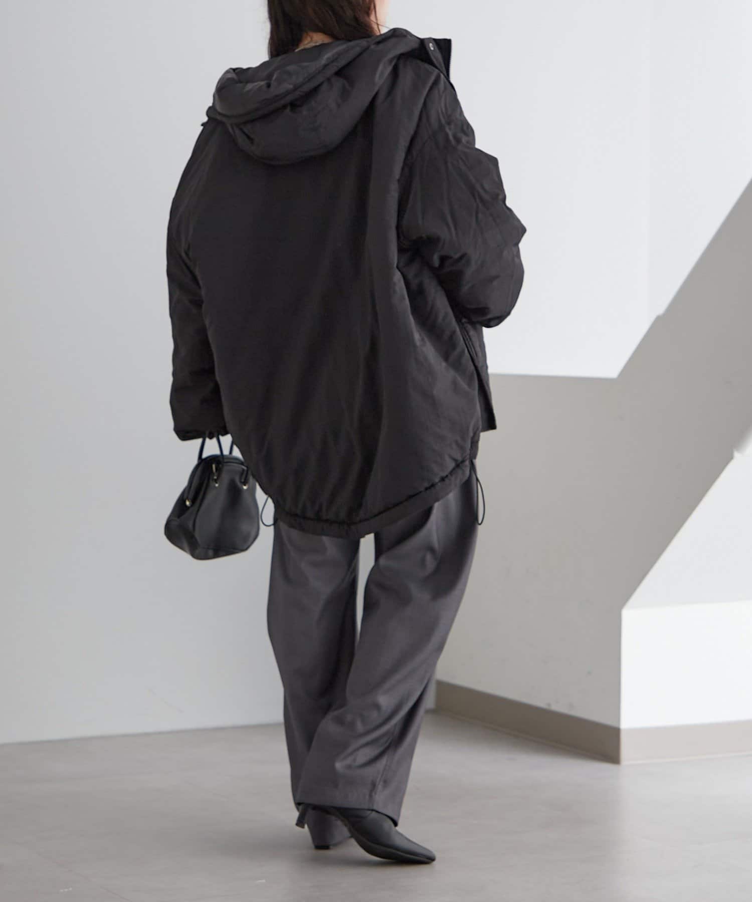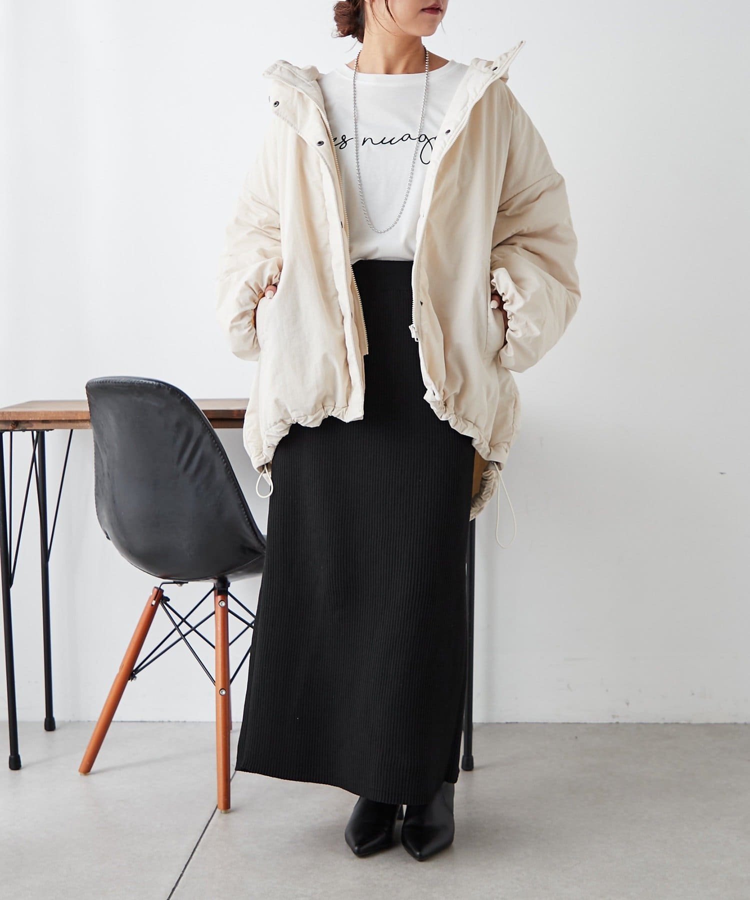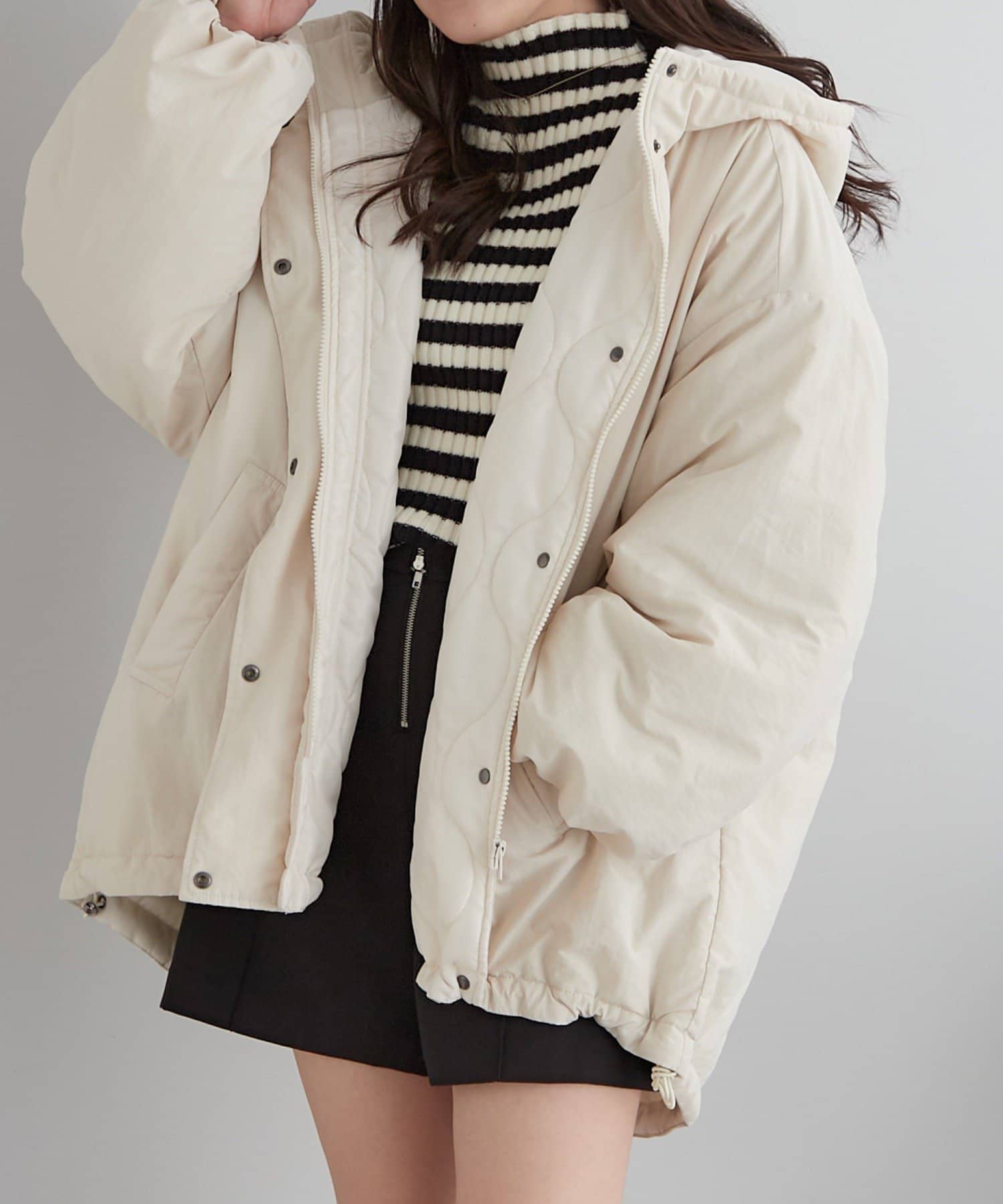 ・ボリューム感があるアウターなのでミニボトム合わせもおすすめな一枚。