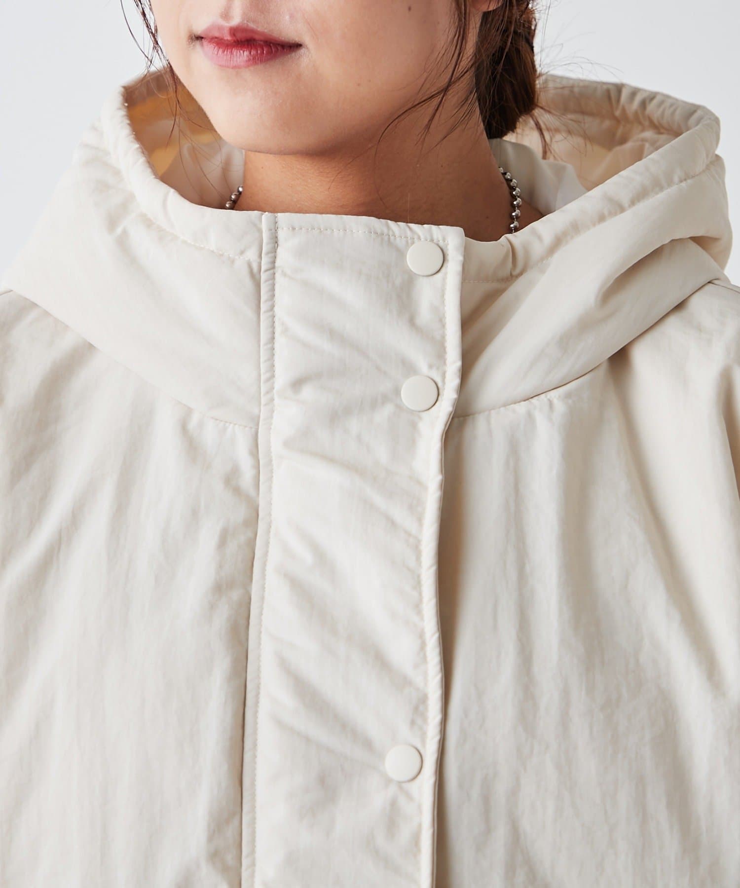 ただ、想像以上に薄い。アイボリーだけかもしれませんが、室内でも光に翳すとほんのり透けます。保温性もないです。そりゃ着ぶくれもしないです(膨れるほど中綿入ってないです)。
