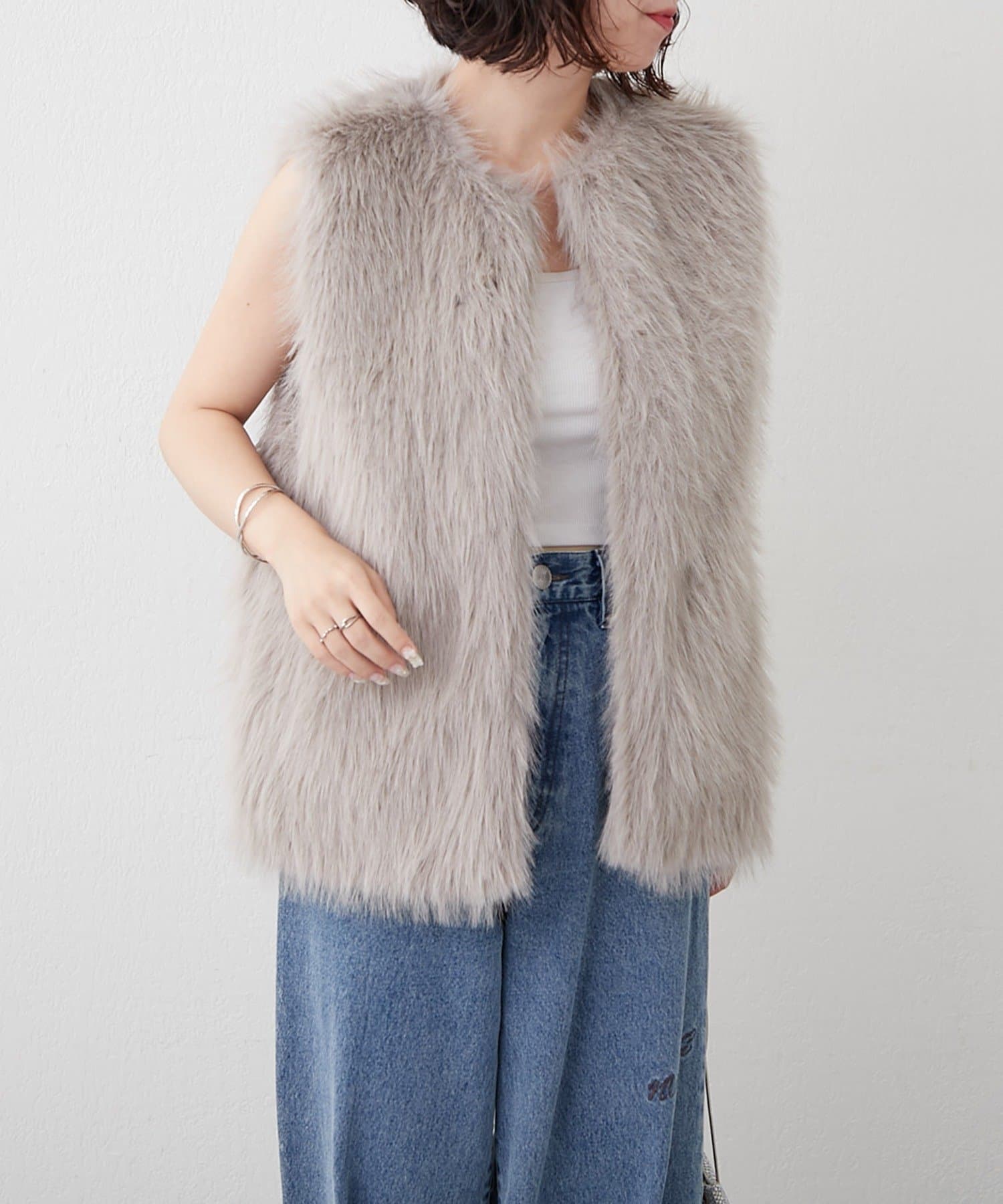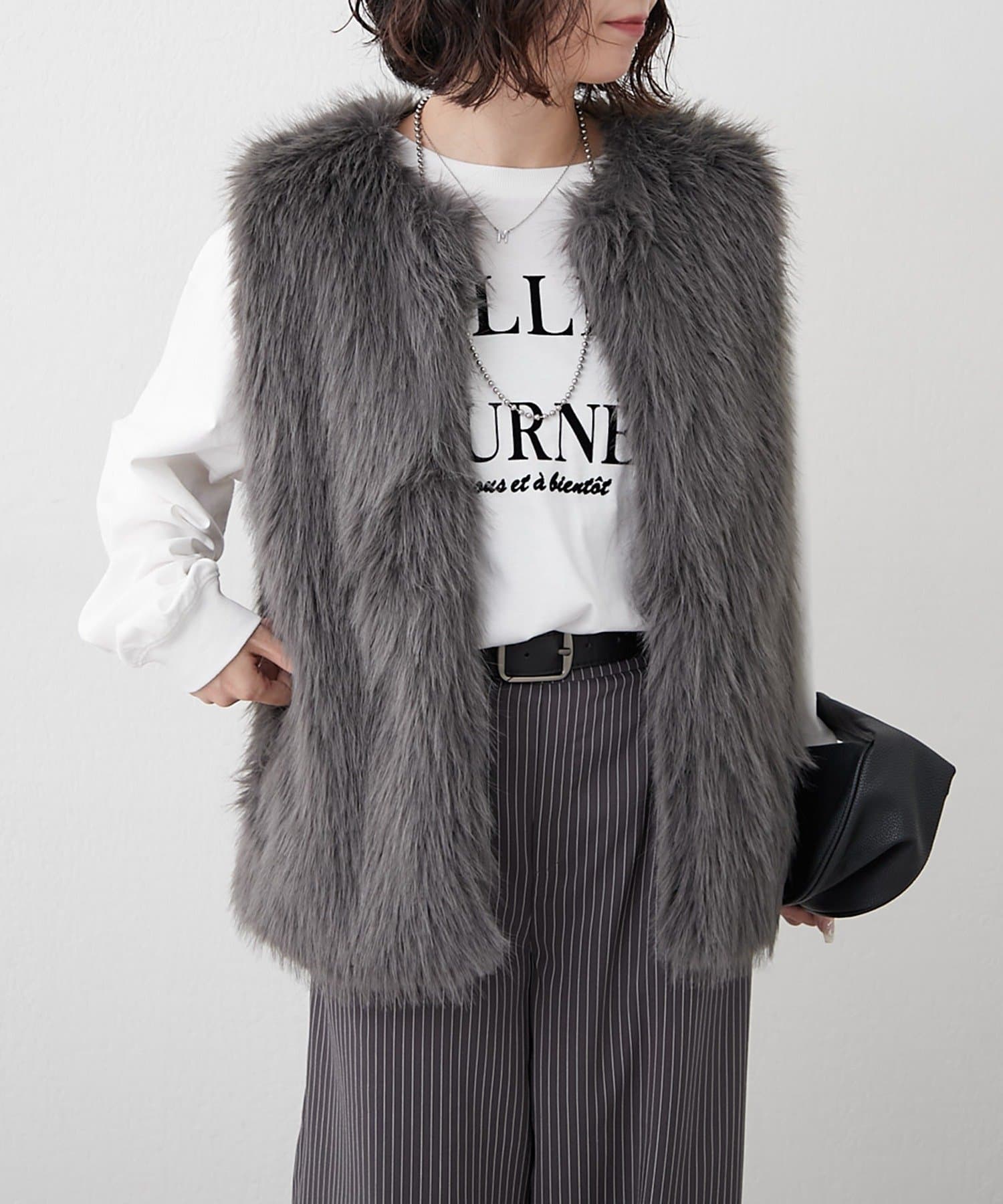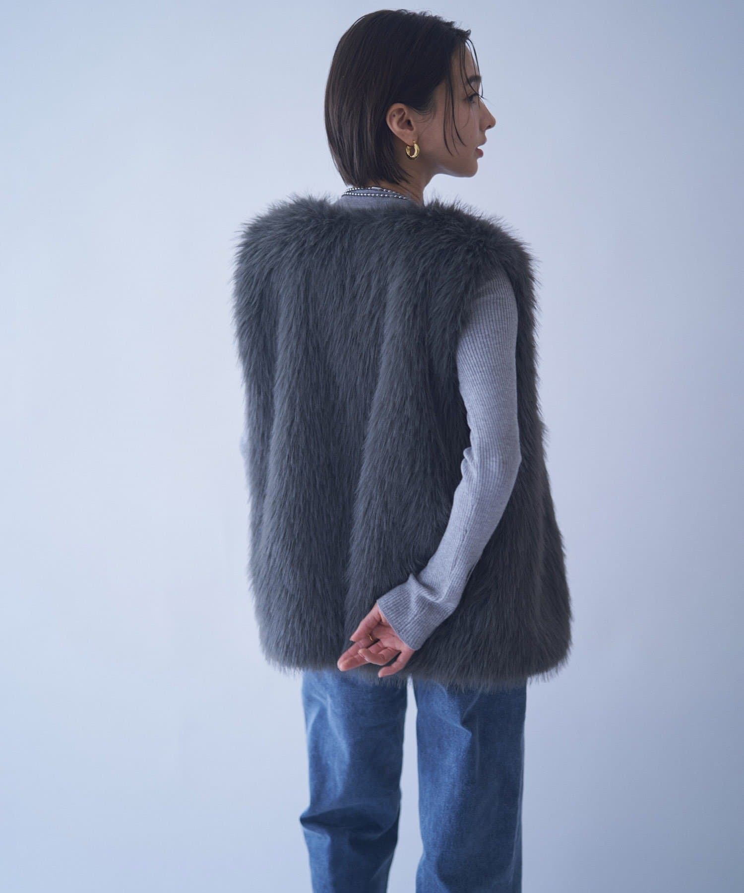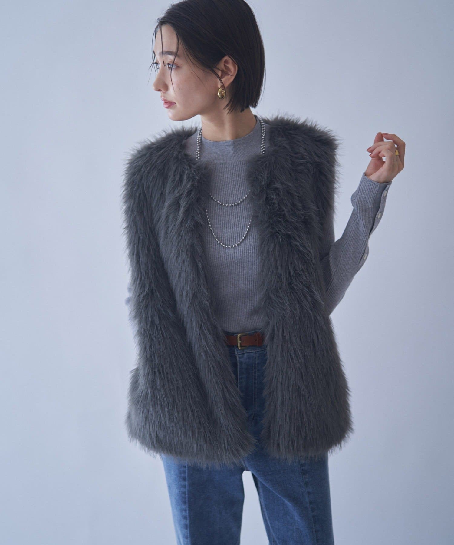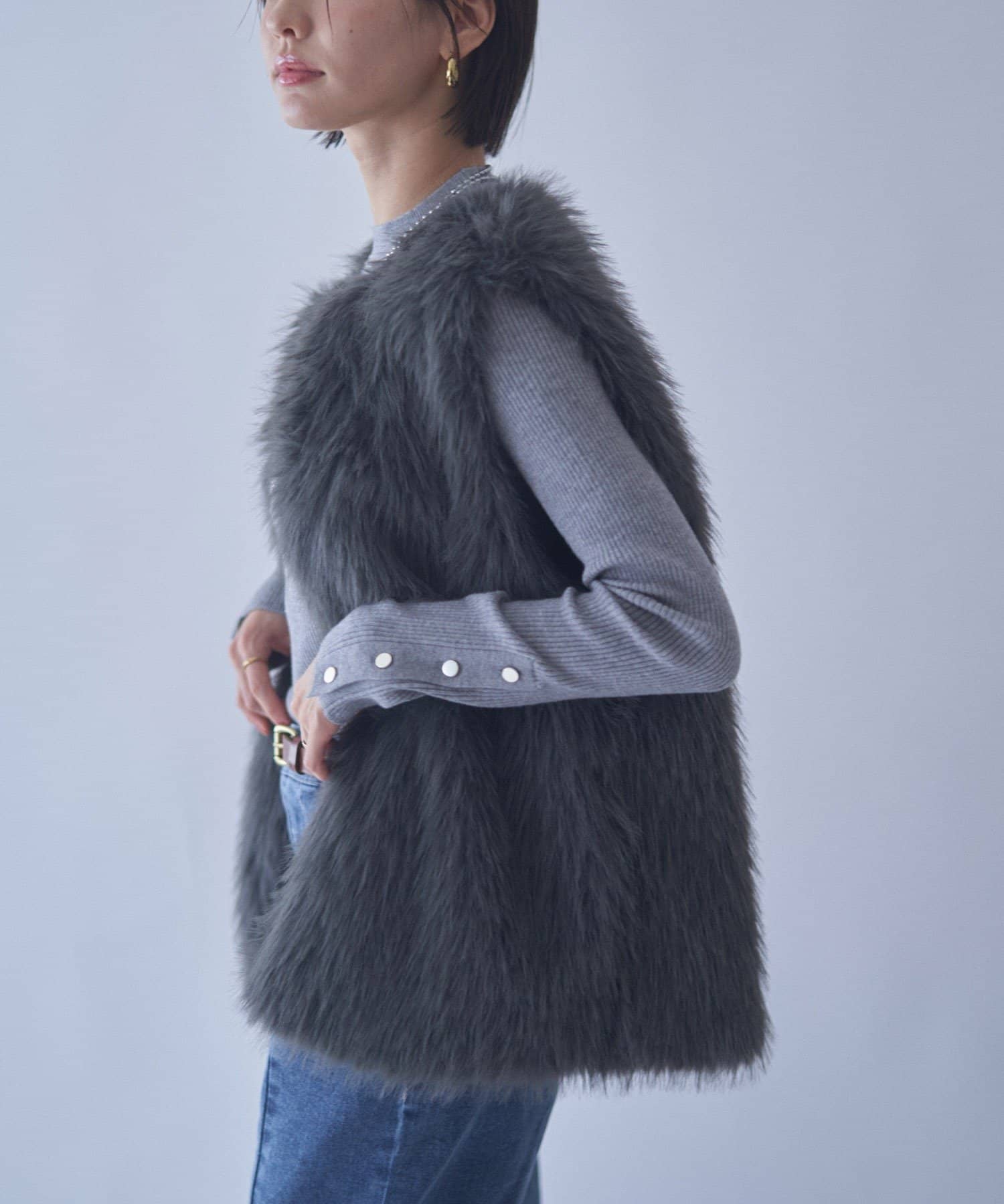 ・ ずっと触っていたくなるフェイクファーが暖かいベスト