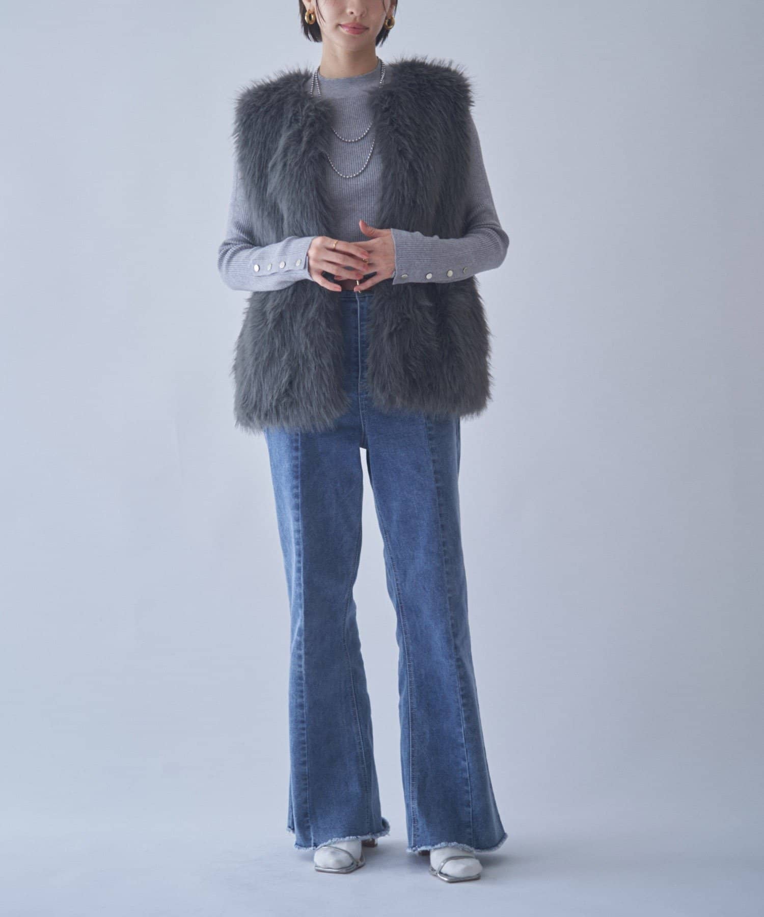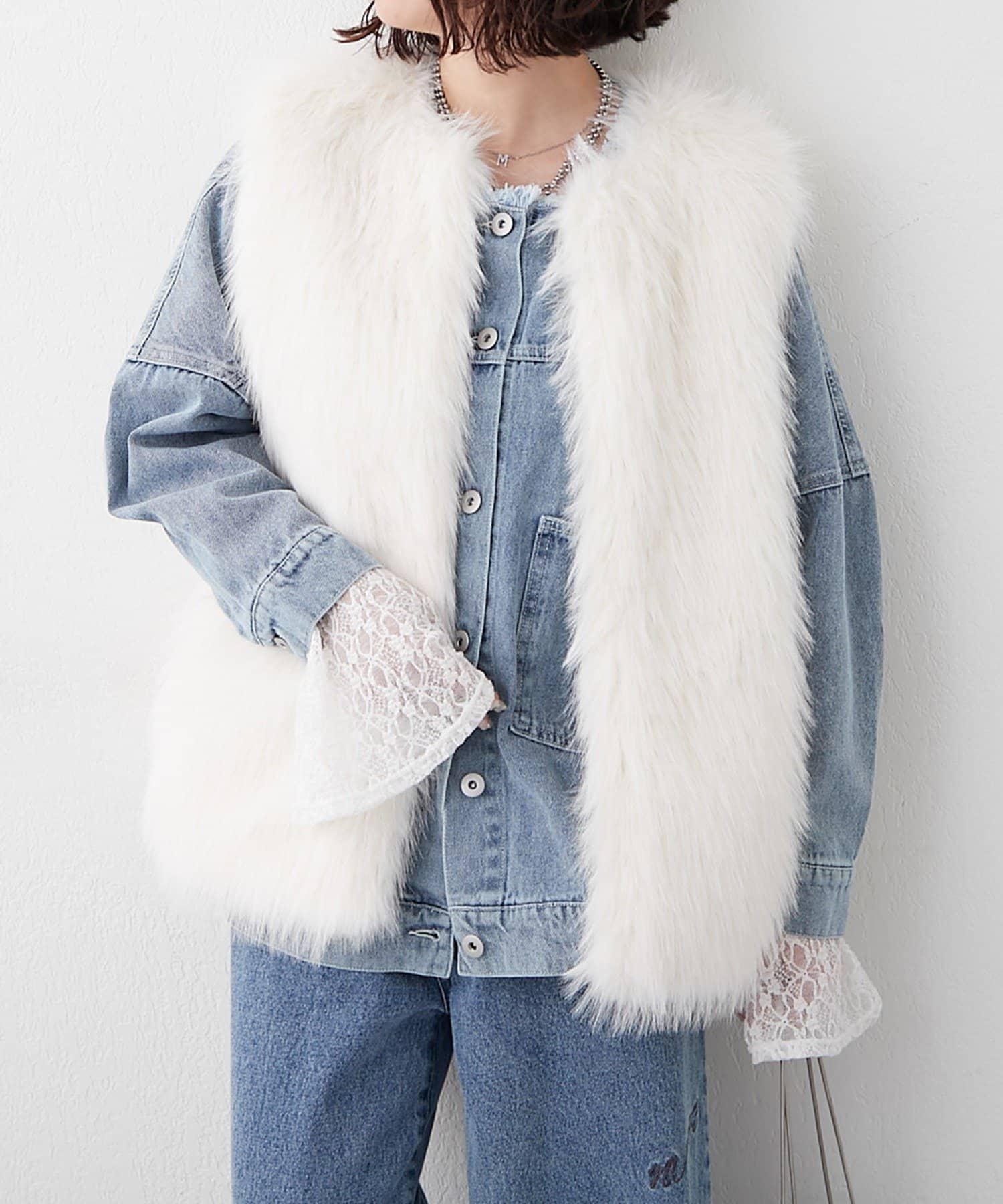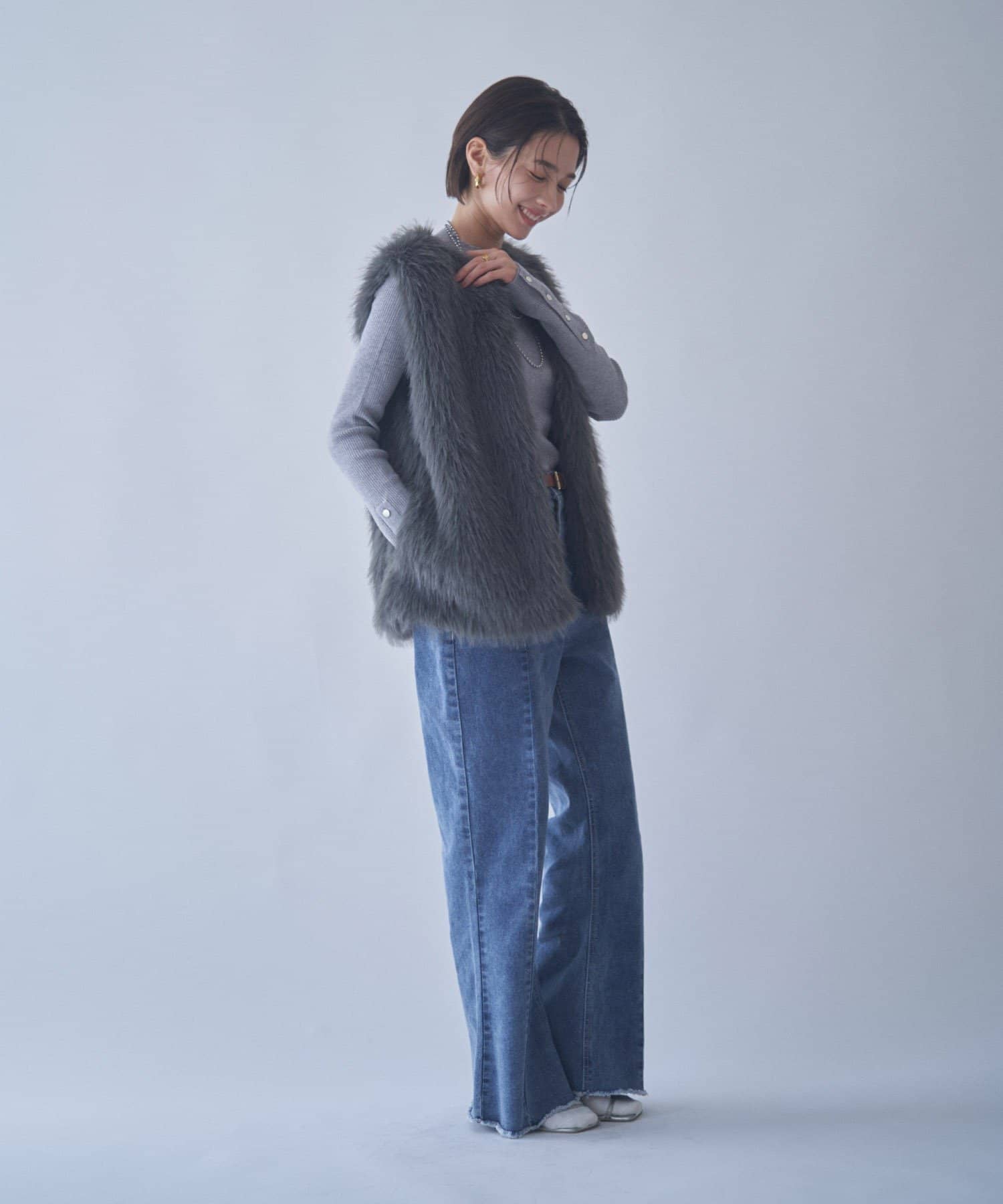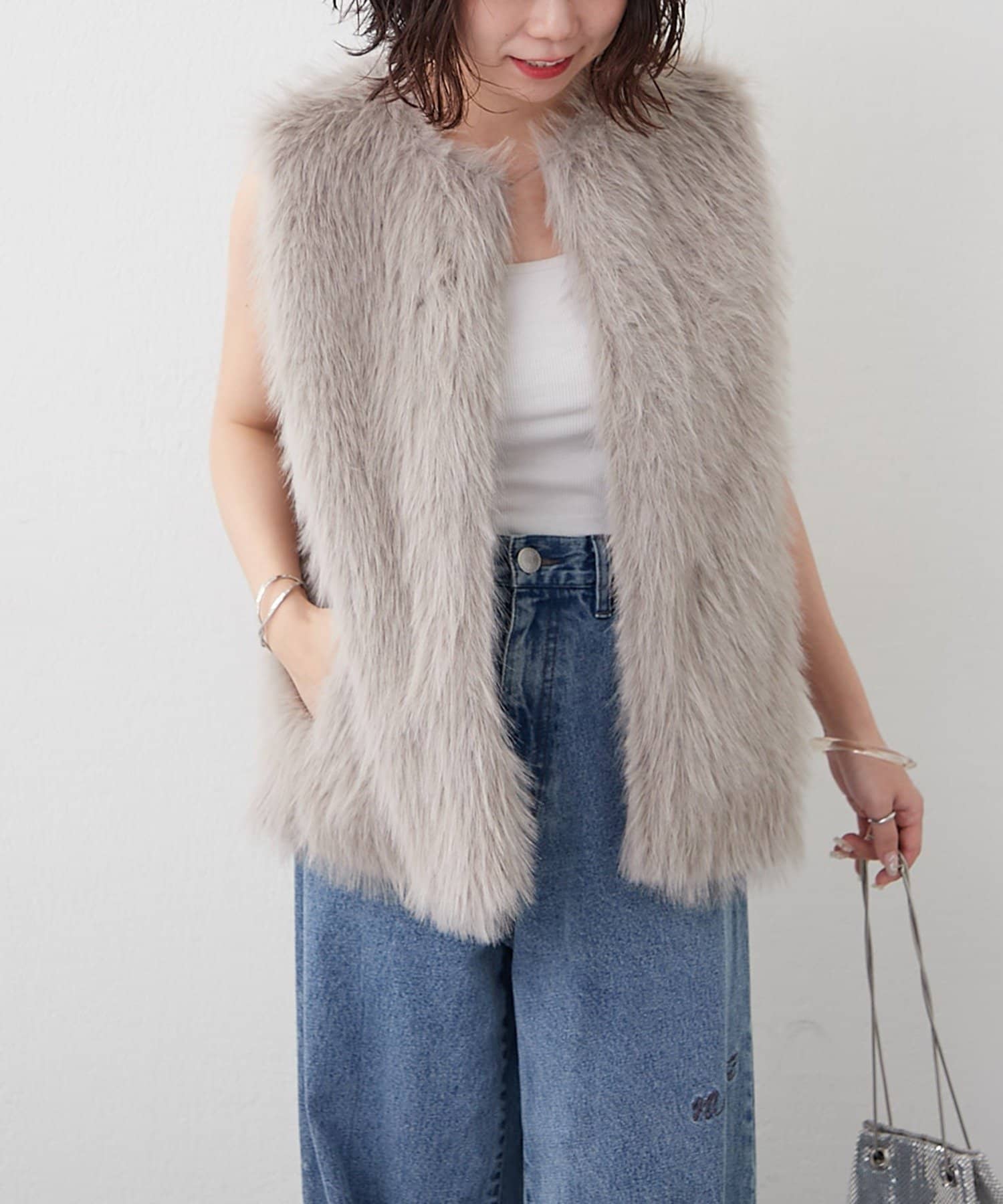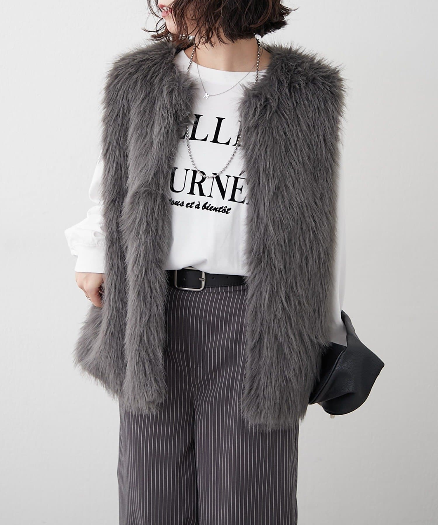 ・ ずっと触っていたくなるフェイクファーが暖かいベスト