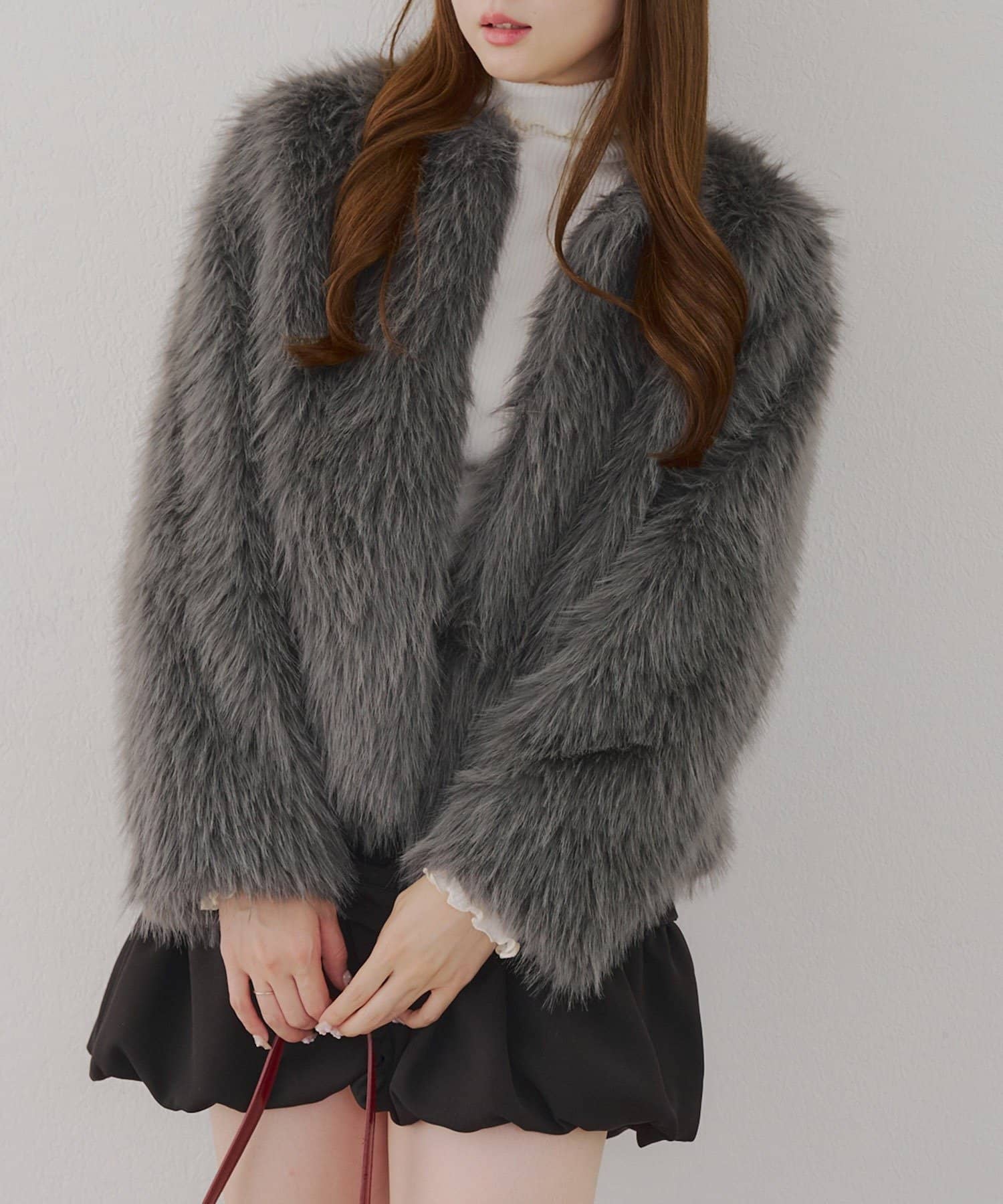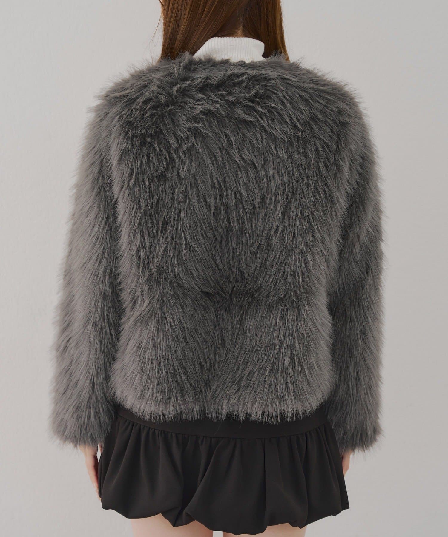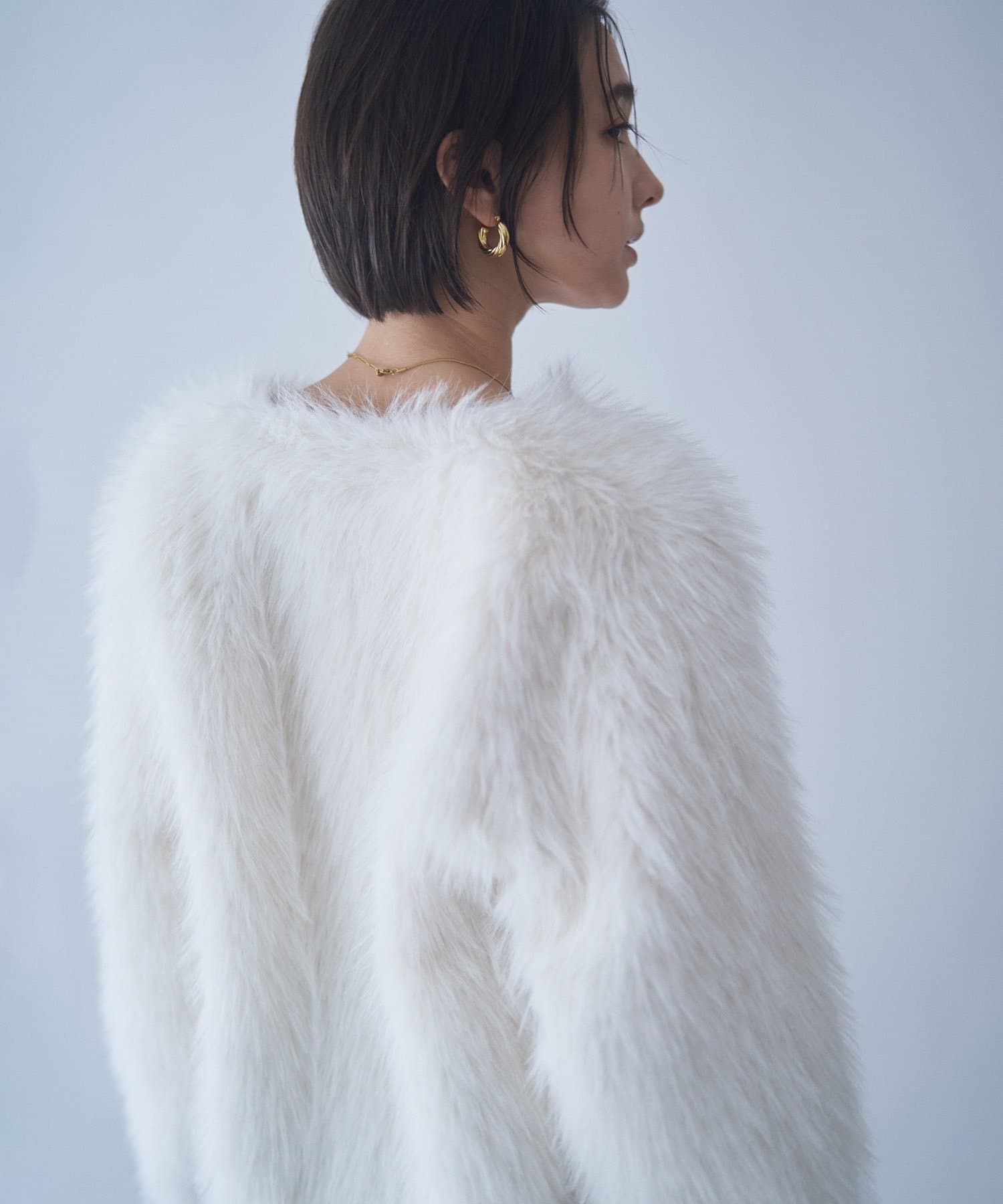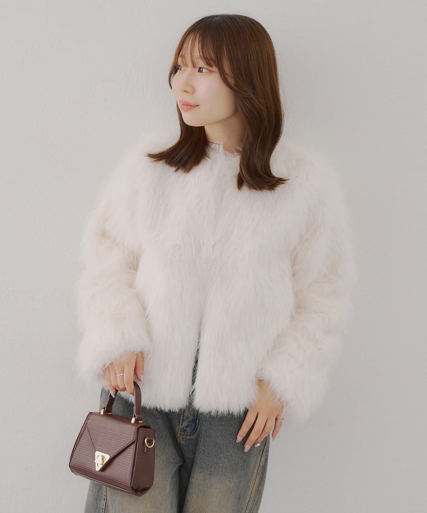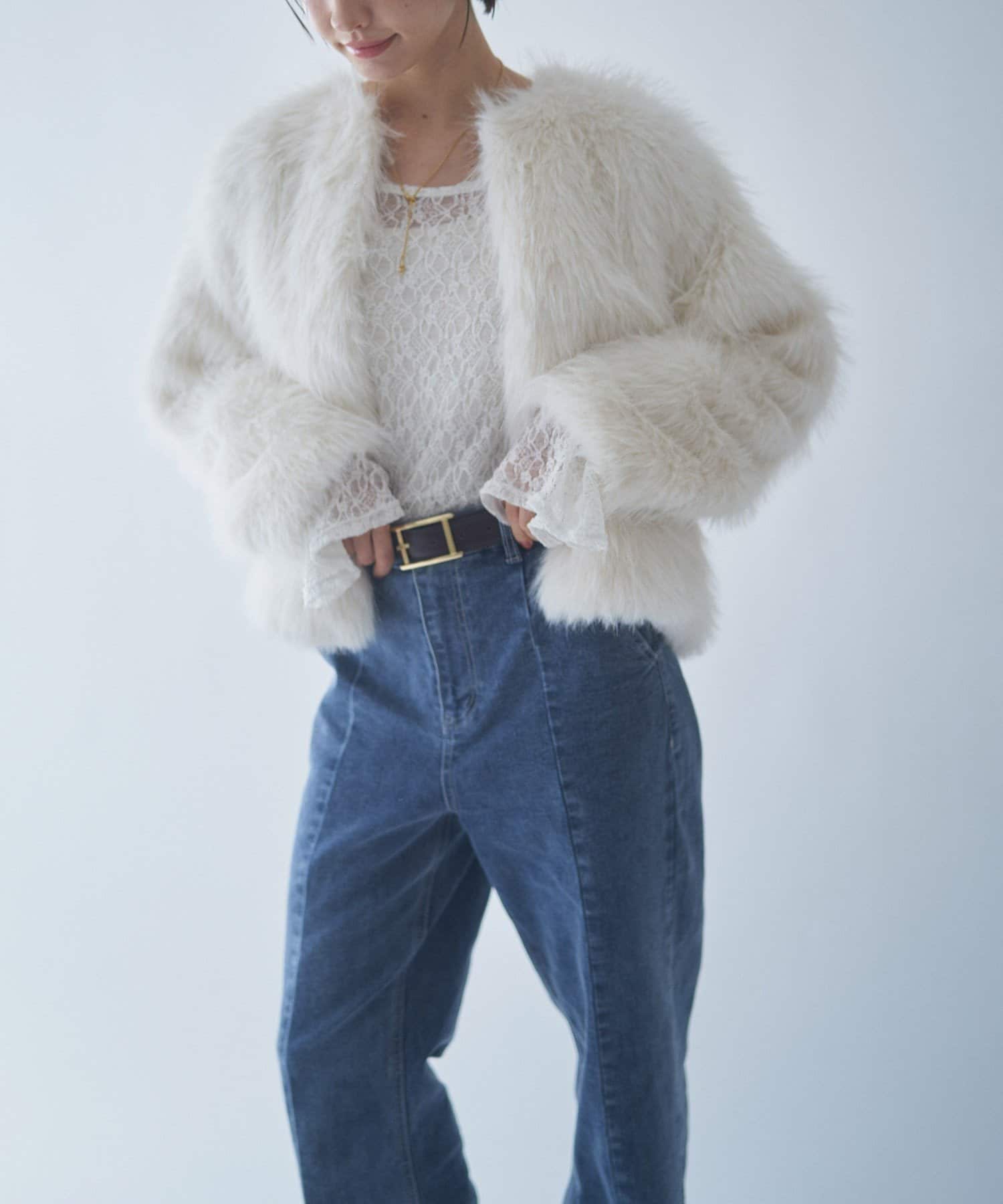 ・存在感のあるフェイクファーを使用したノーカラージャケット