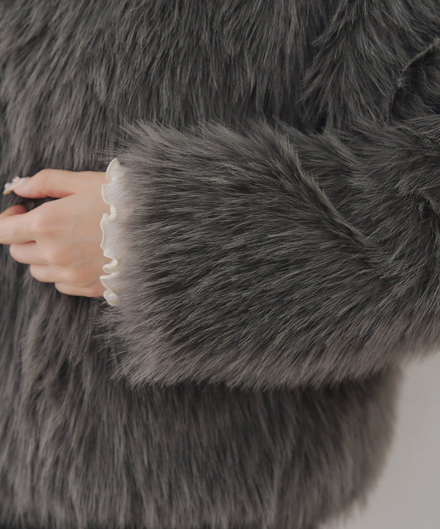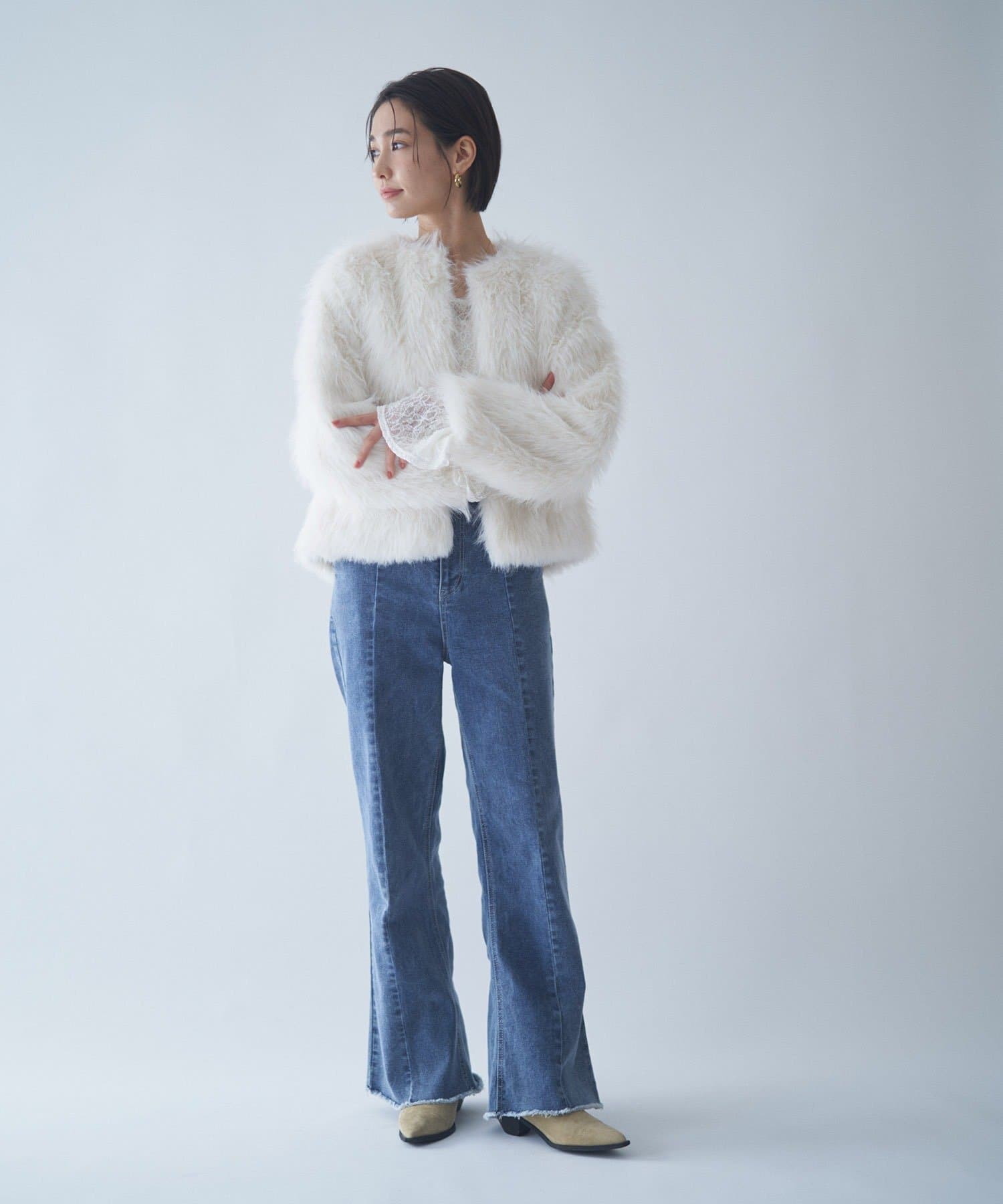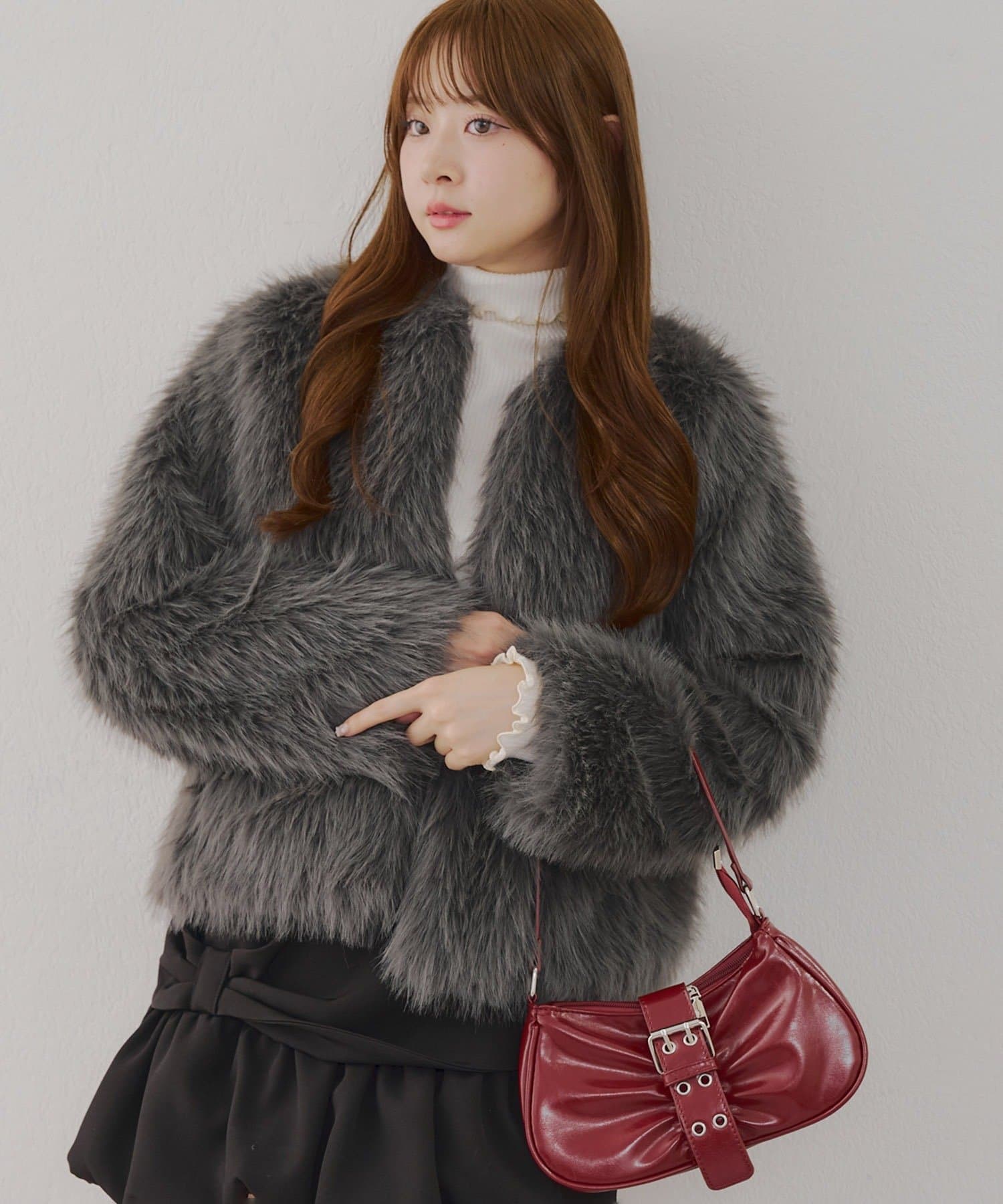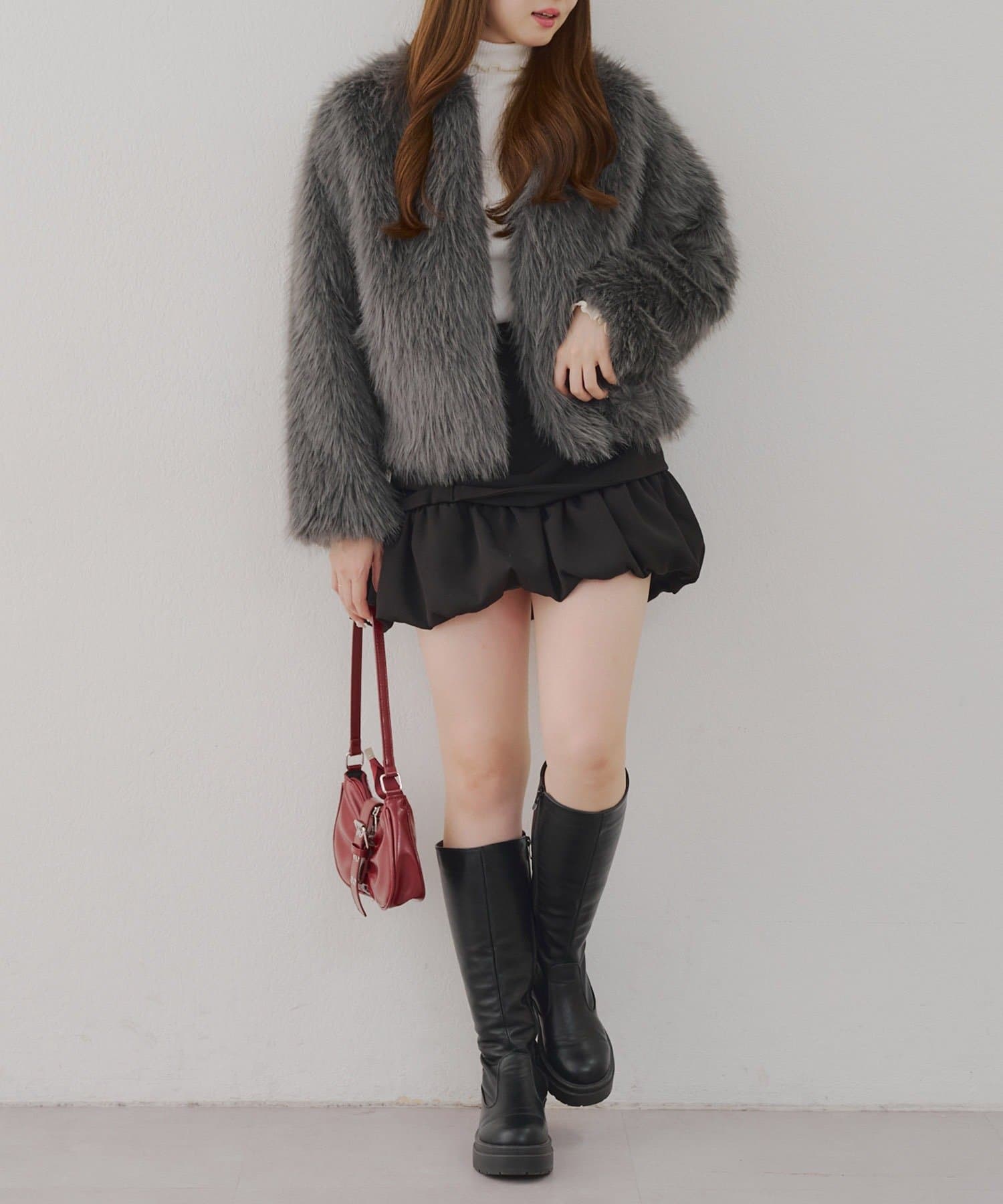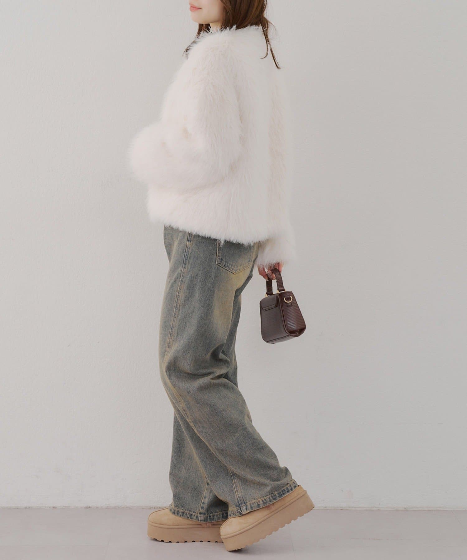 ・存在感のあるフェイクファーを使用したノーカラージャケット