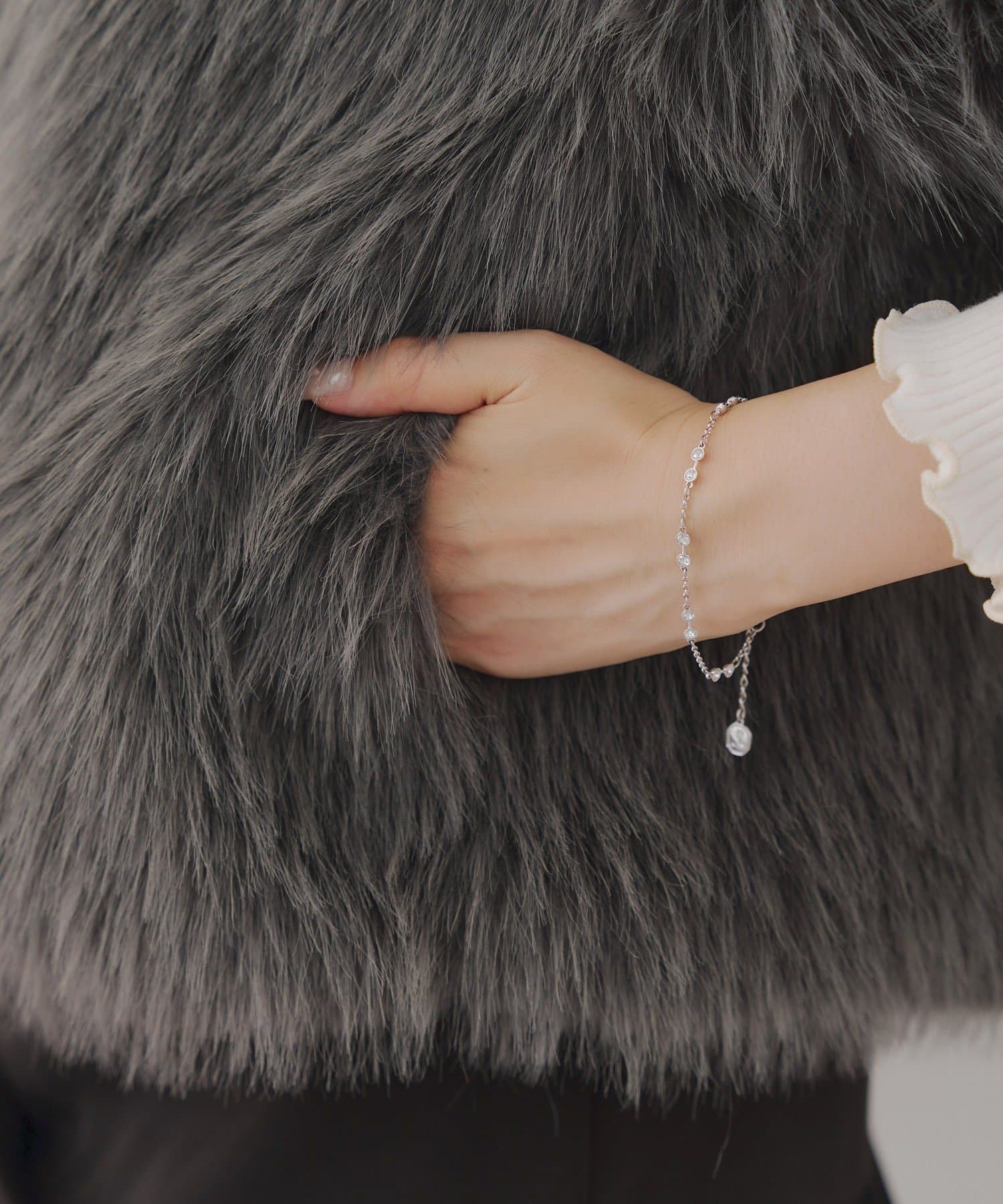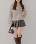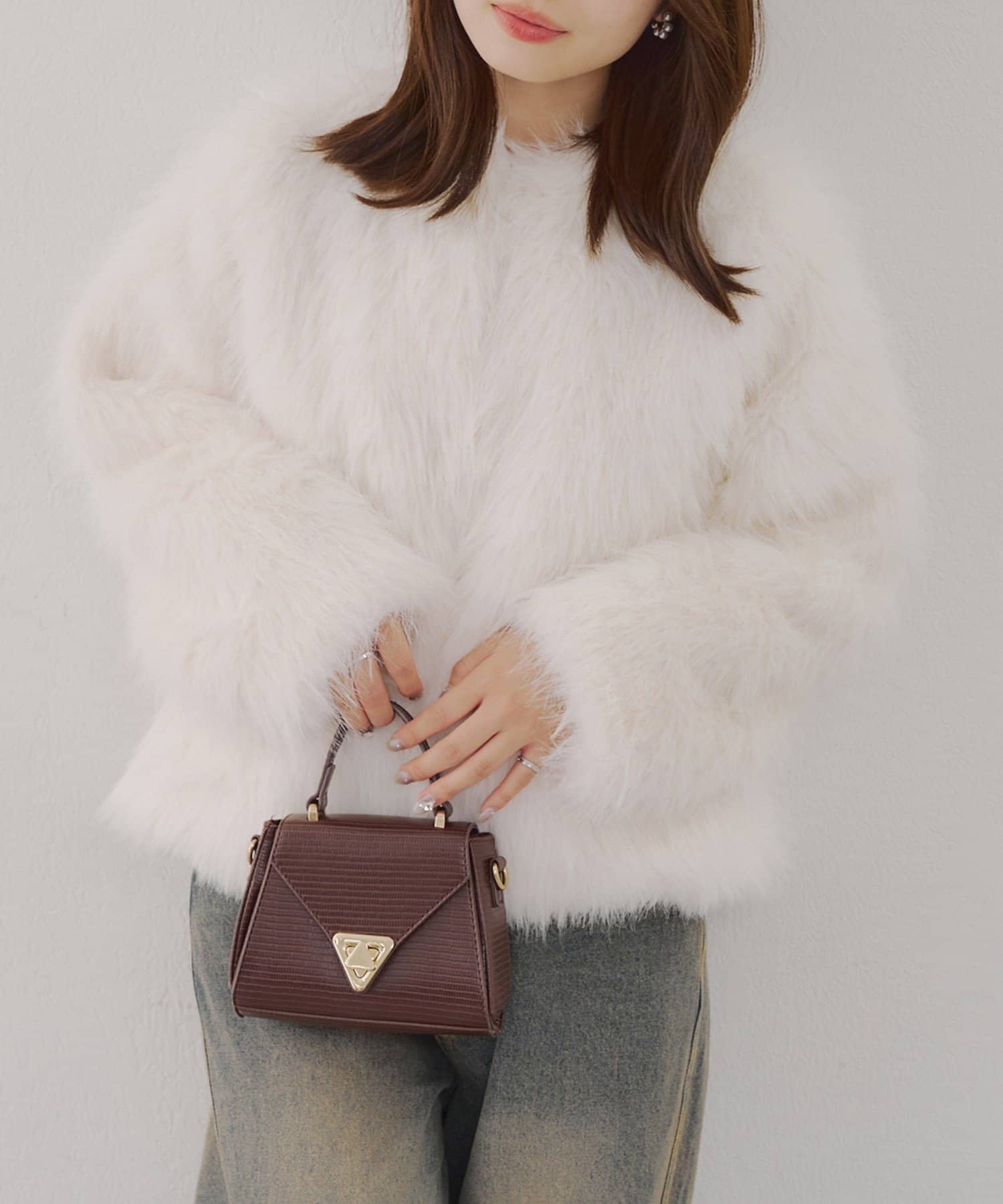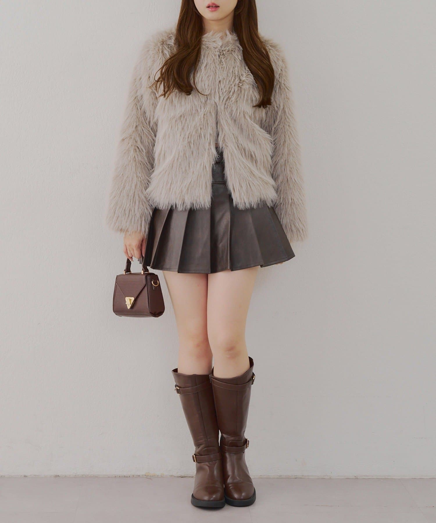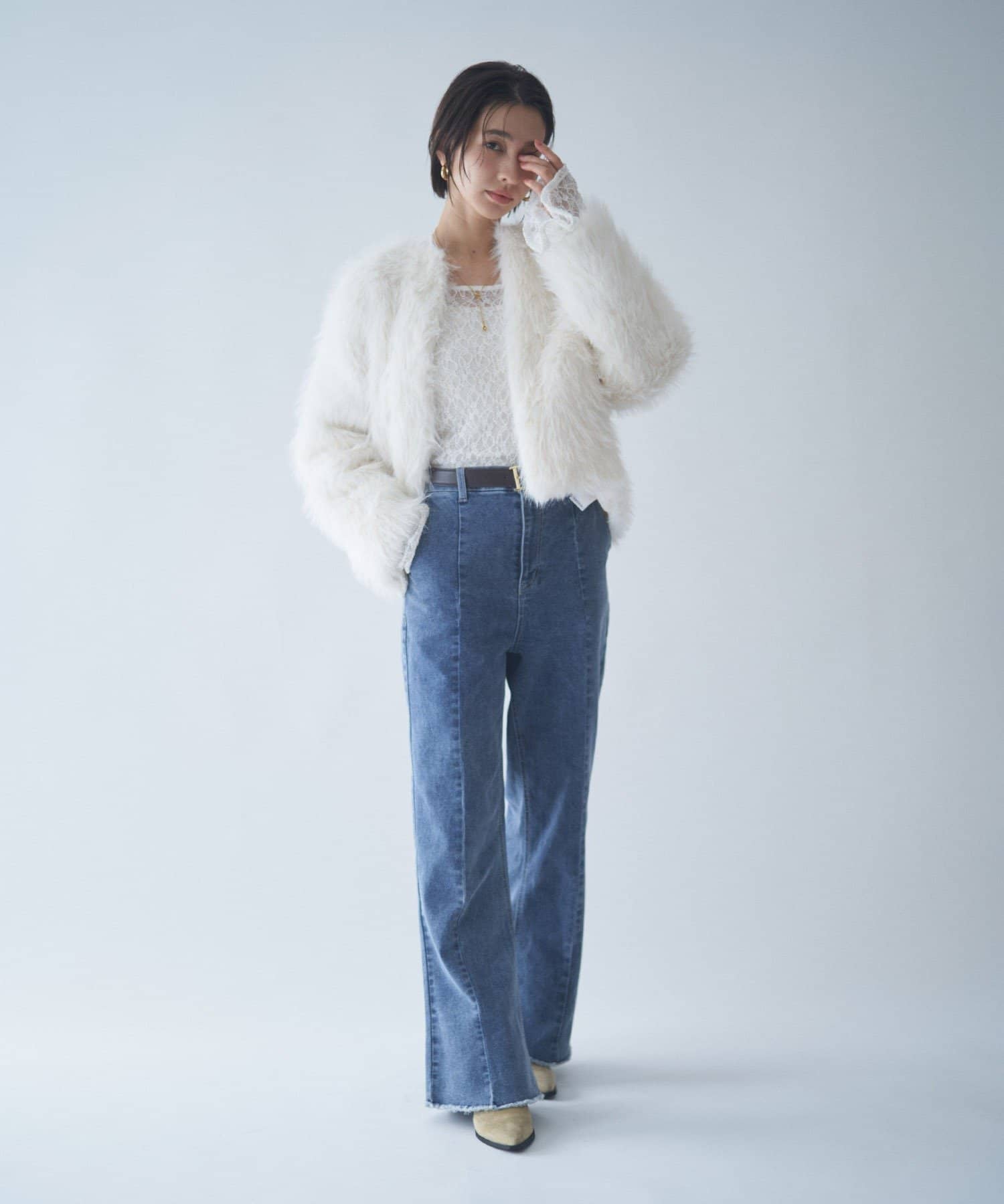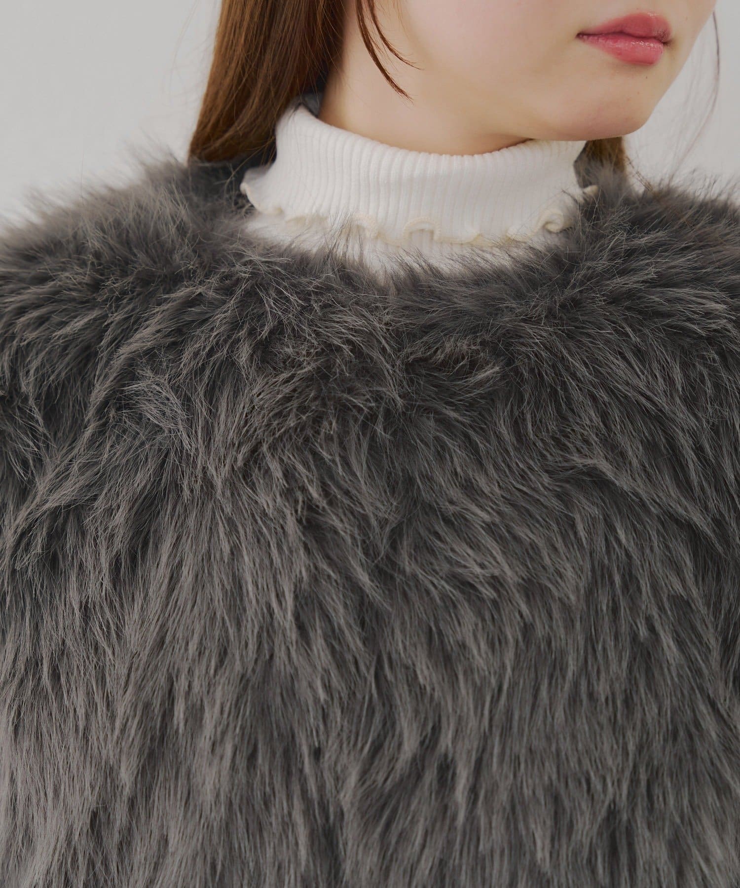 ・存在感のあるフェイクファーを使用したノーカラージャケット