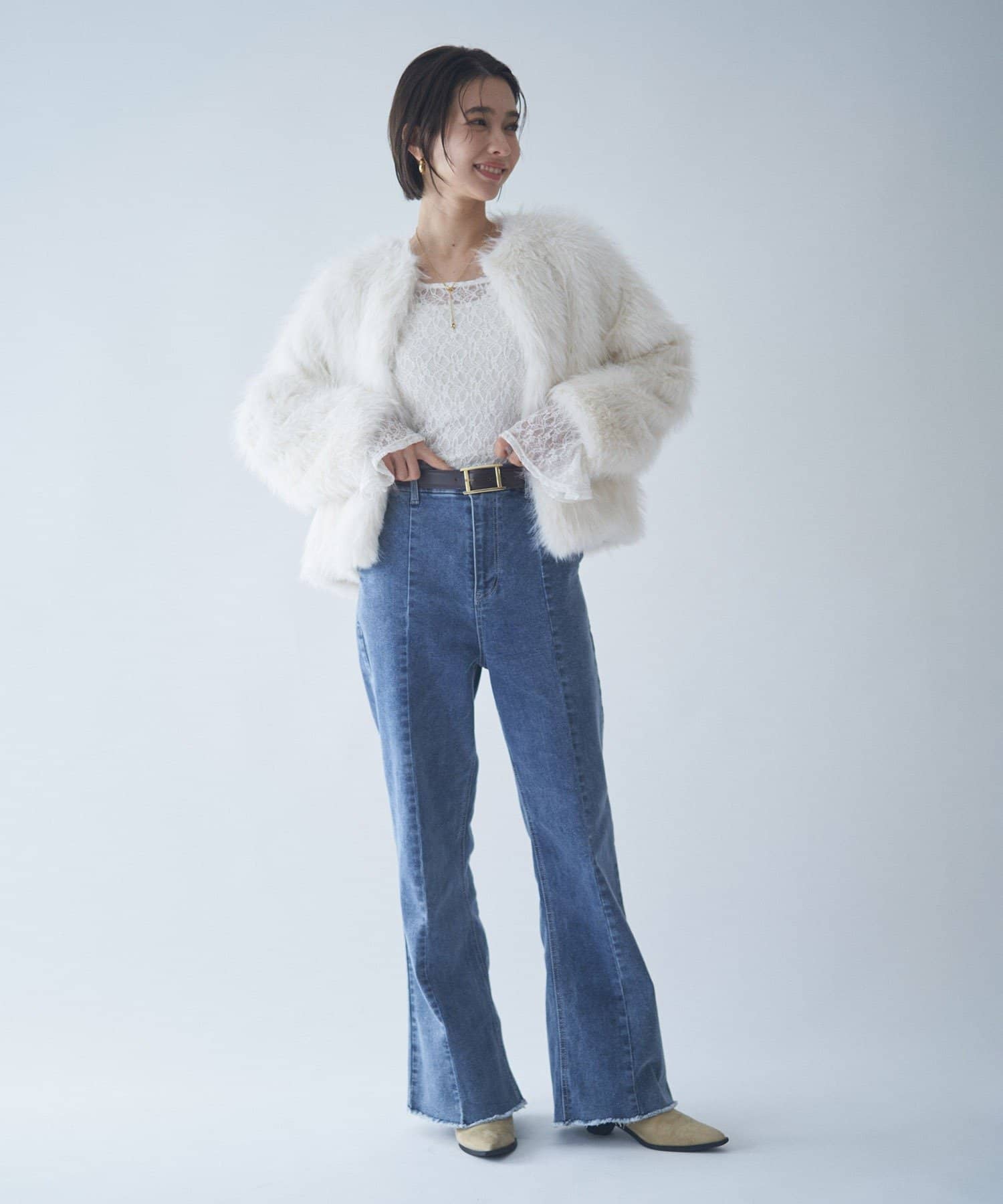 ・ハイウエストフレアデニムで旬なレディライクコーデがオススメ