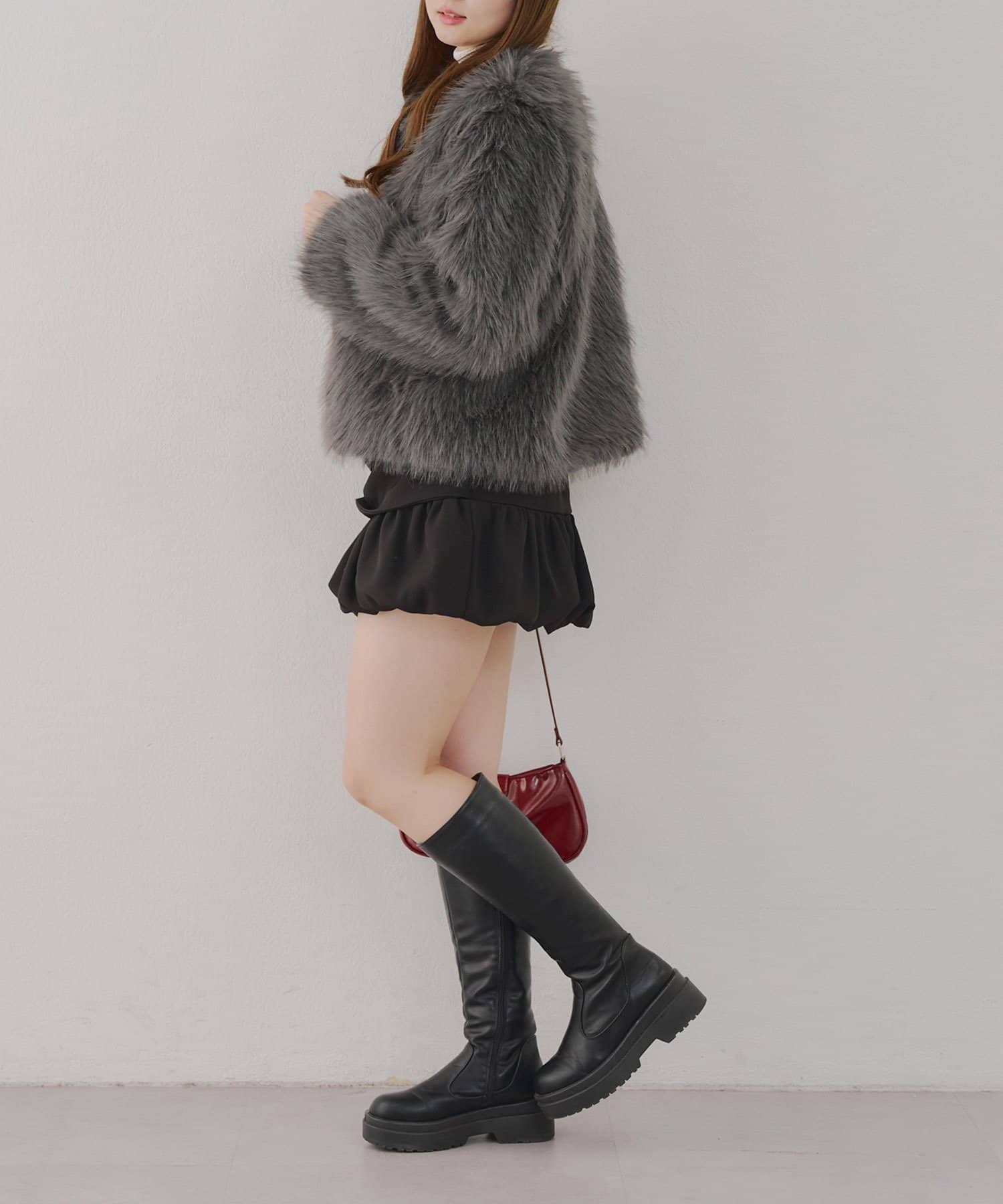 ・ミニボトムにロングブーツの王道モテコーデ◎