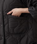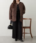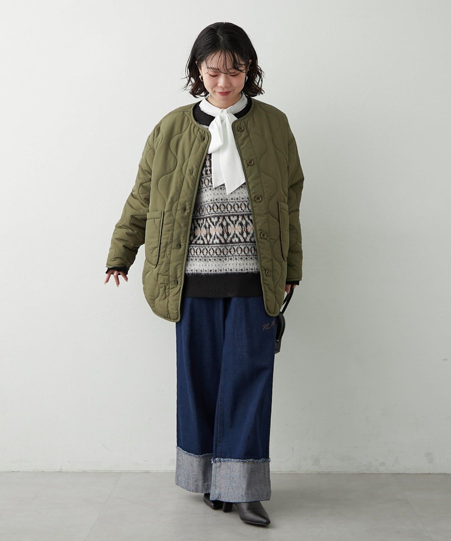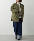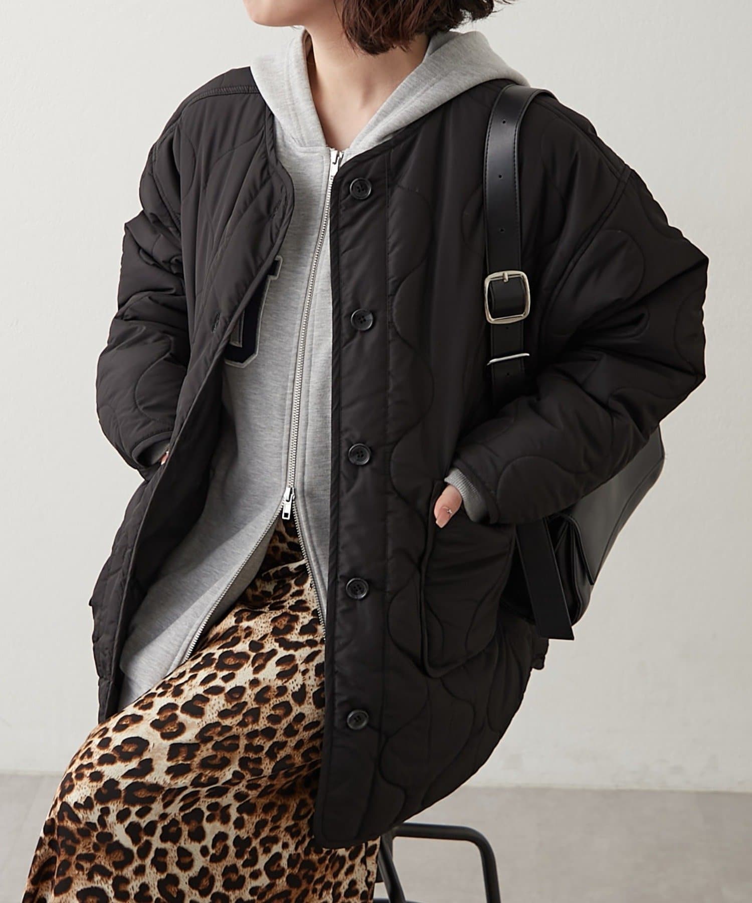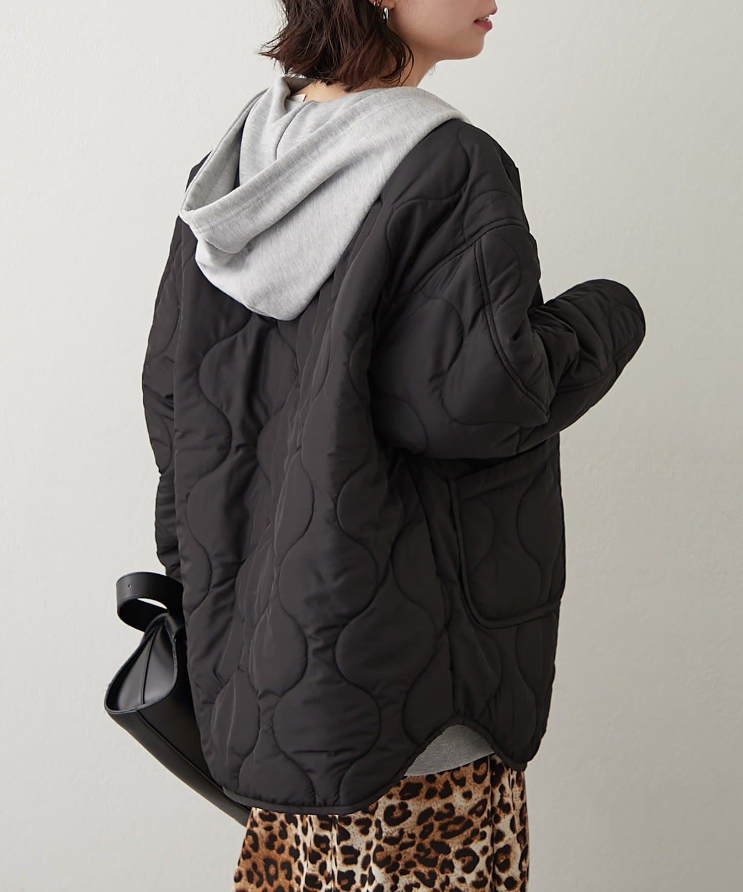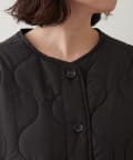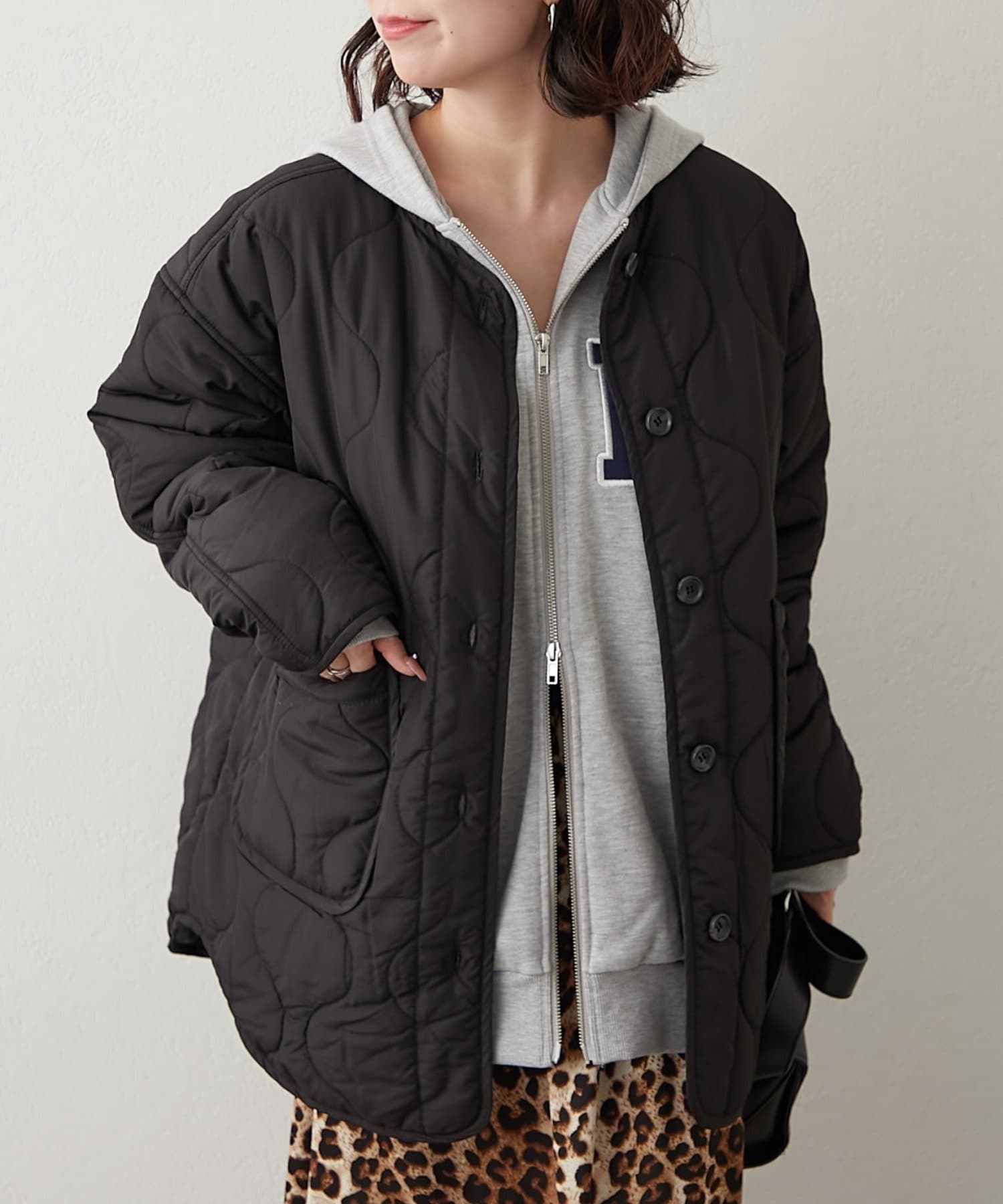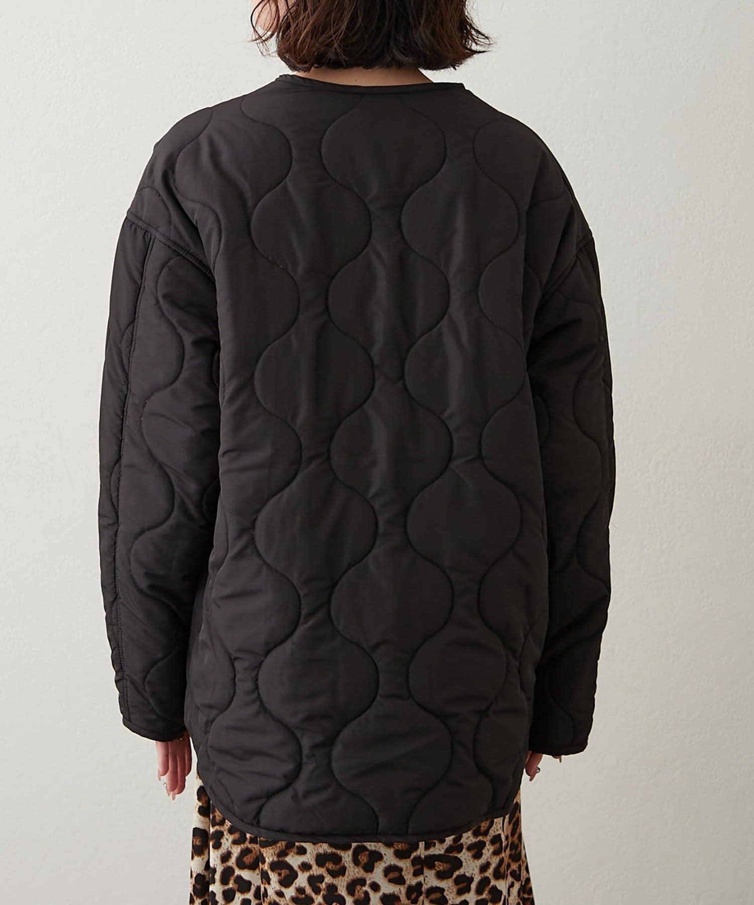 ・軽さと防寒に優れた秋冬アウターの定番キルト素材を使ったノーカラージャケット。