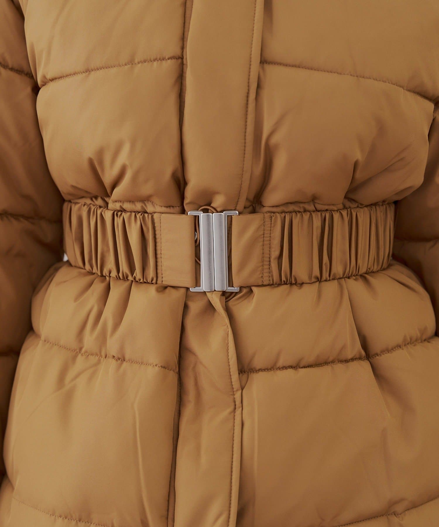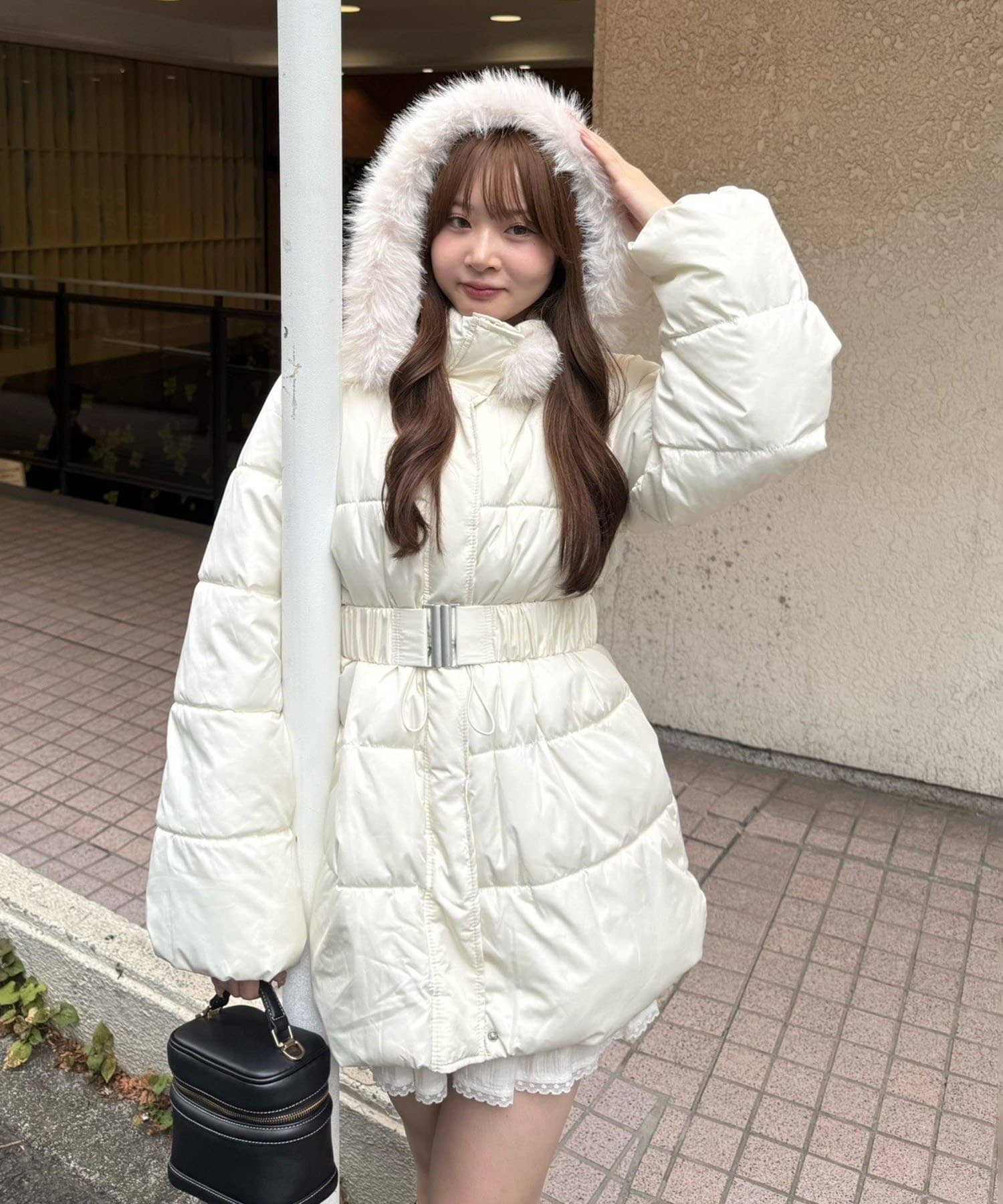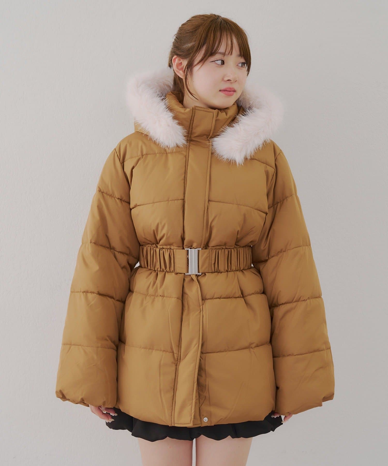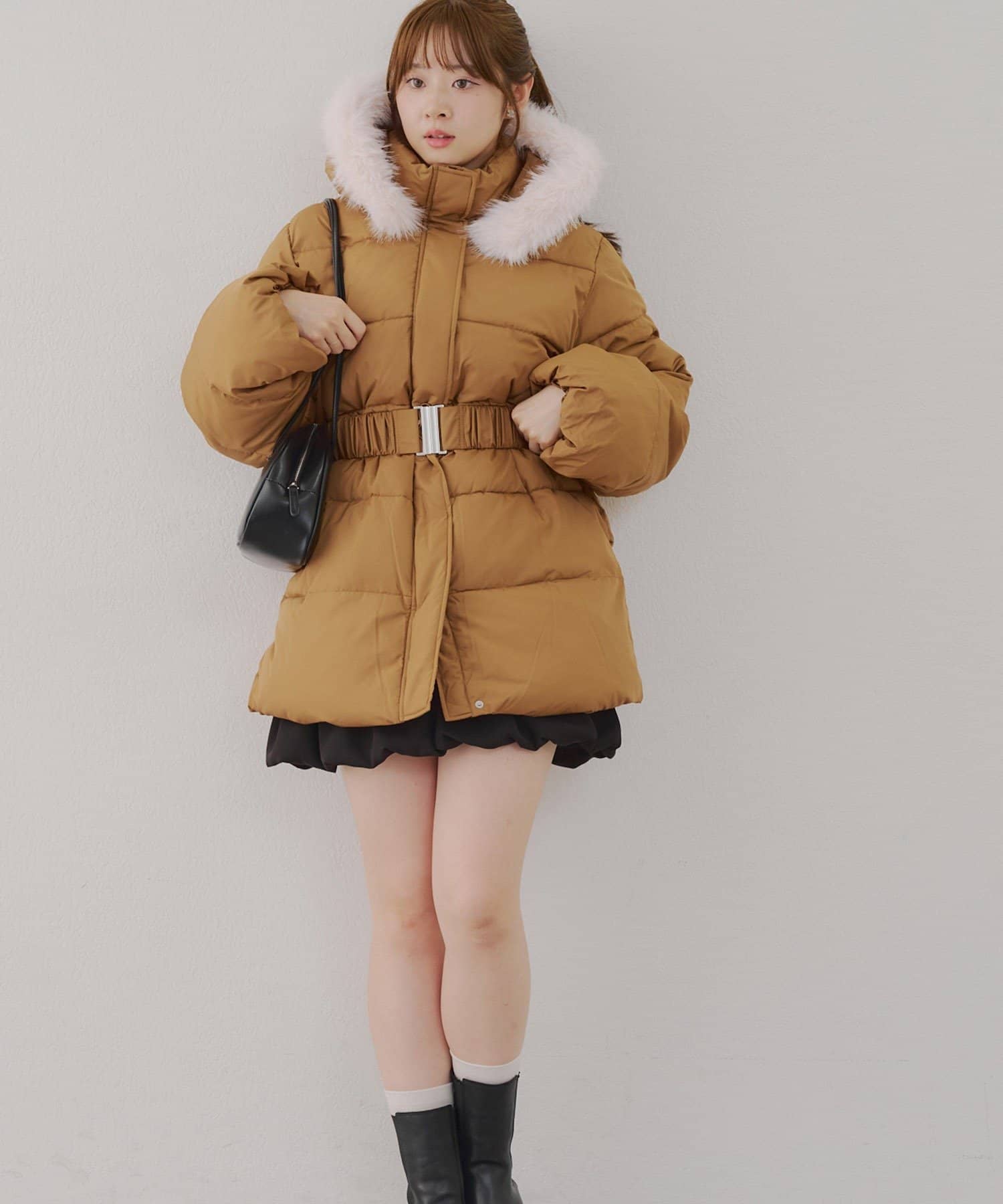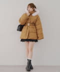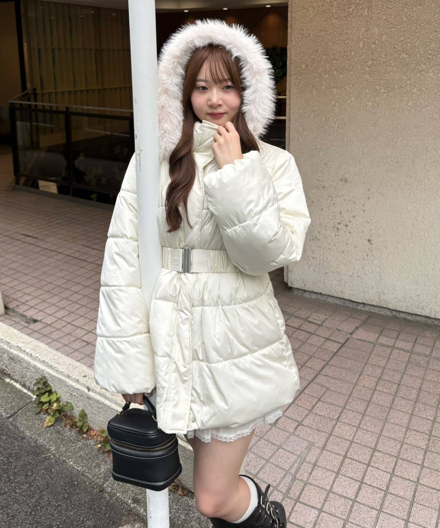 ・暖かさと可愛さを両立する、ベルト付き中綿コート。