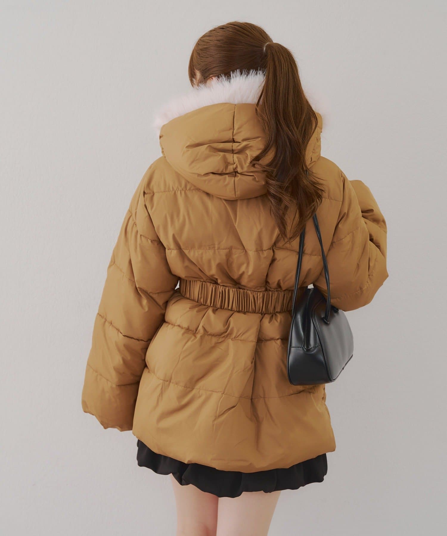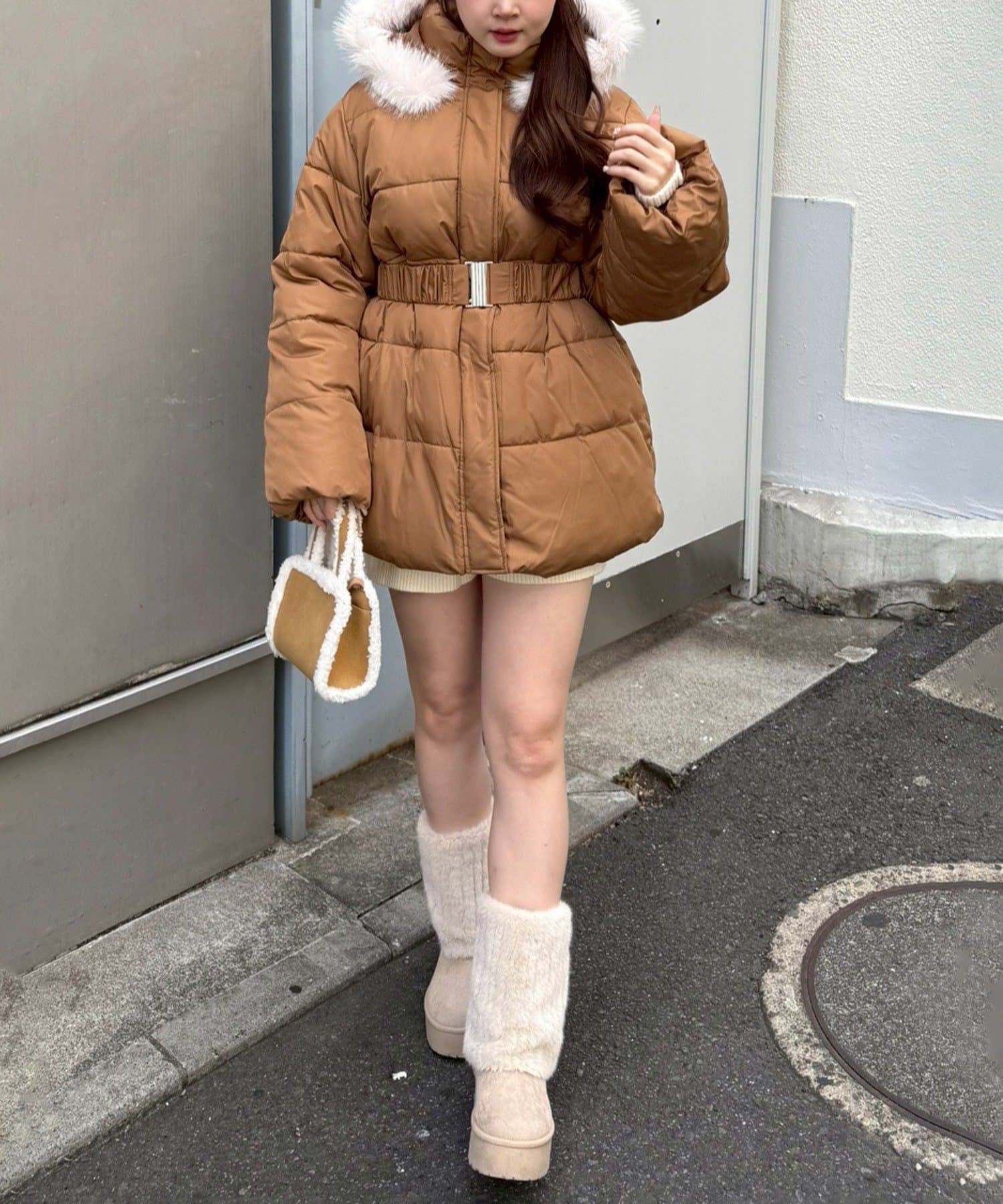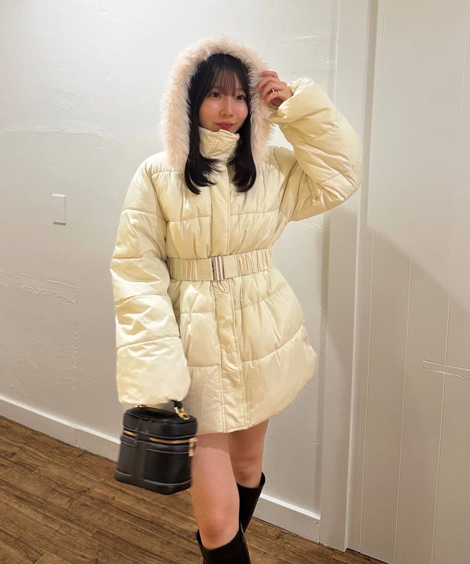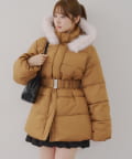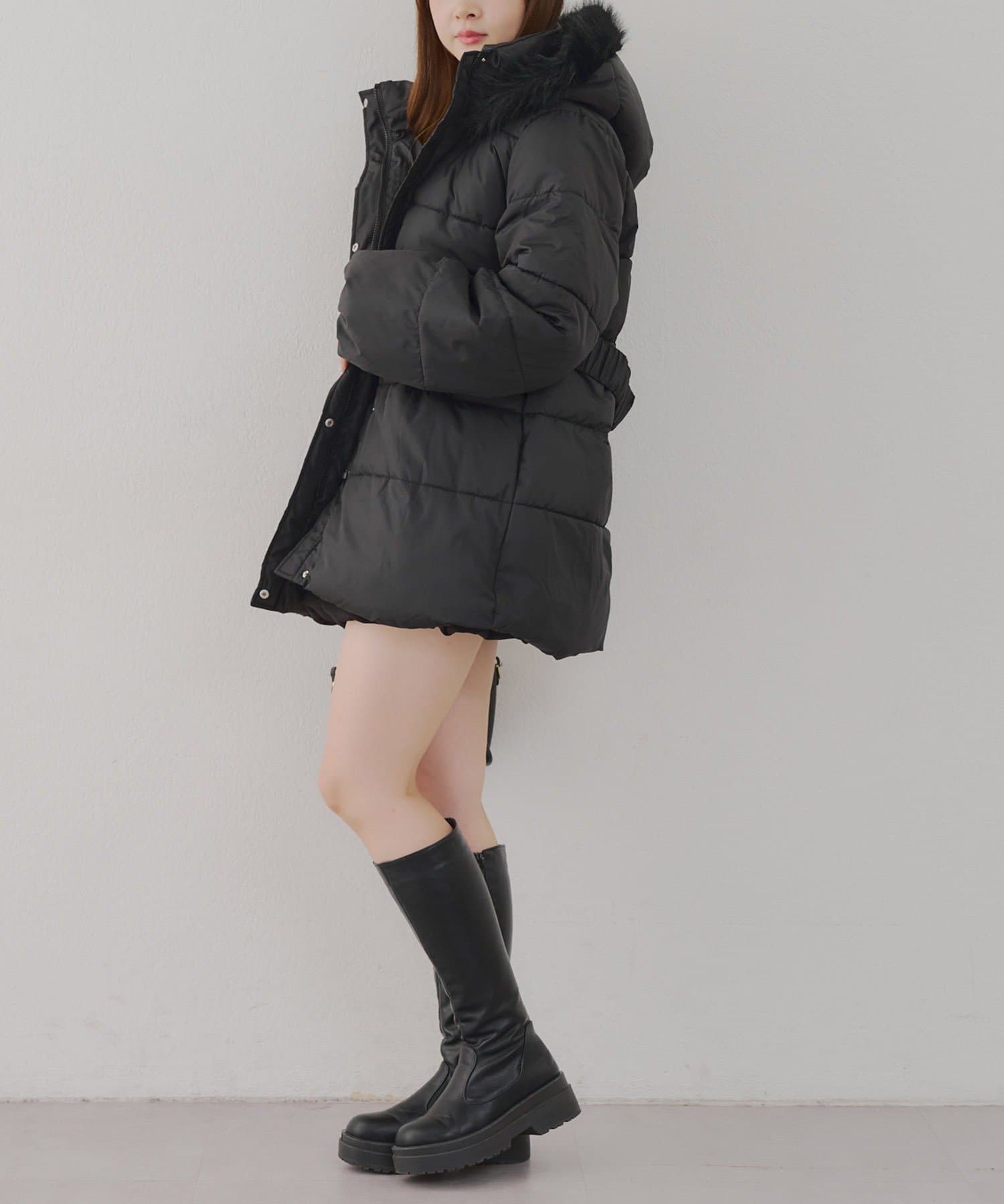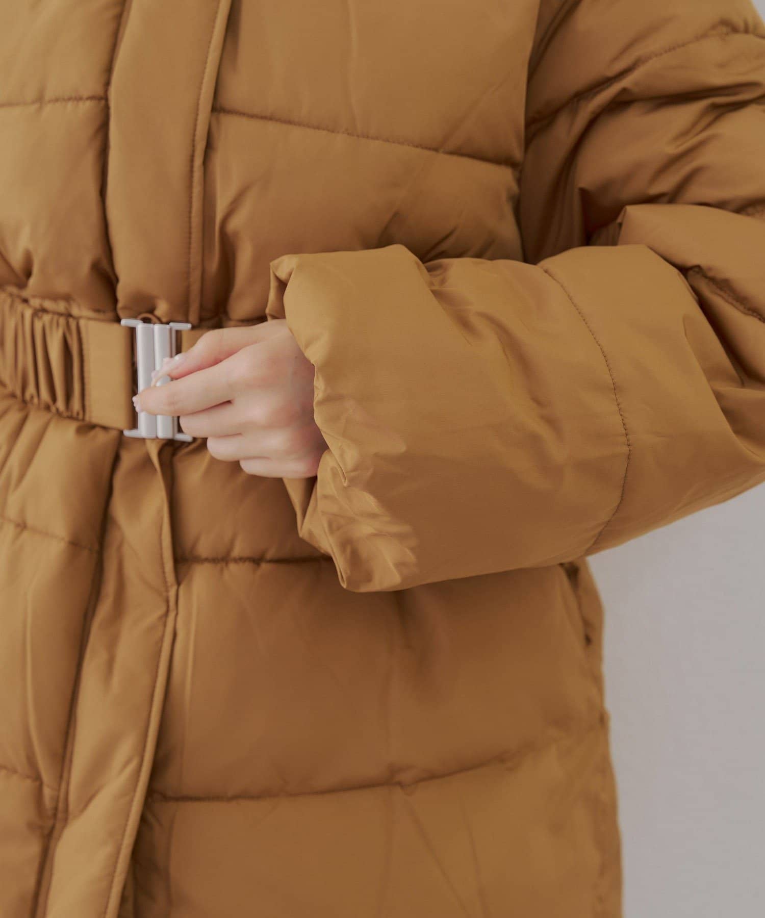 ・暖かさと可愛さを両立する、ベルト付き中綿コート。