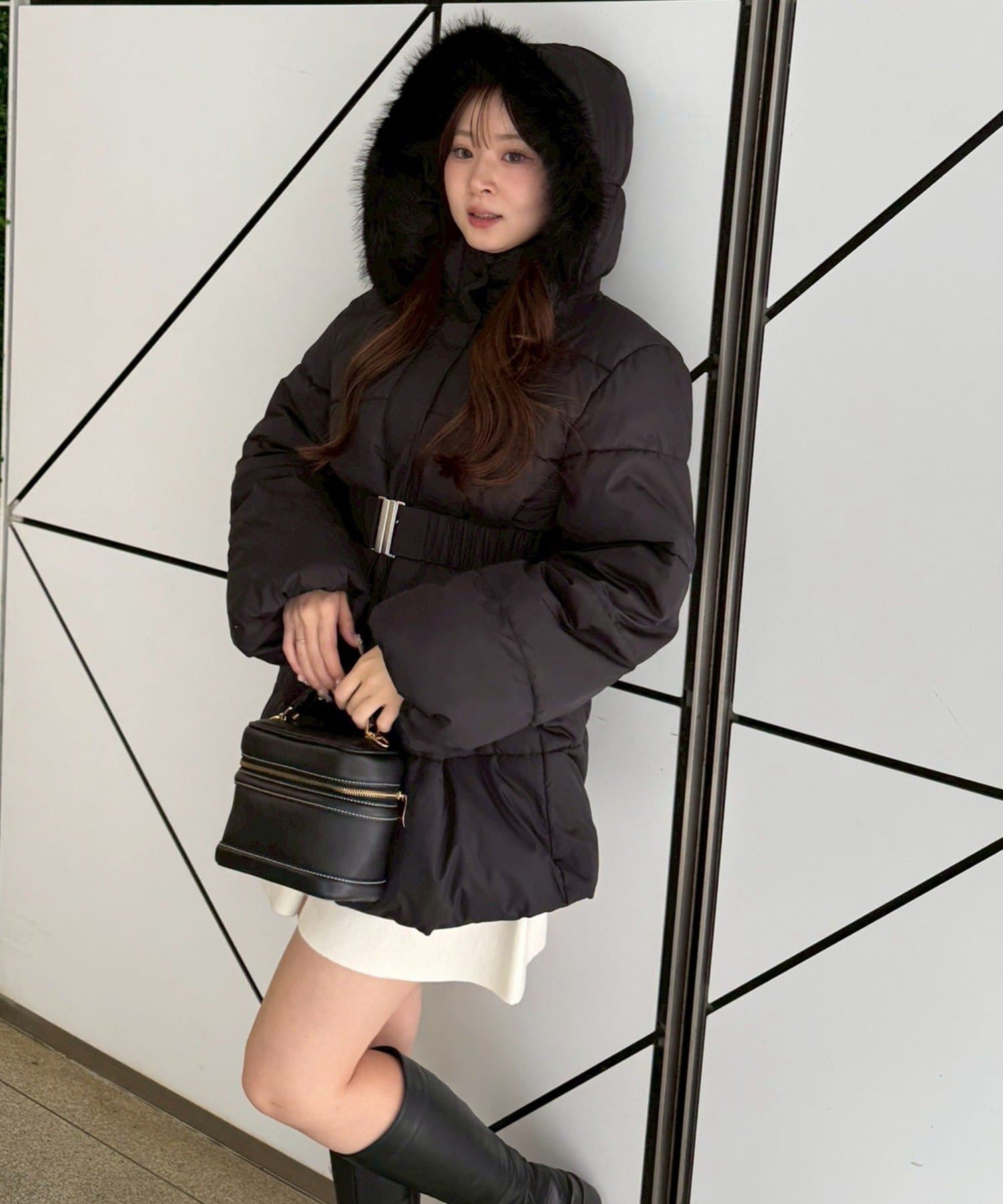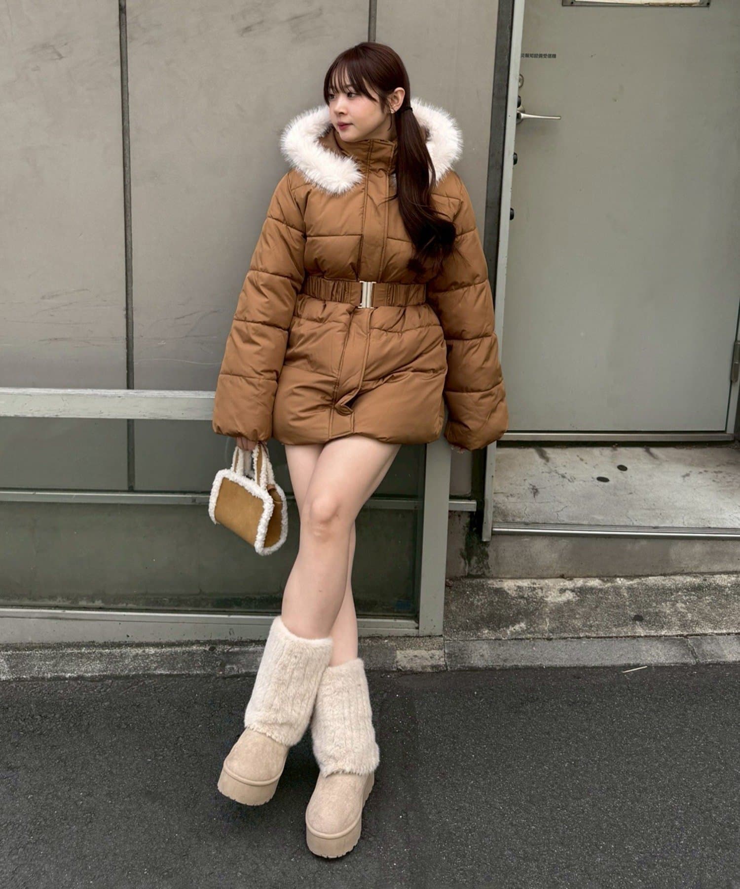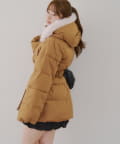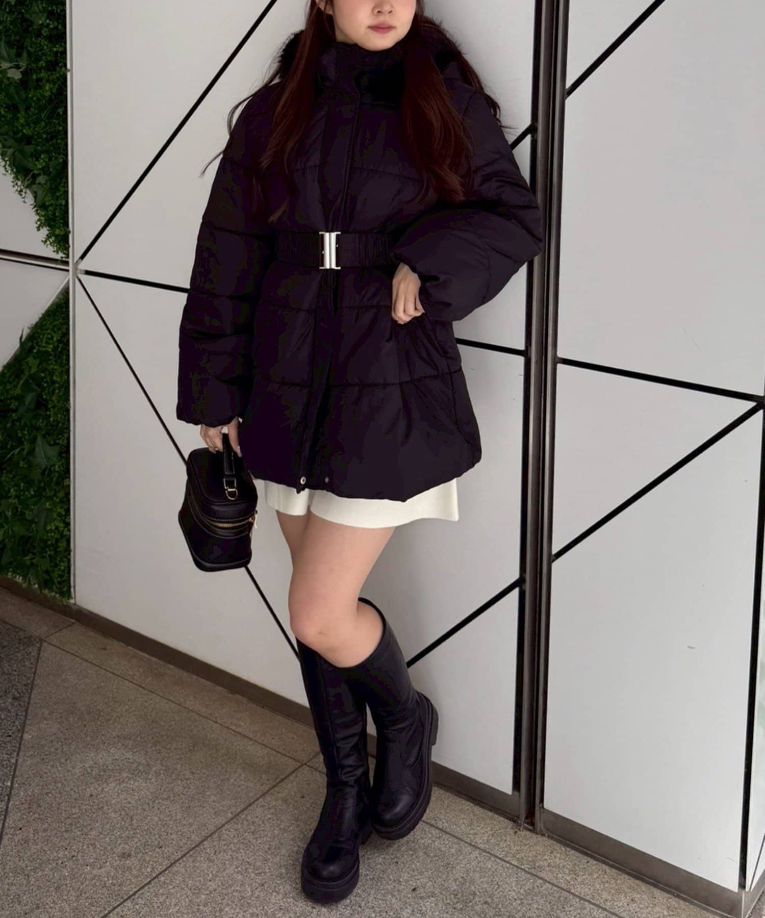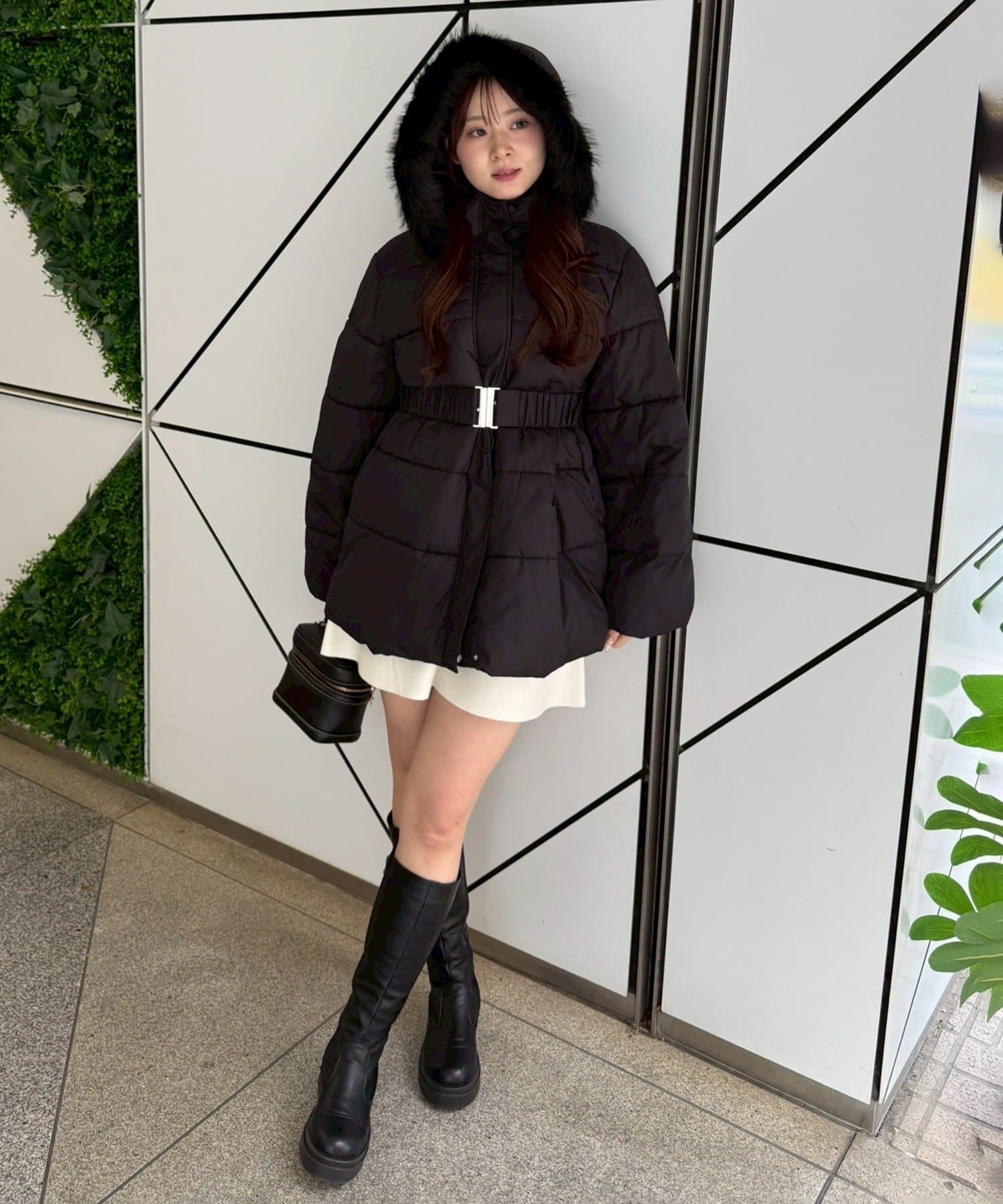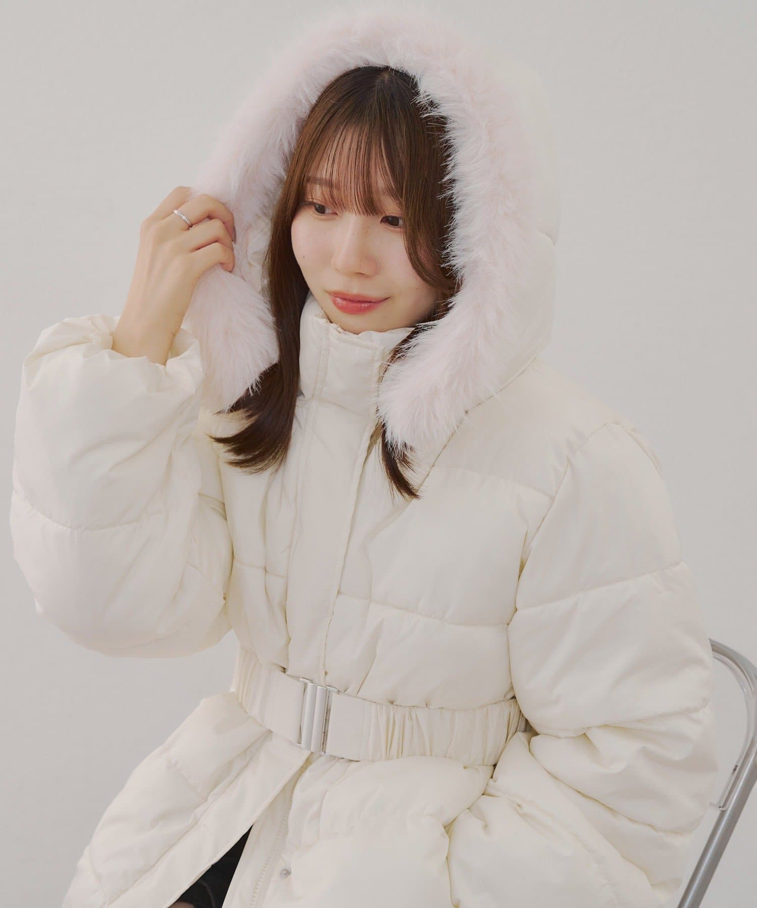 ・暖かさと可愛さを両立する、ベルト付き中綿コート。