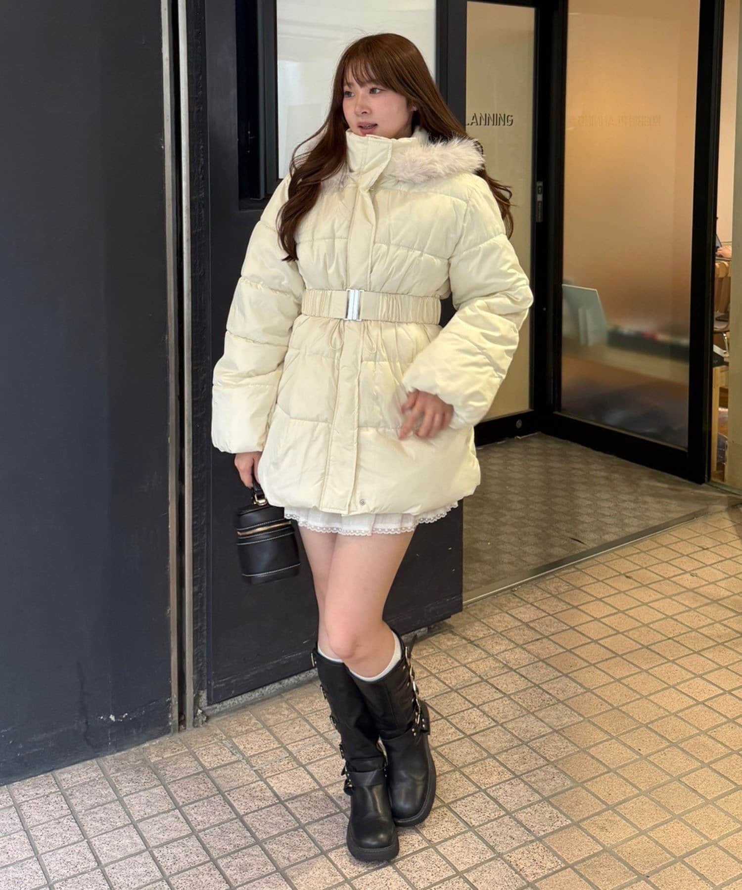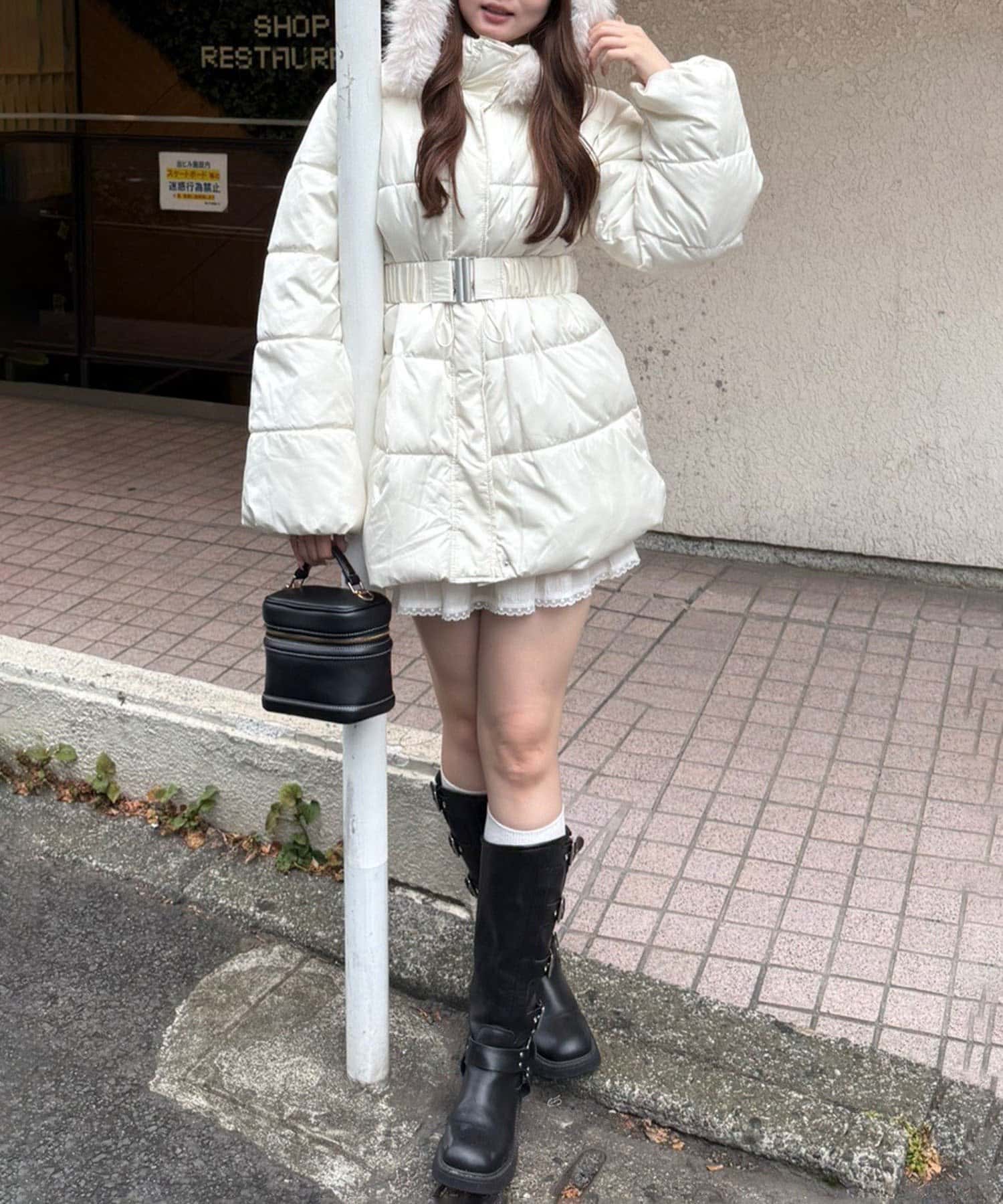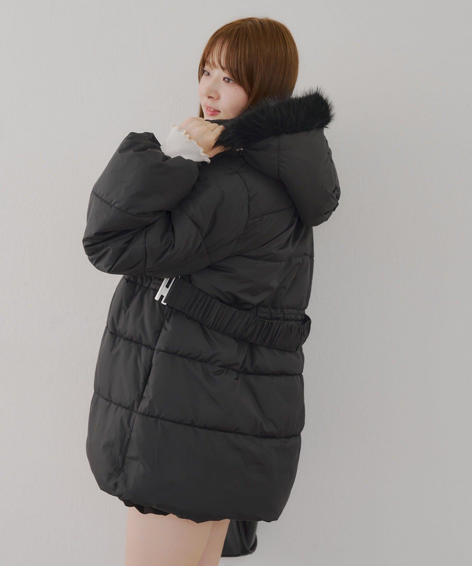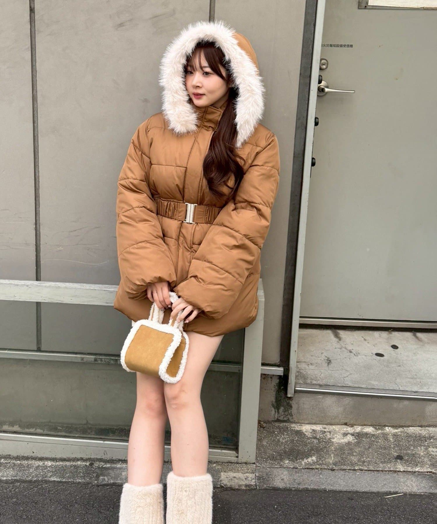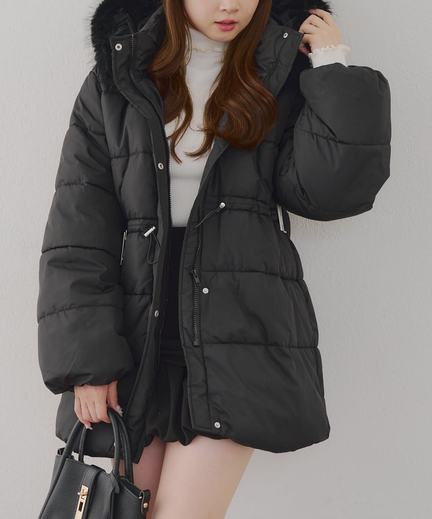 ・暖かさと可愛さを両立する、ベルト付き中綿コート。