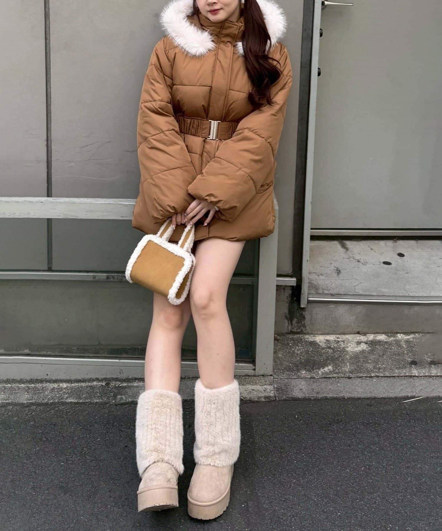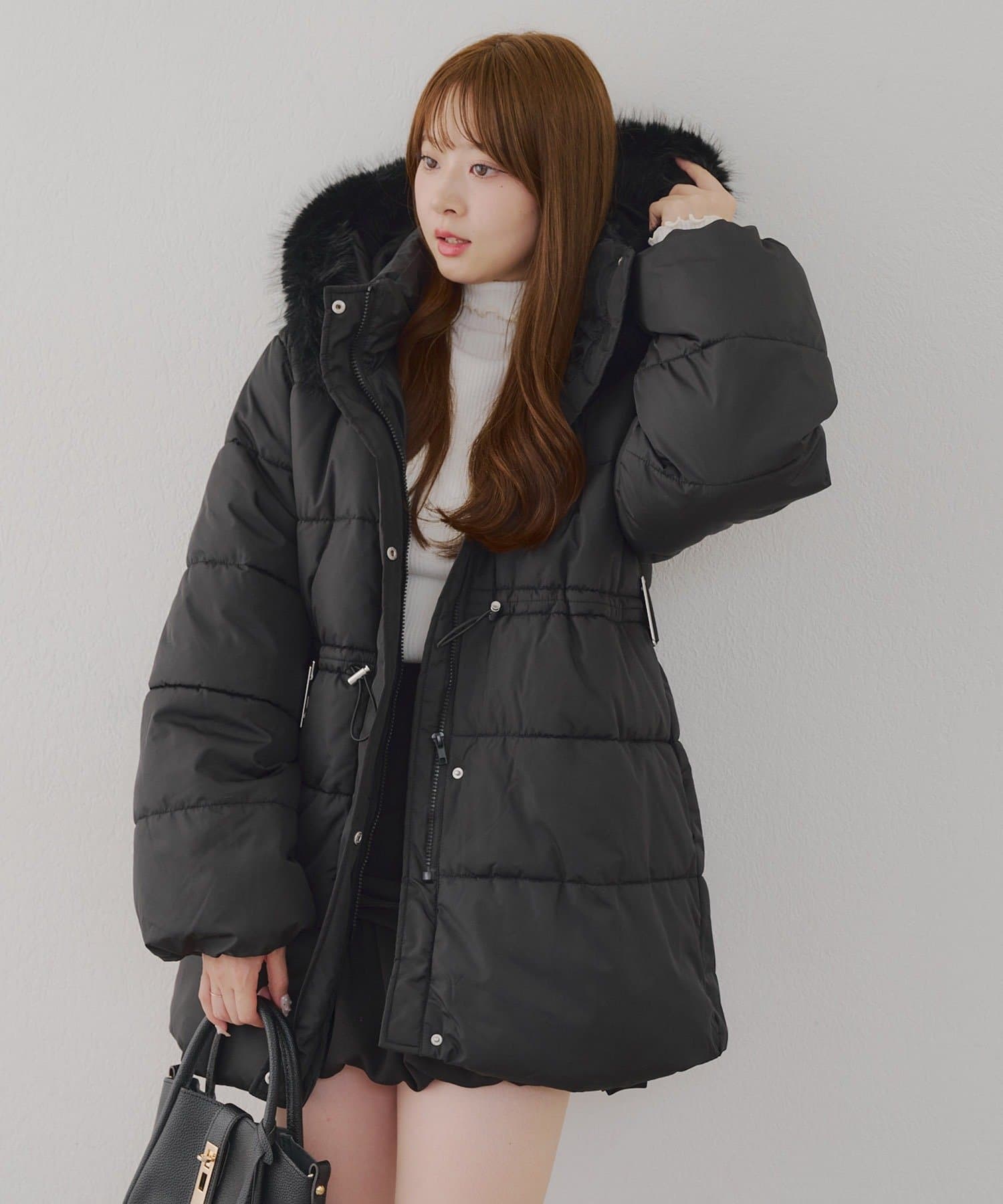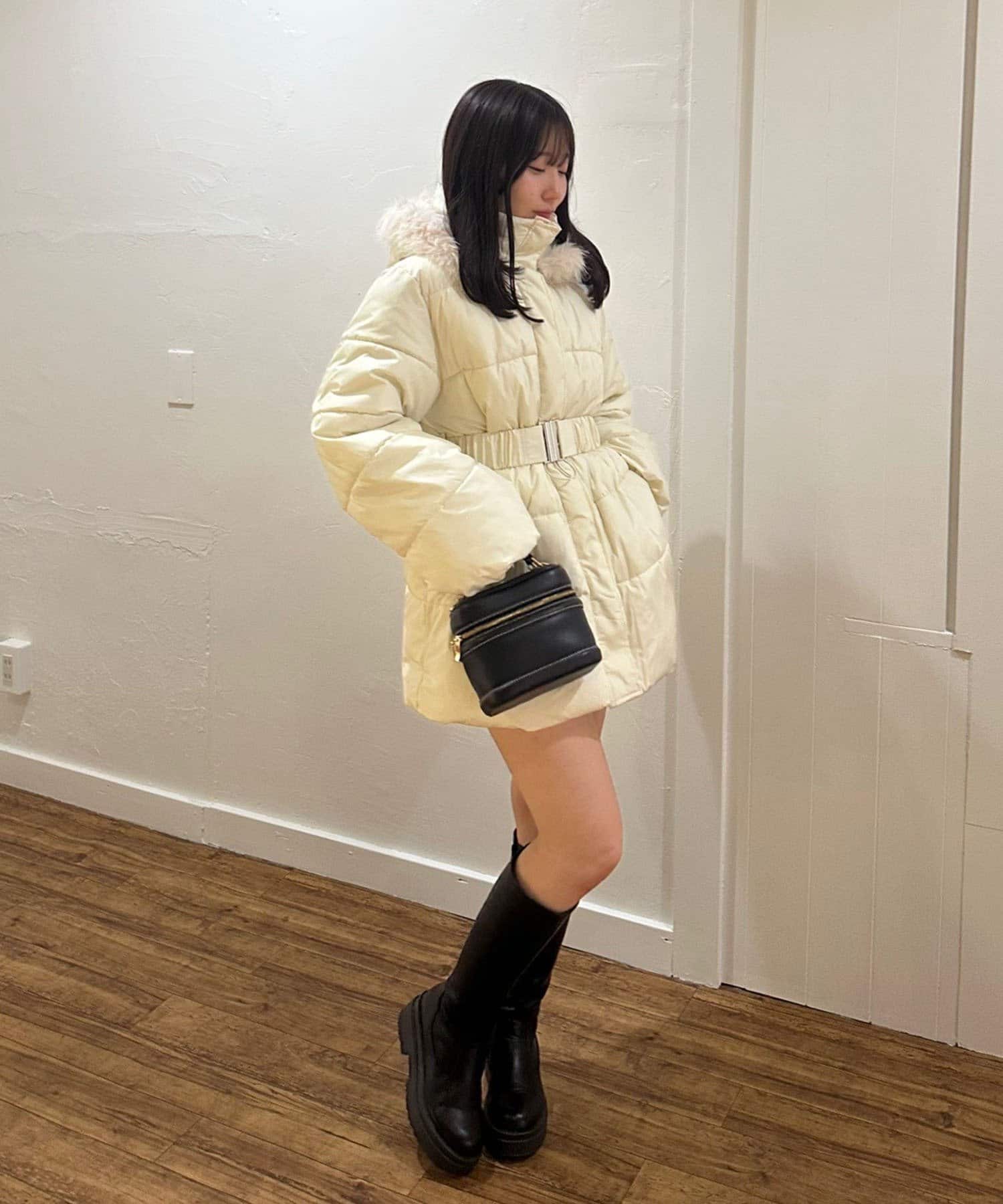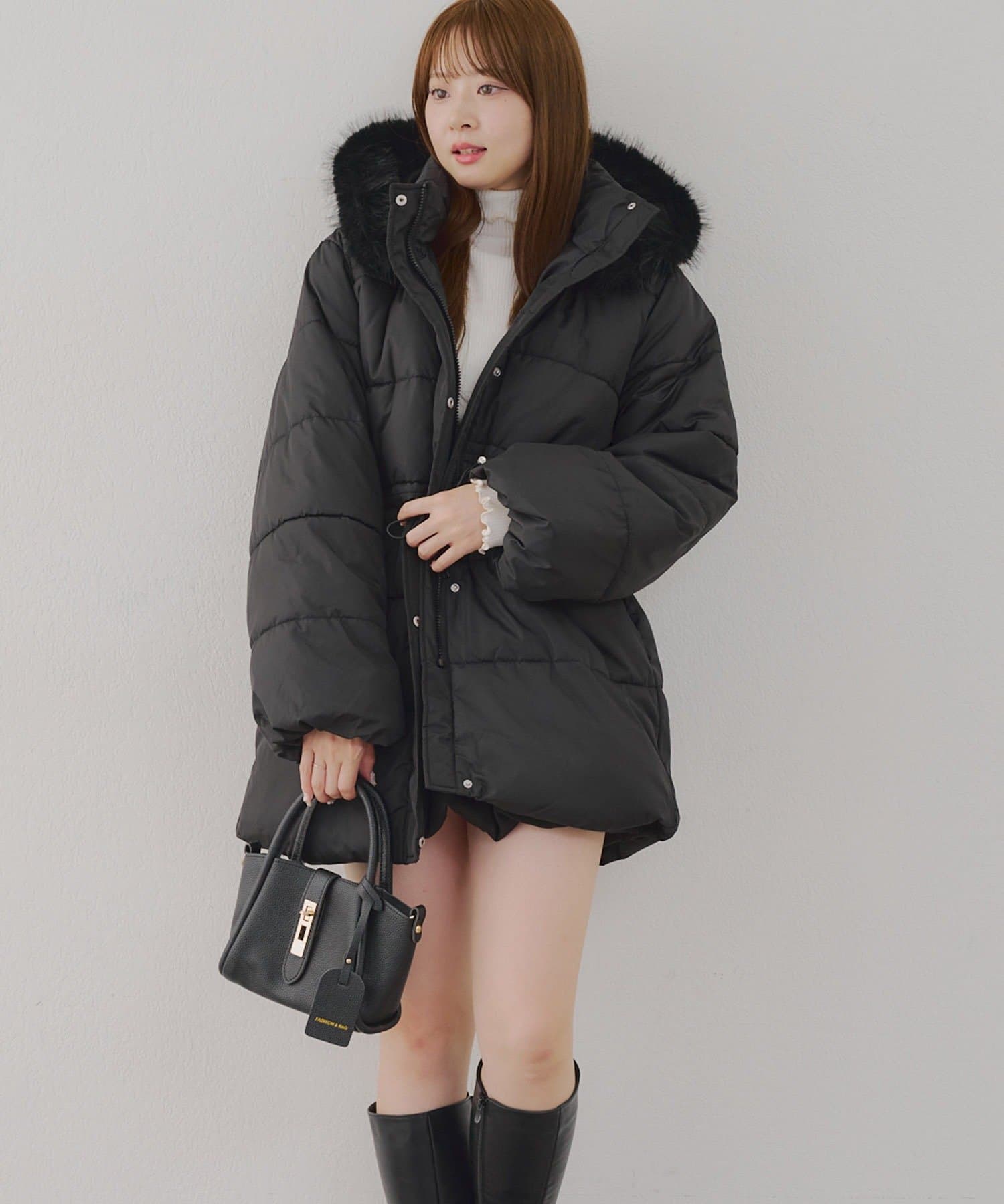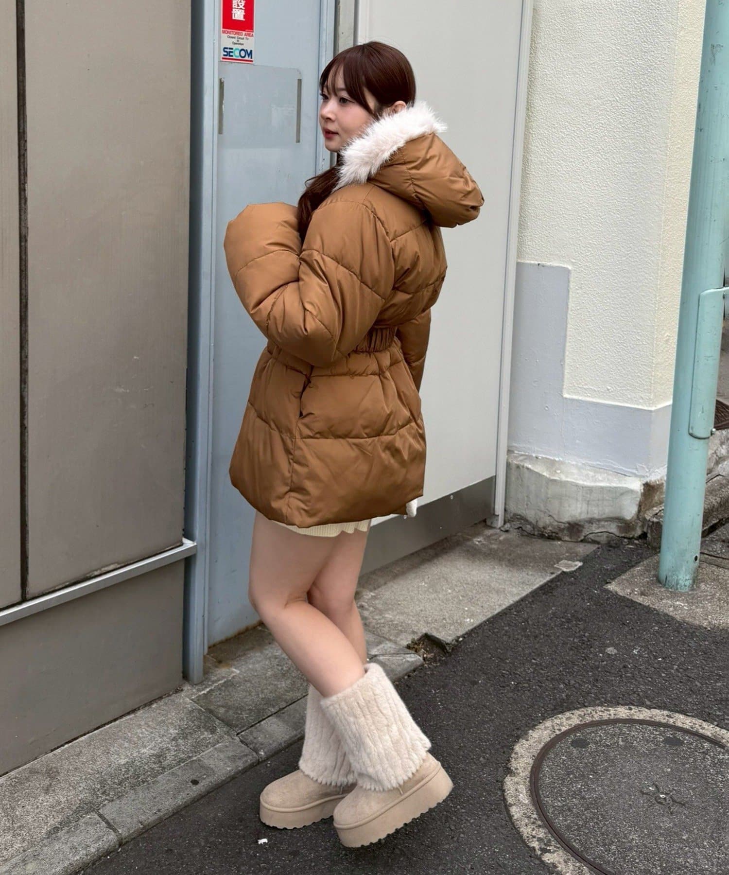 ・暖かさと可愛さを両立する、ベルト付き中綿コート。
