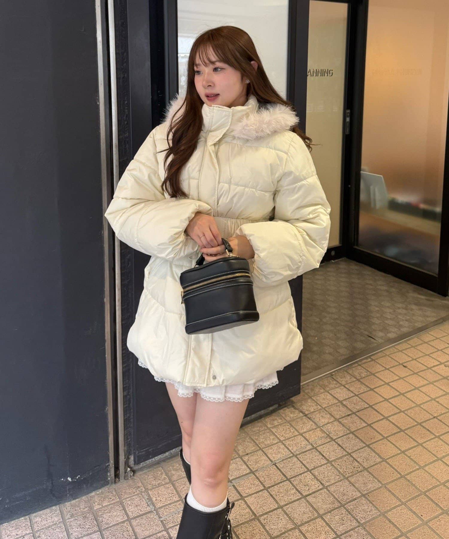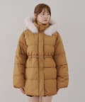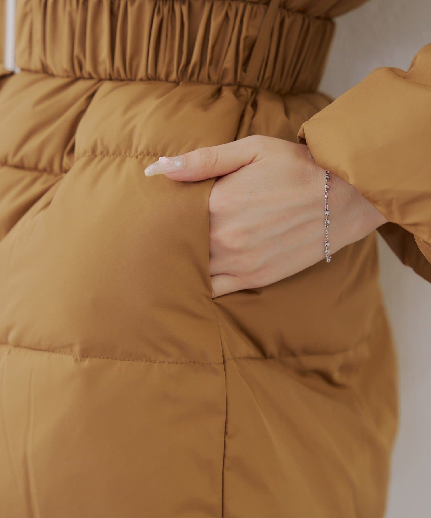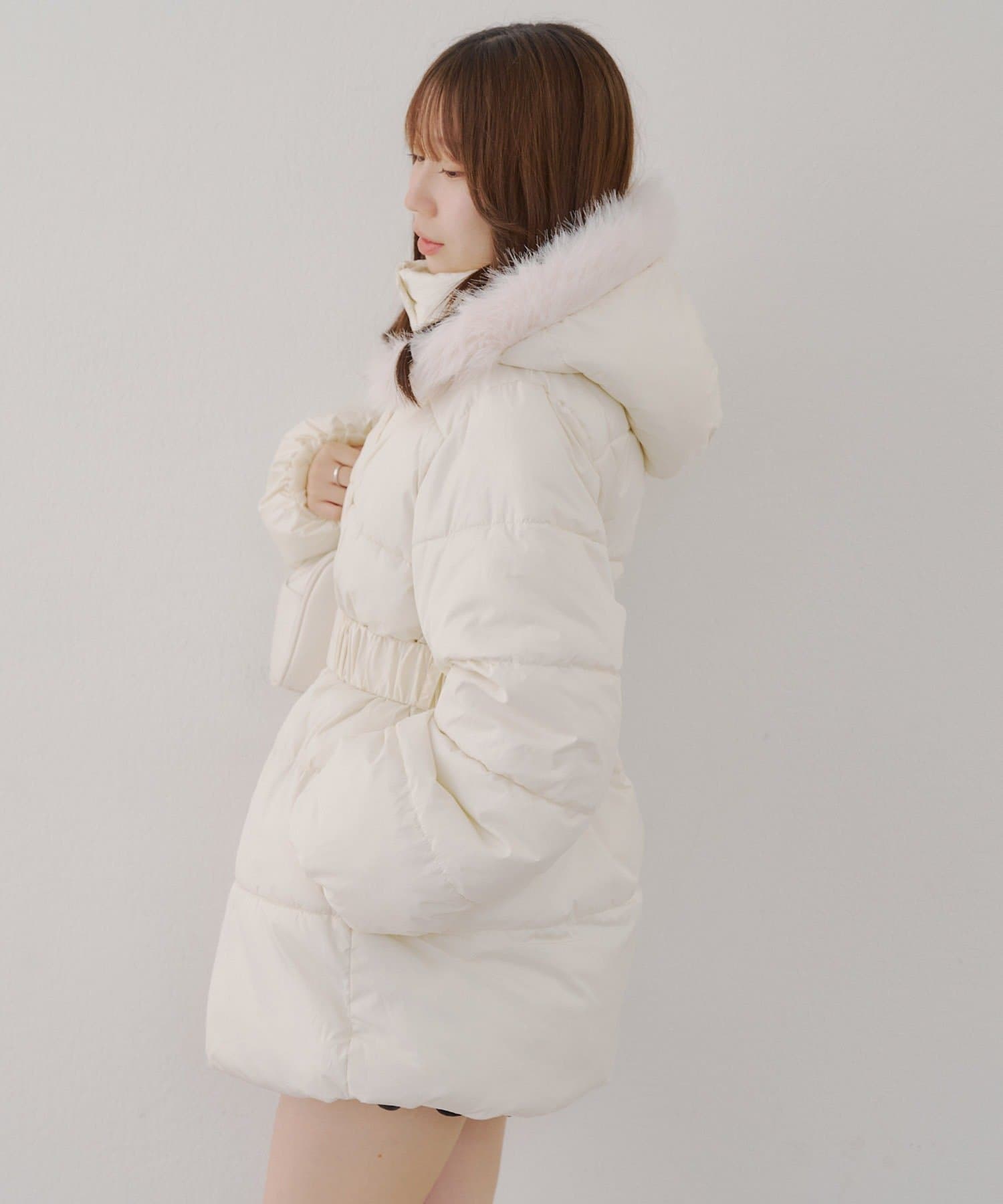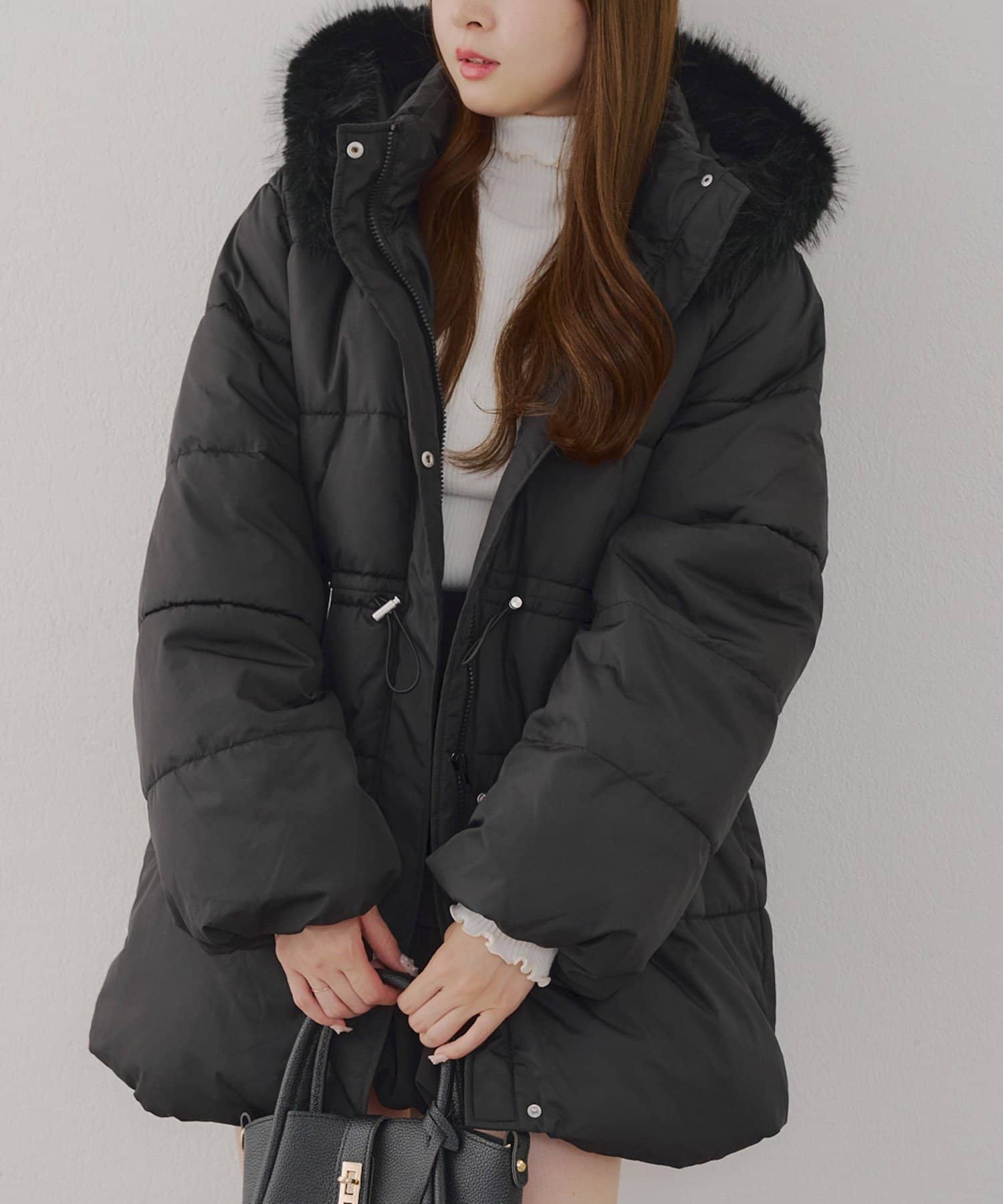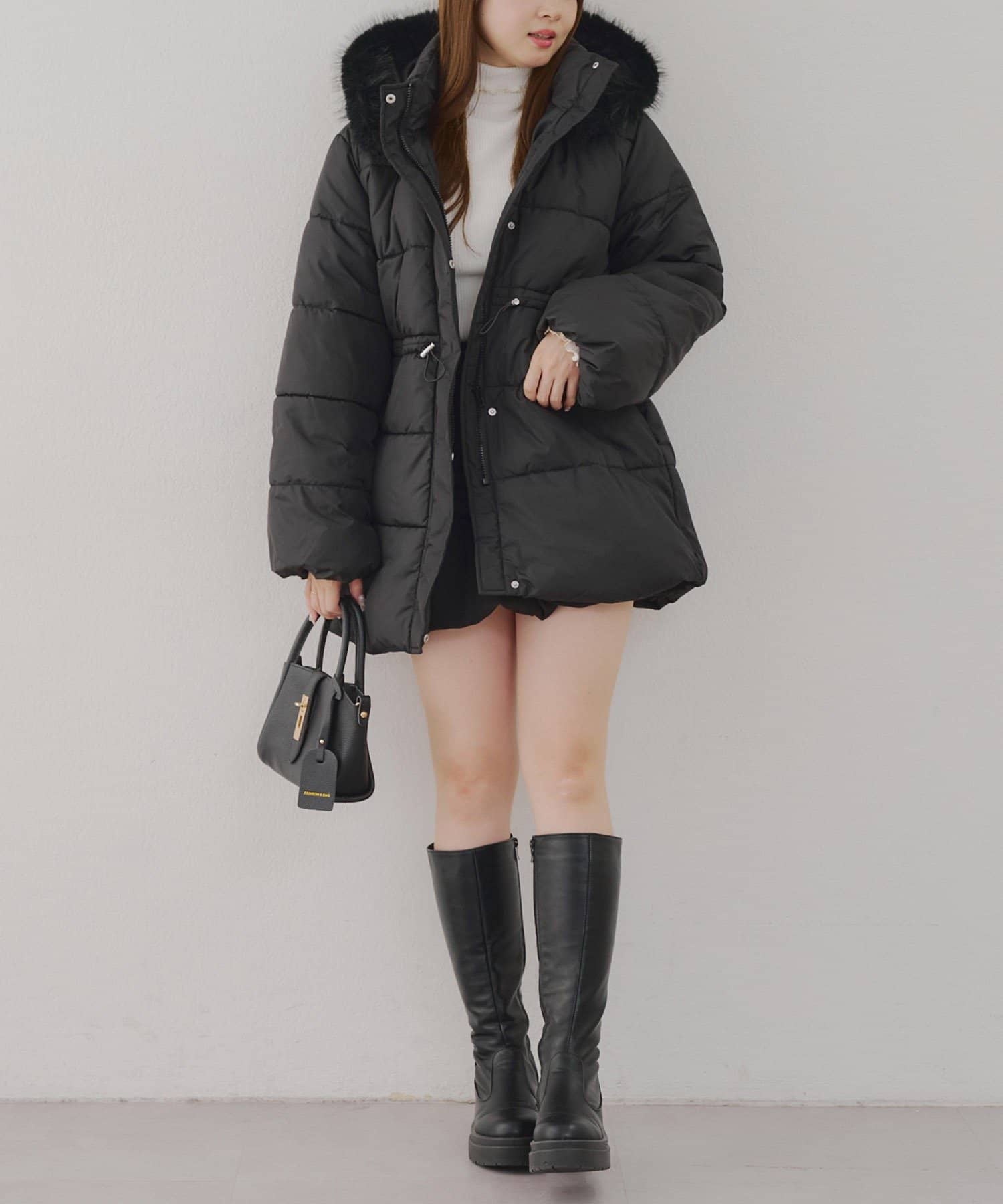・暖かさと可愛さを両立する、ベルト付き中綿コート。